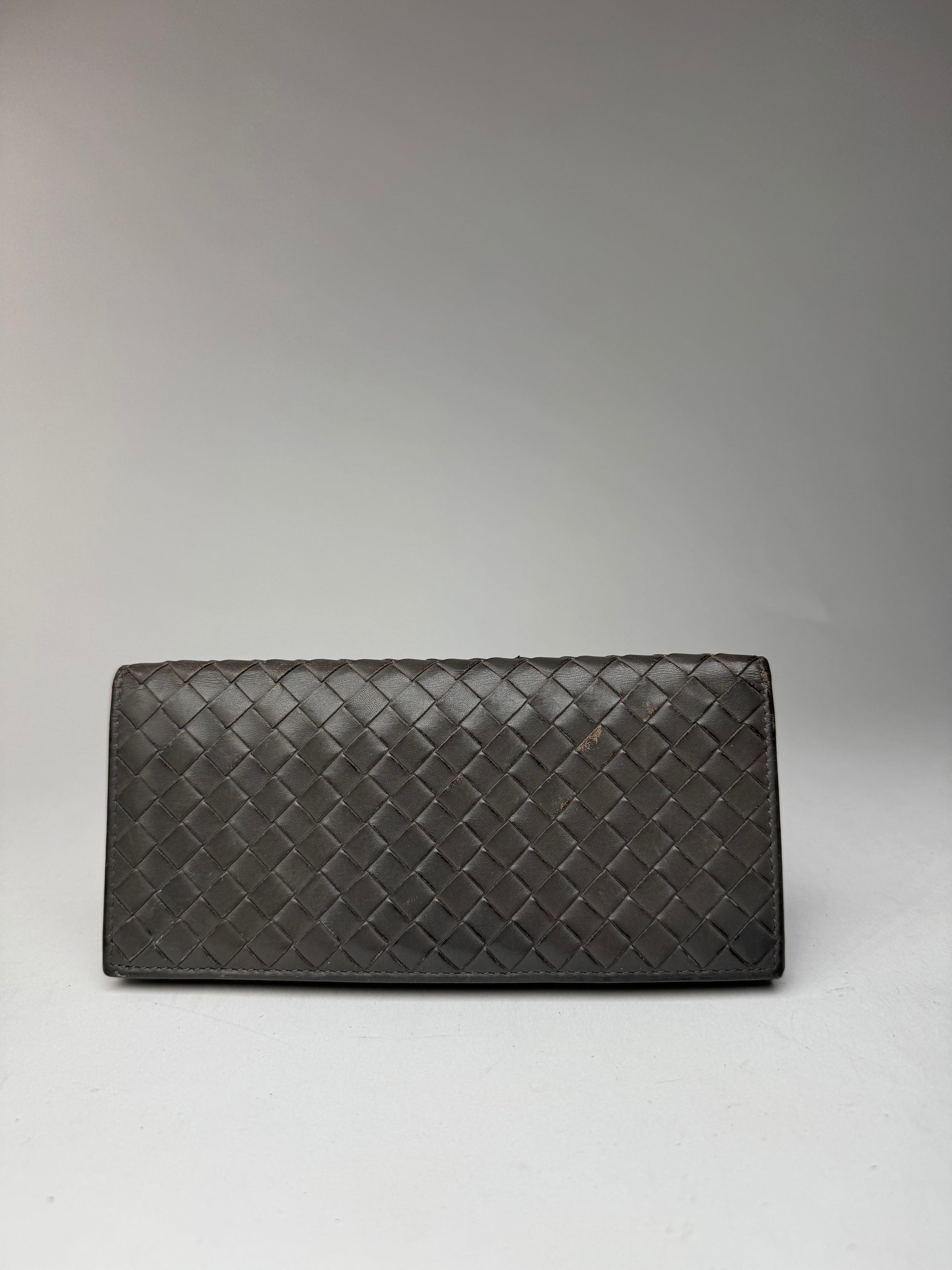 This vintage cardholder by Bottega Veneta is crafted in taupe-grey leather featuring the iconic Intrecciato weave. Introduced in the 1970s, the Intrecciato technique was developed as a solution to reinforce thin leather through hand-weaving—quickly becoming a hallmark of the brand's understated elegance. The interior is lined in smooth gray leather and includes the authenticity number B01466140E. Made in Italy, this piece is unisex and ideal for passports, cards, or travel documents.