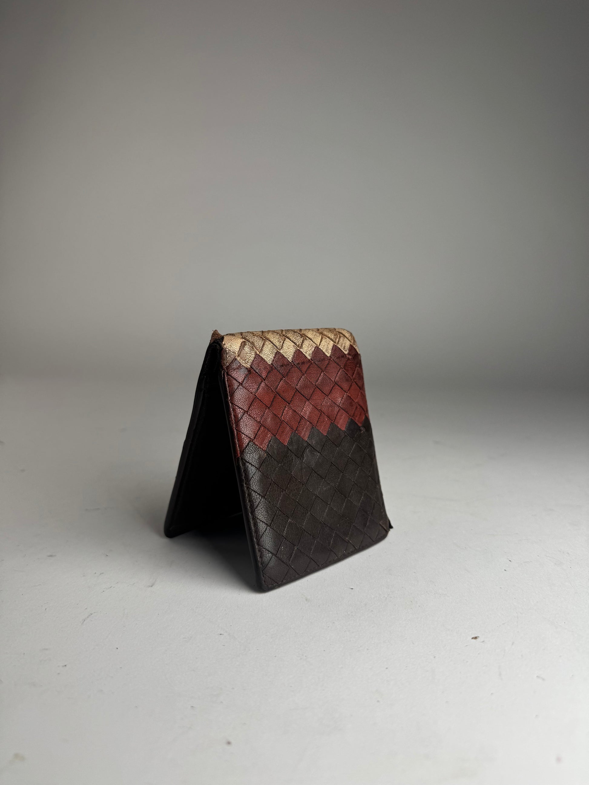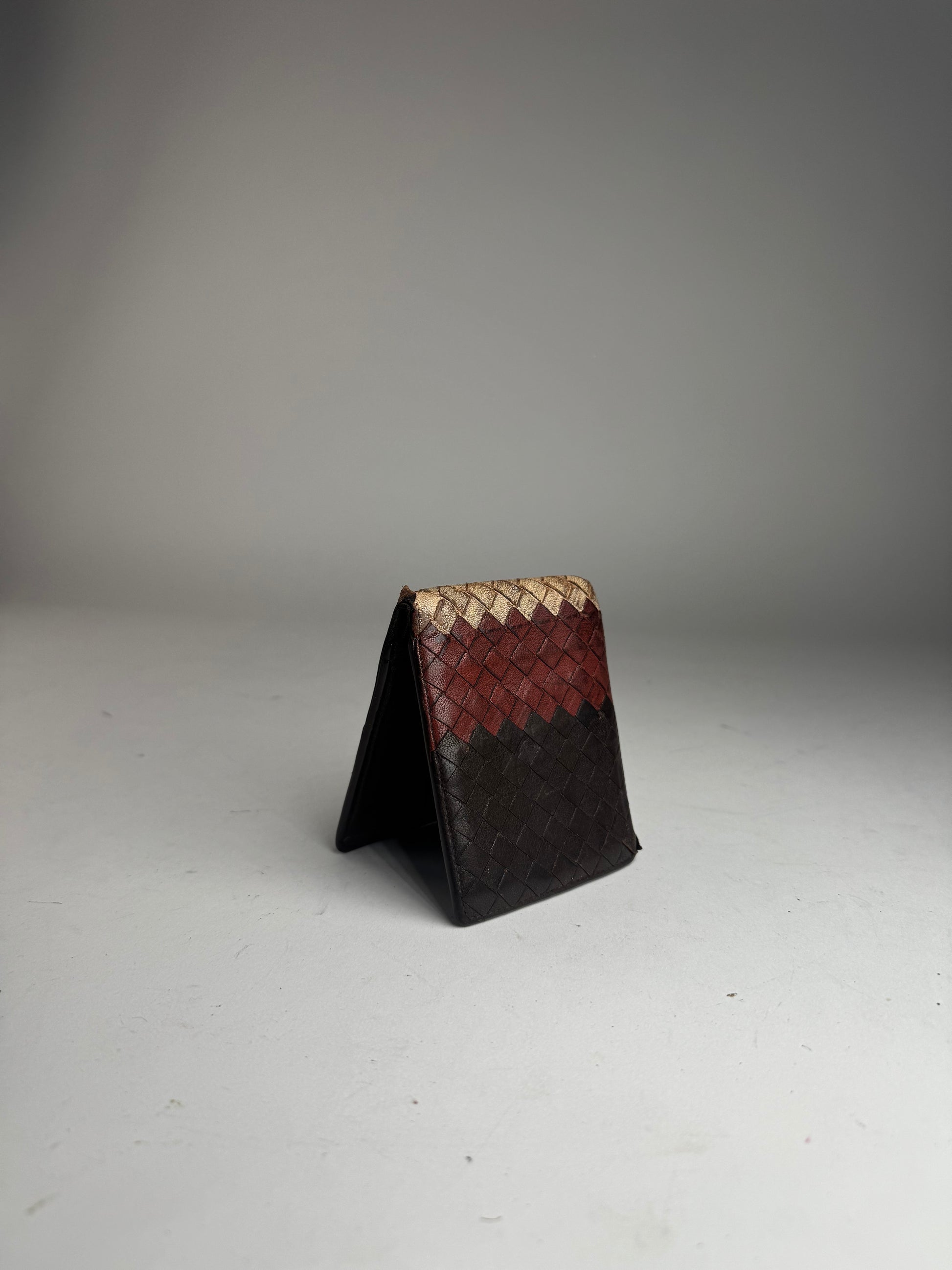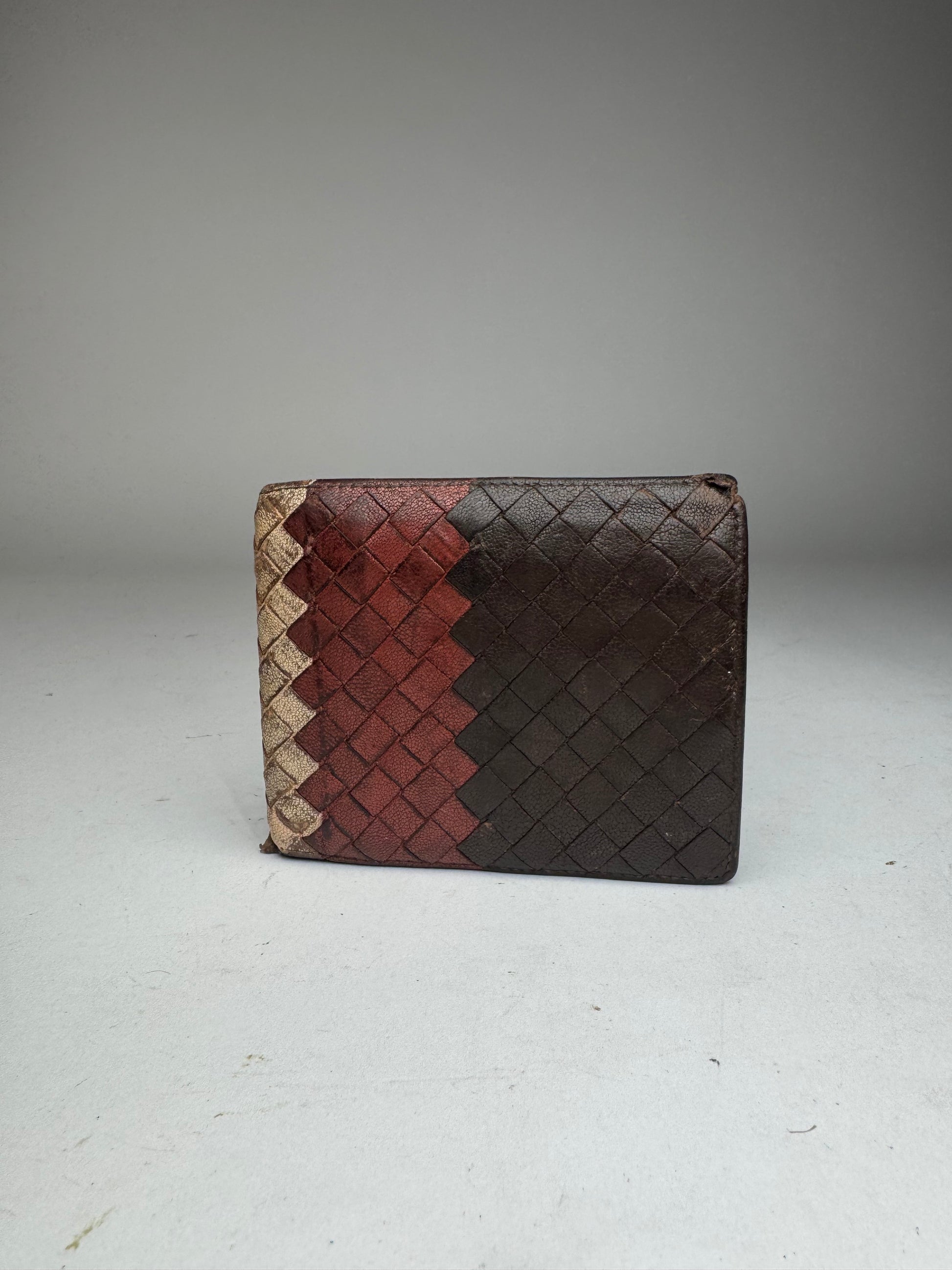 Vintage Bottega Veneta Intrecciato Leather Wallet Beige Red Brown Flapable