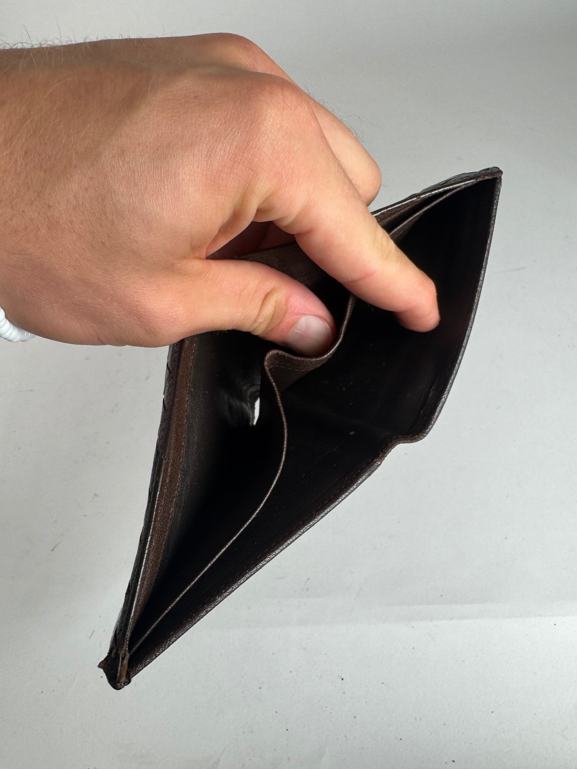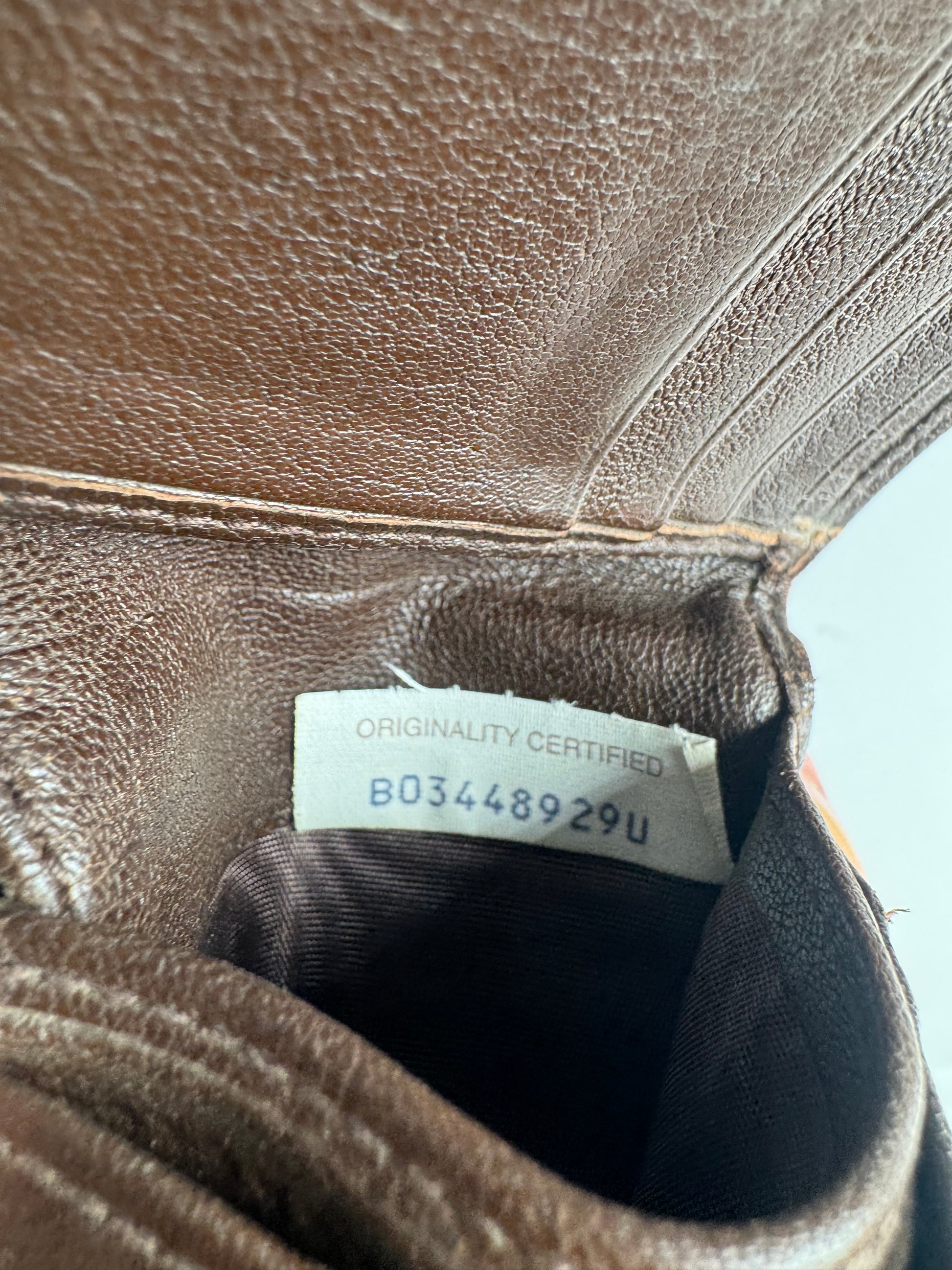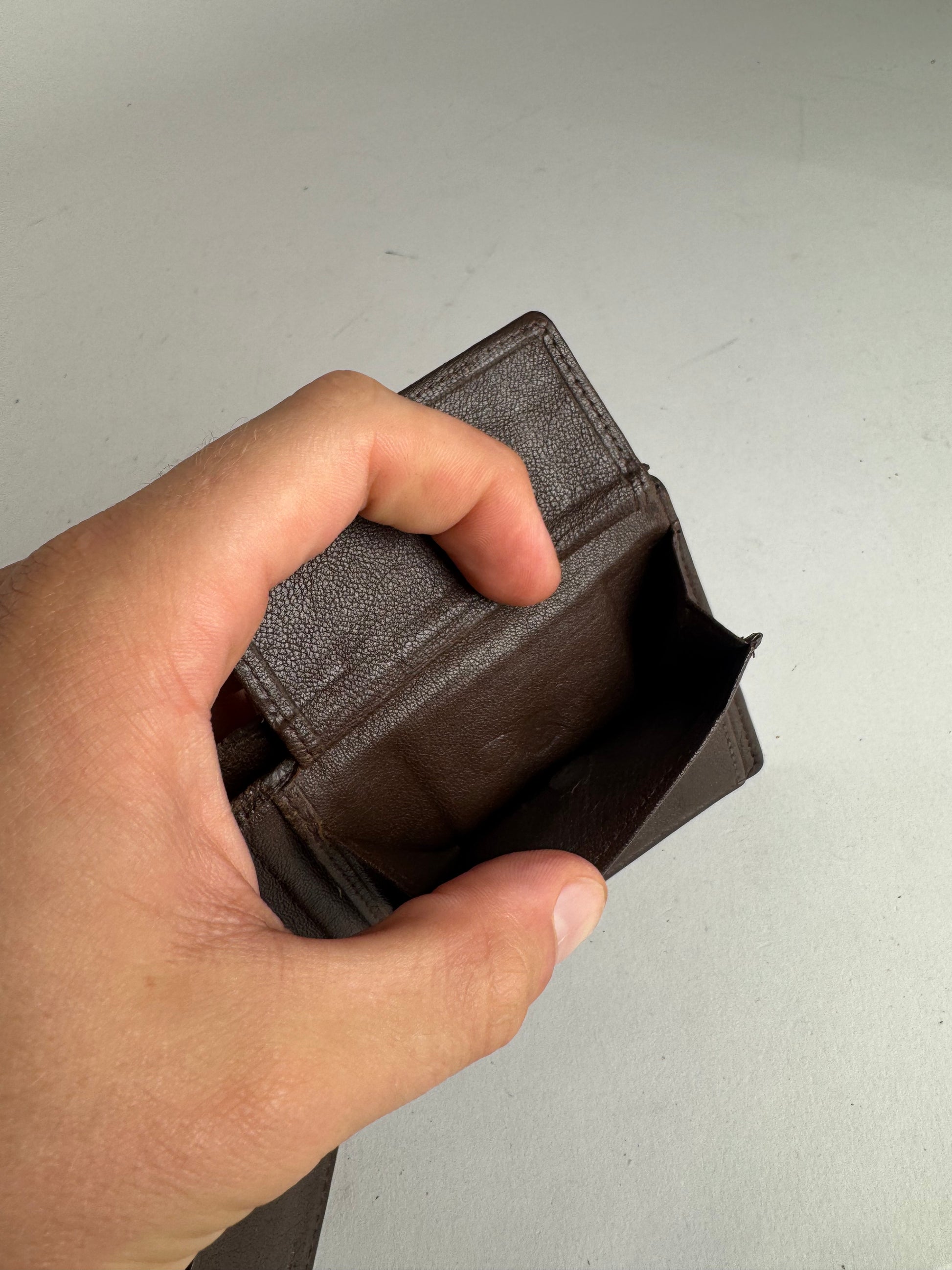 Condition Details: The exterior canvas shows some discoloration, and the interior leather has scratches, but overall the wallet remains in very good condition for its age.