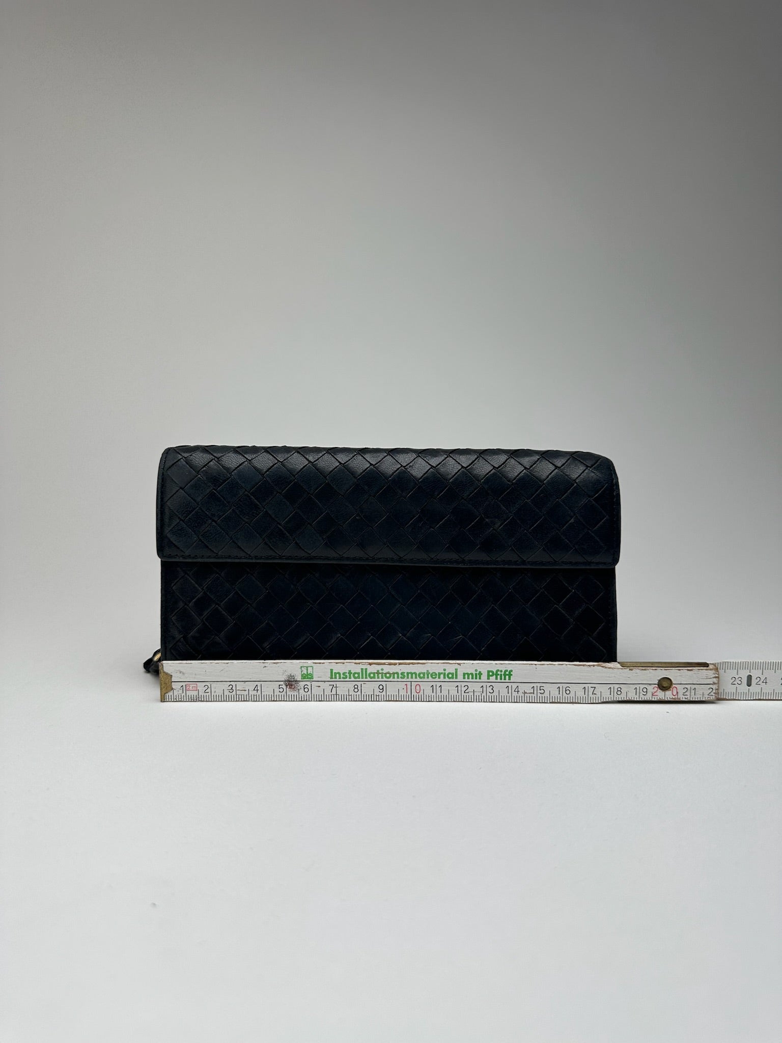 Vintage Bottega Veneta Intrecciato Leather Wallet Black