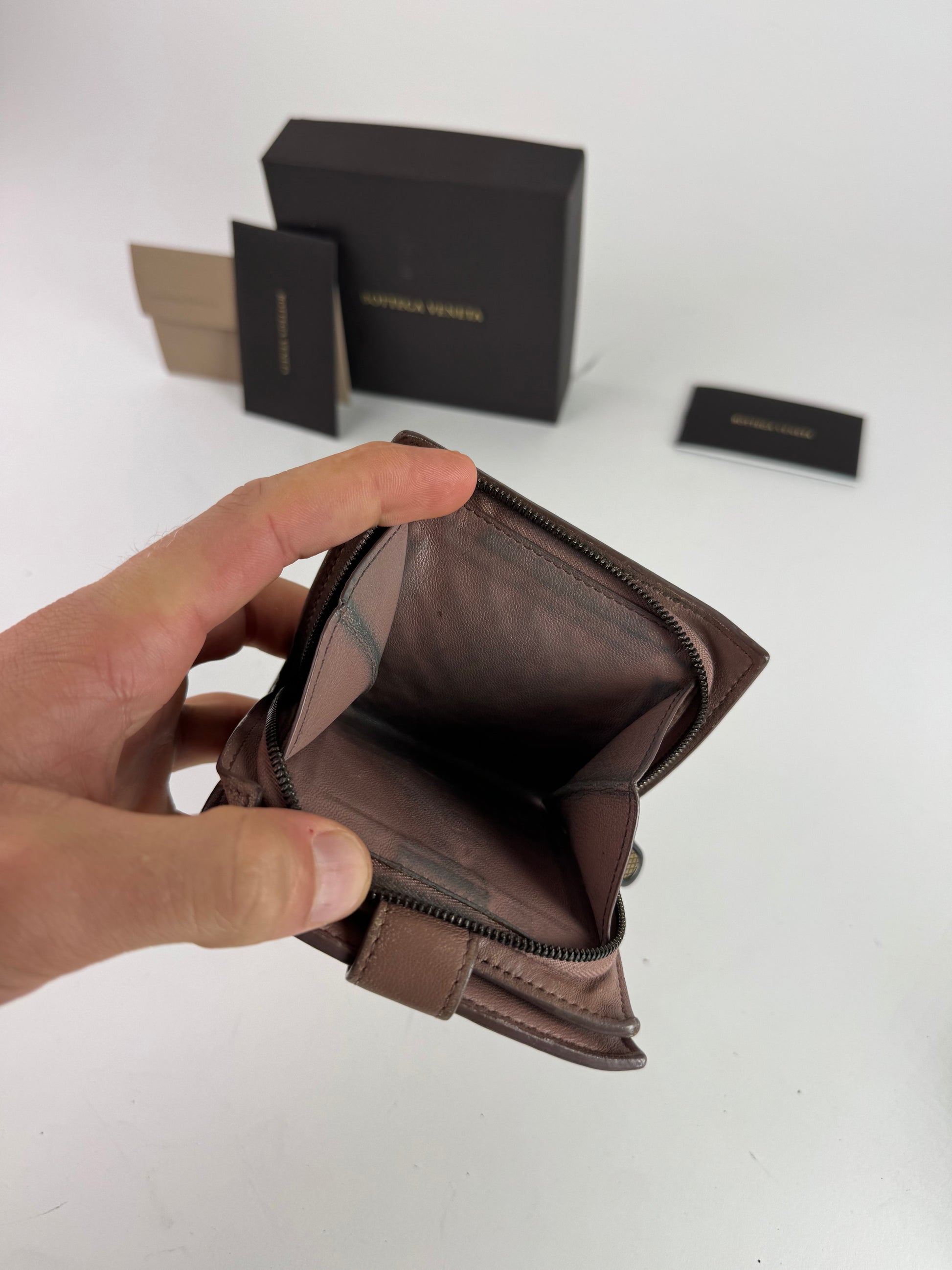 Condition Details: The wallet shows light discolorations and scratches but remains in very good overall condition.
