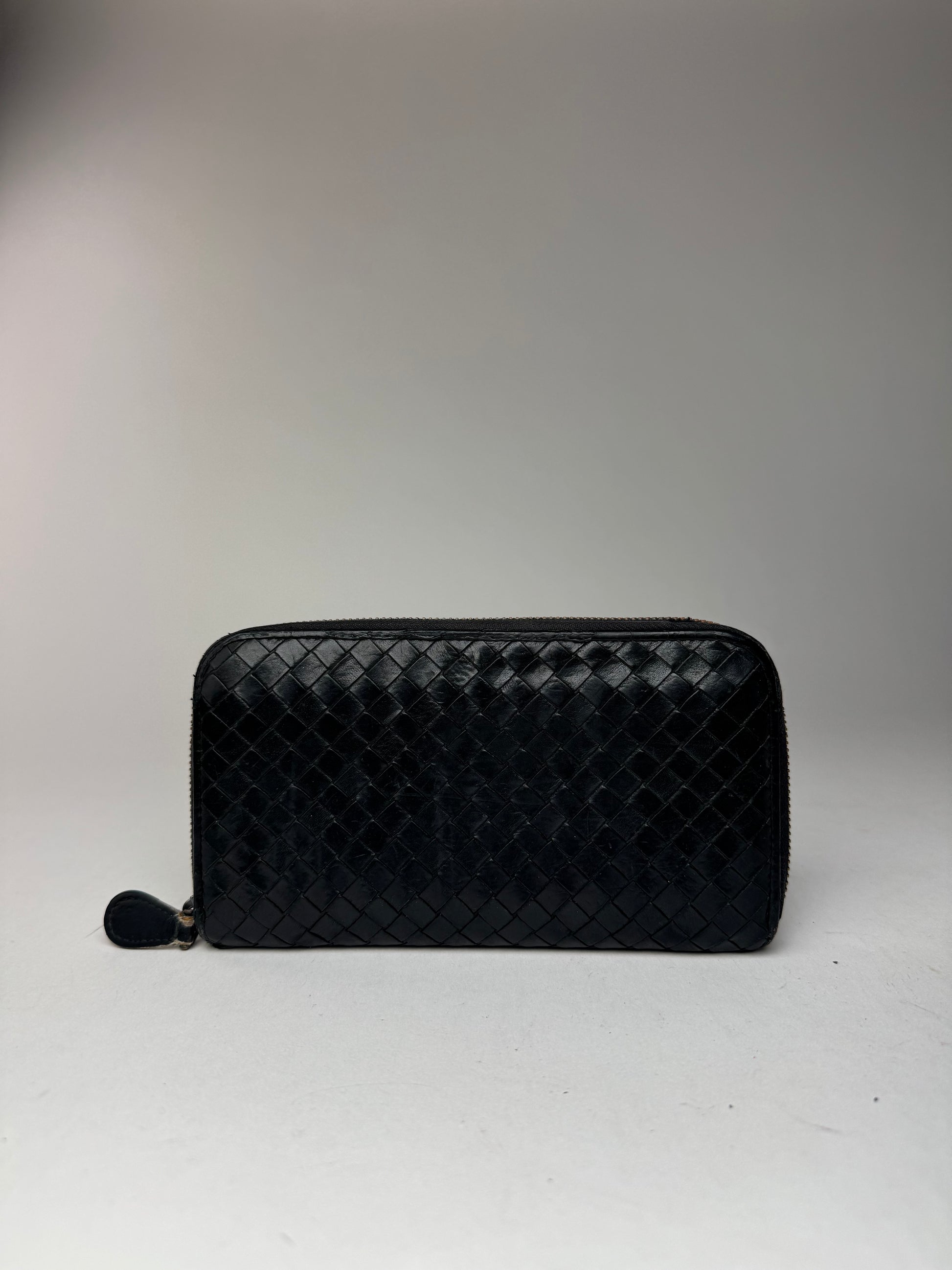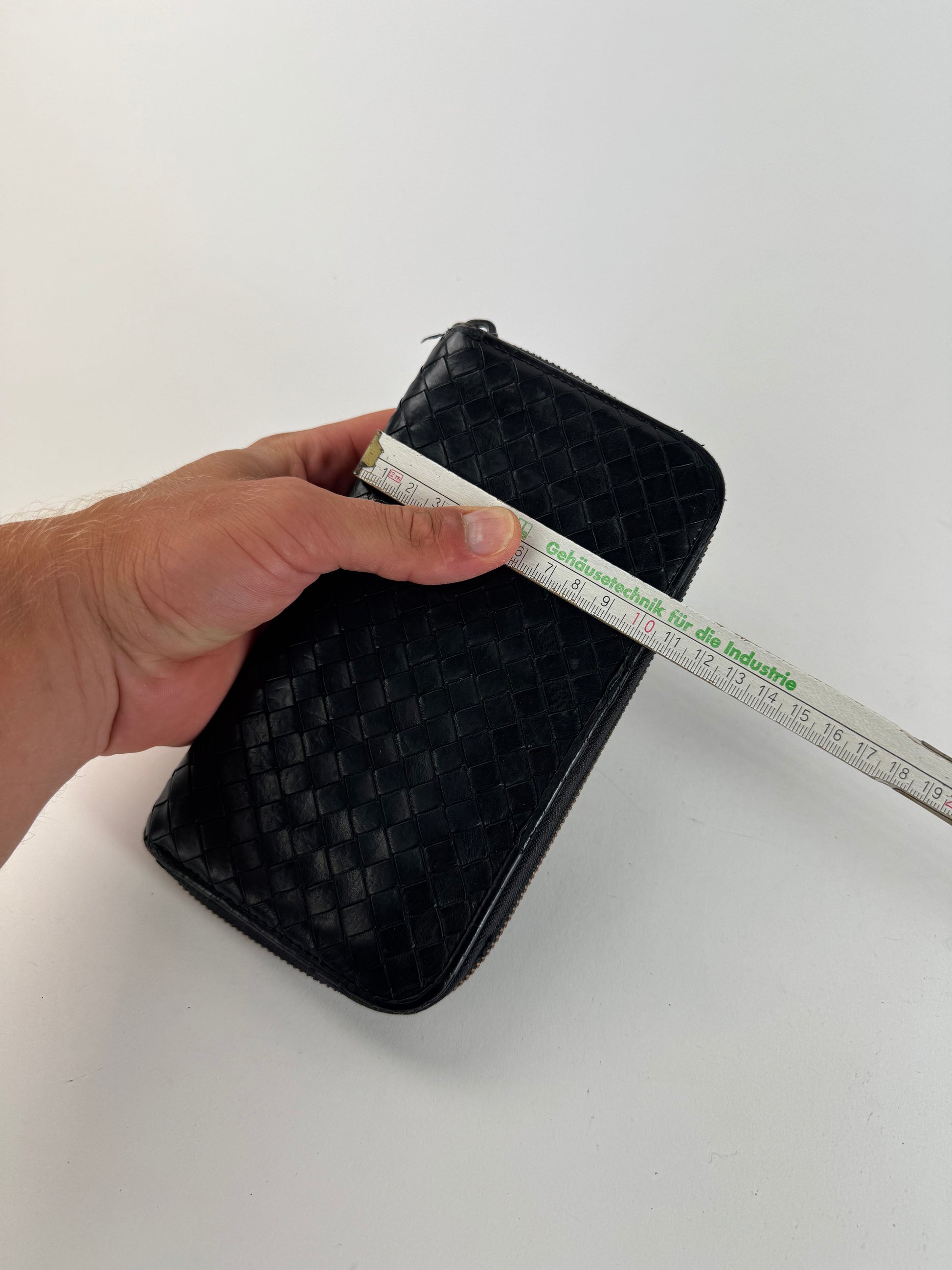 Vintage Bottega Veneta Intrecciato Leather zippy wallet black