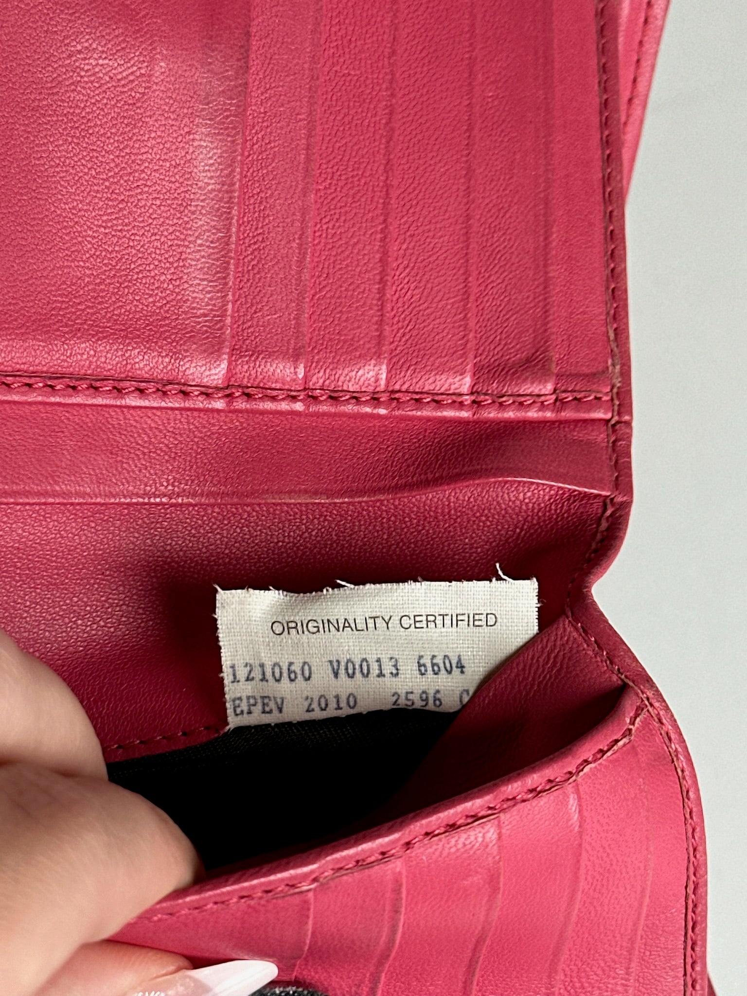 Condition Details: Minor stains are present, but the wallet remains in very good overall condition. The leather, weave, and interior are well maintained.