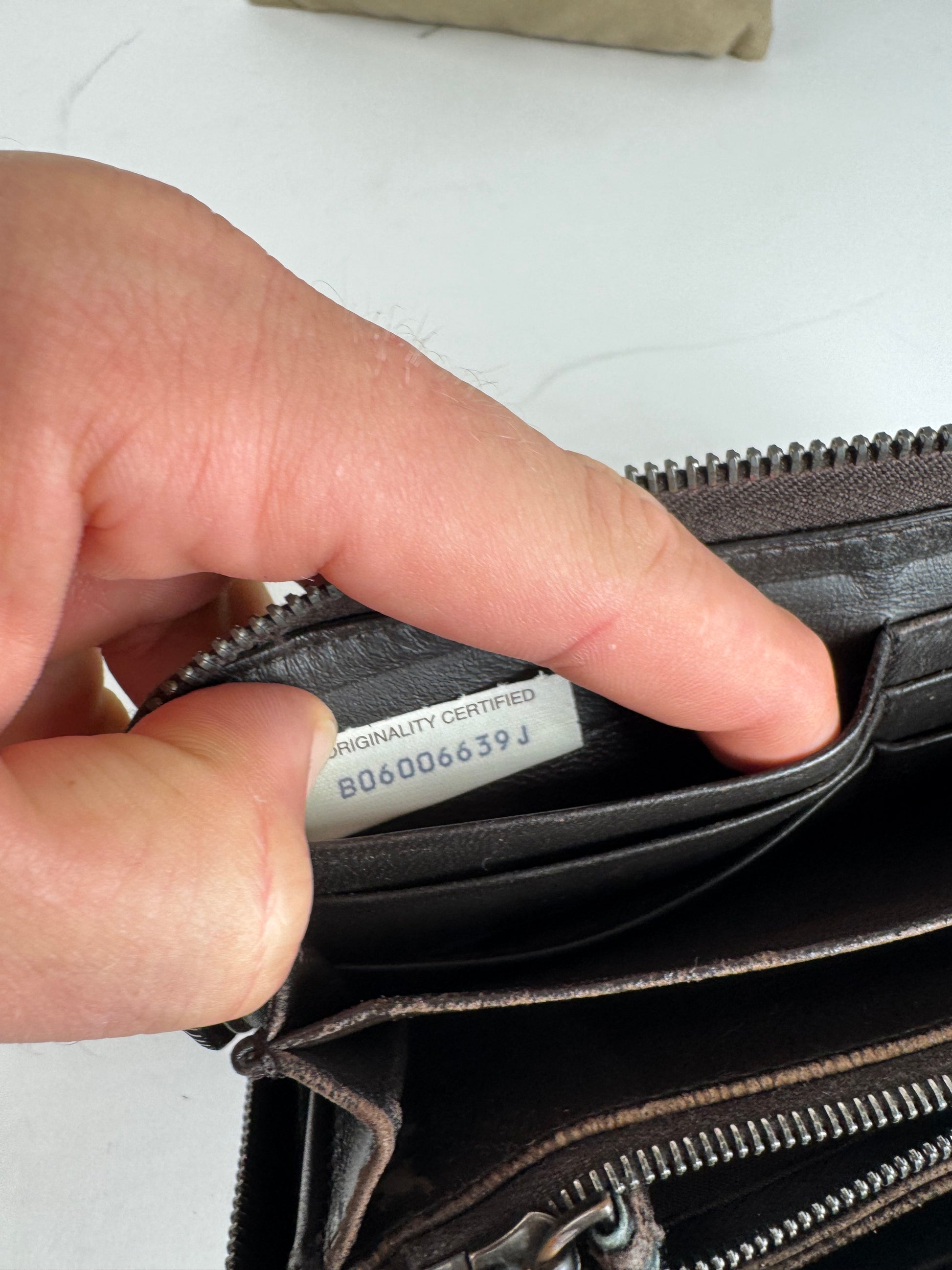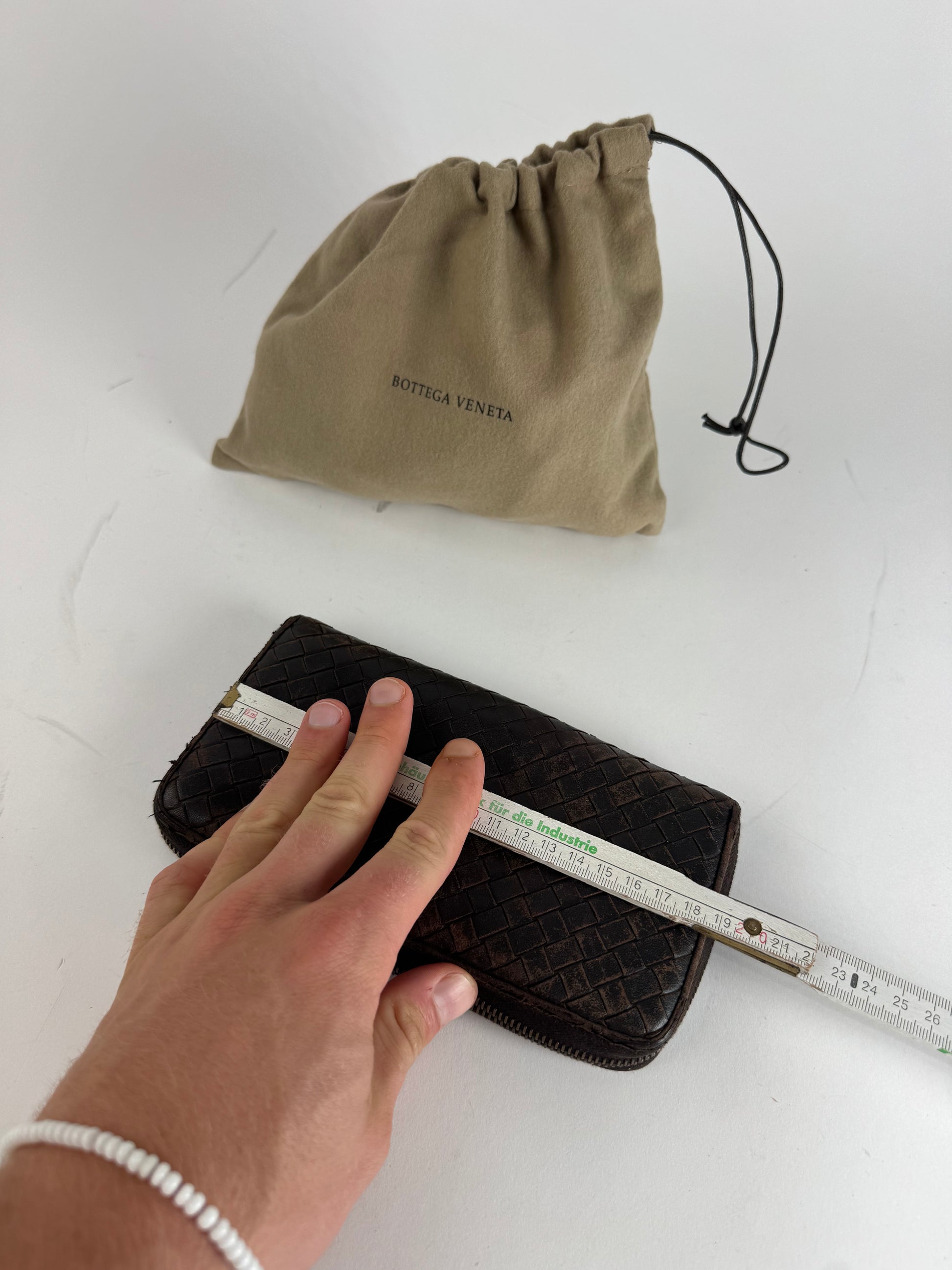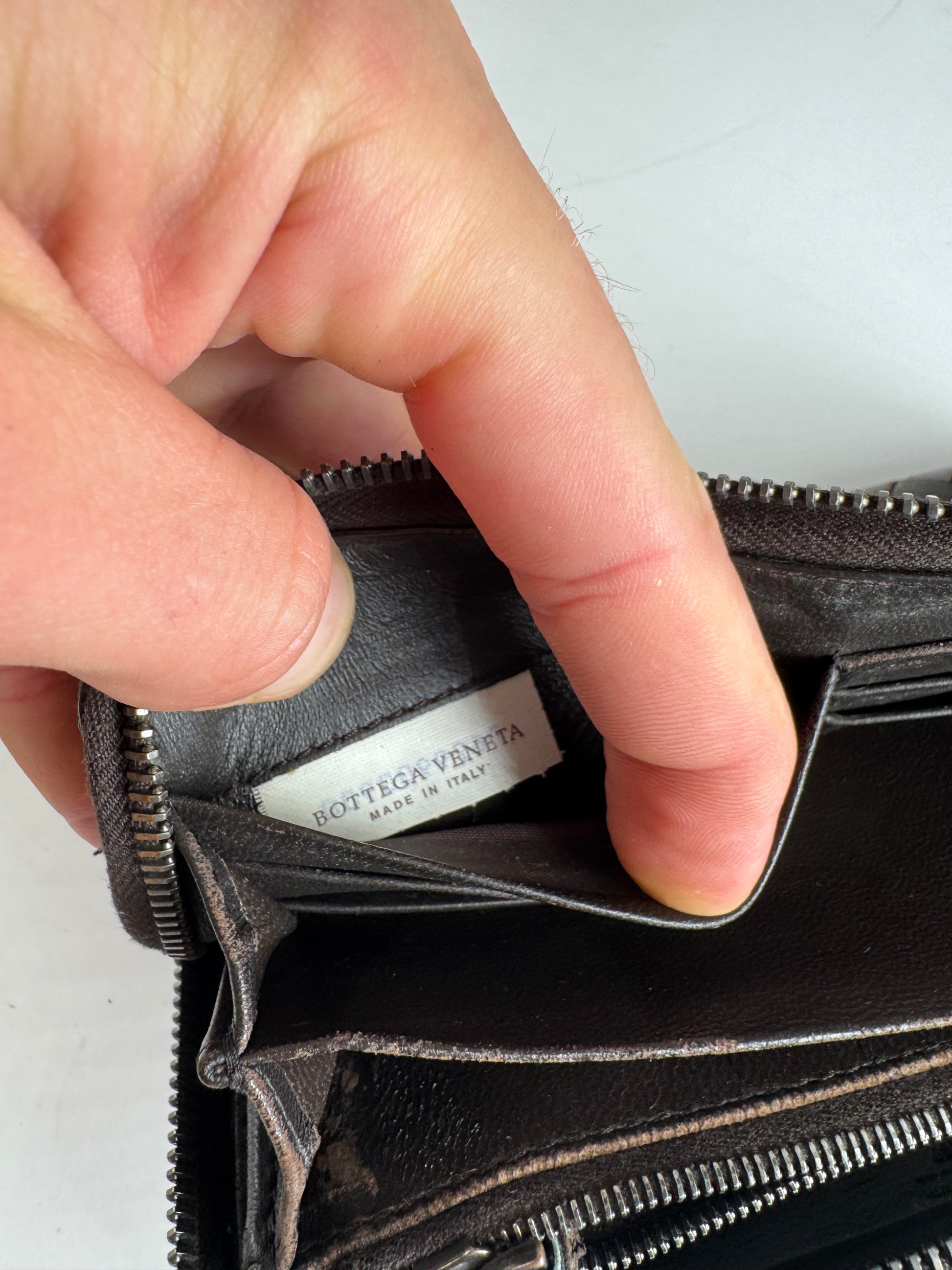 Vintage Bottega Veneta Zippy Intrecciato Leather Wallet Brown