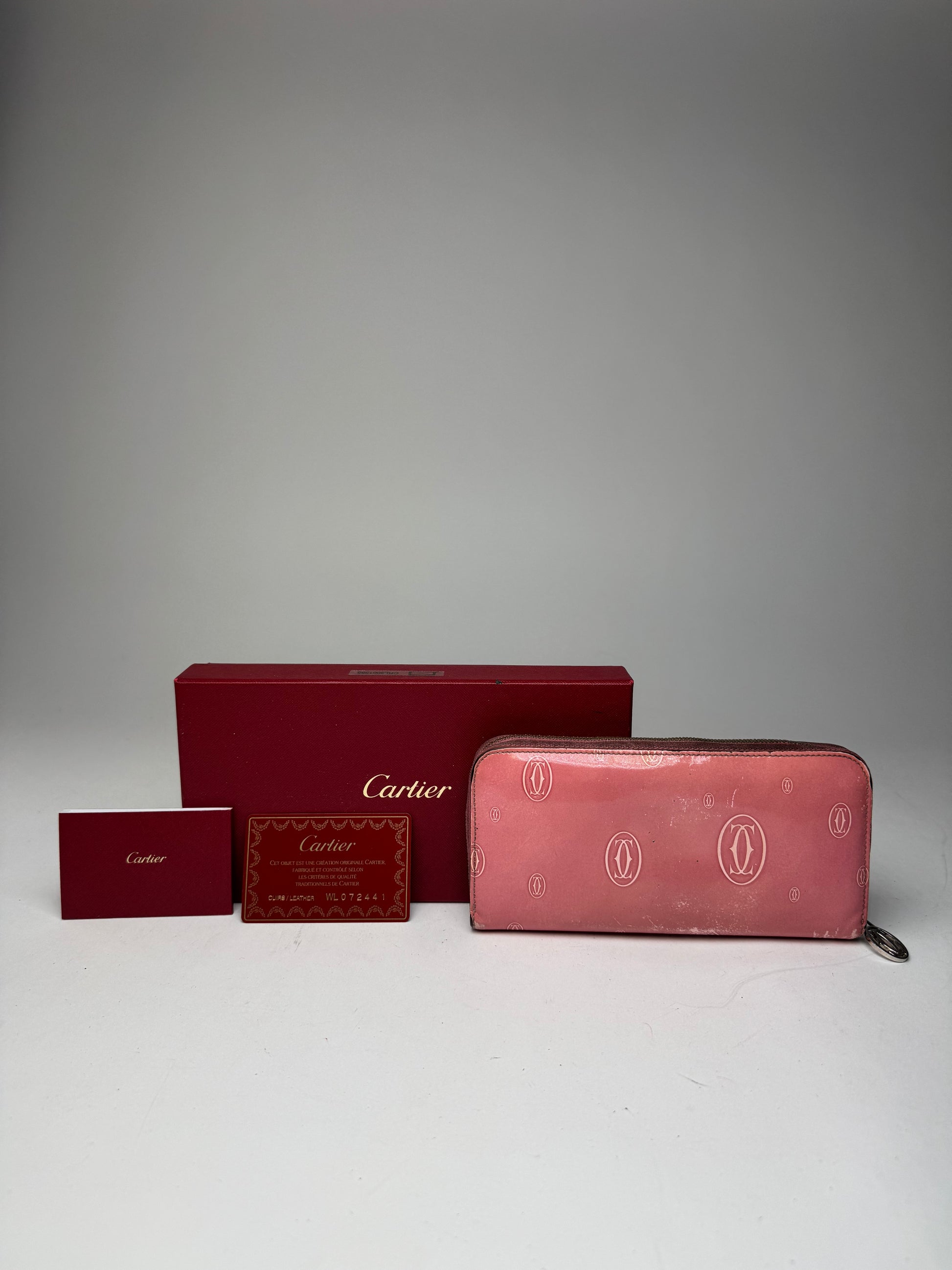 Vintage Cartier Patent Leather Monogram Wallet Pink