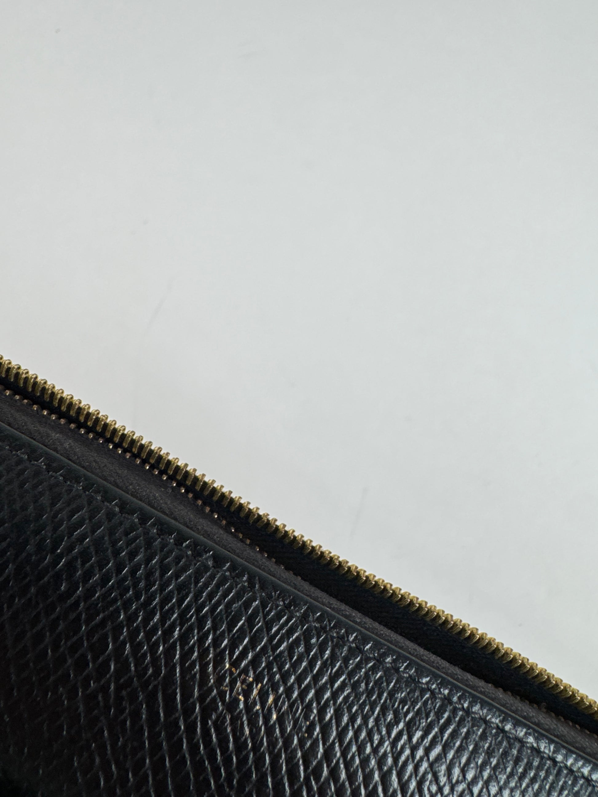 Condition Details: The exterior and interior leather are in good condition with normal signs of wear. Please note: the zipper is broken and requires replacement.