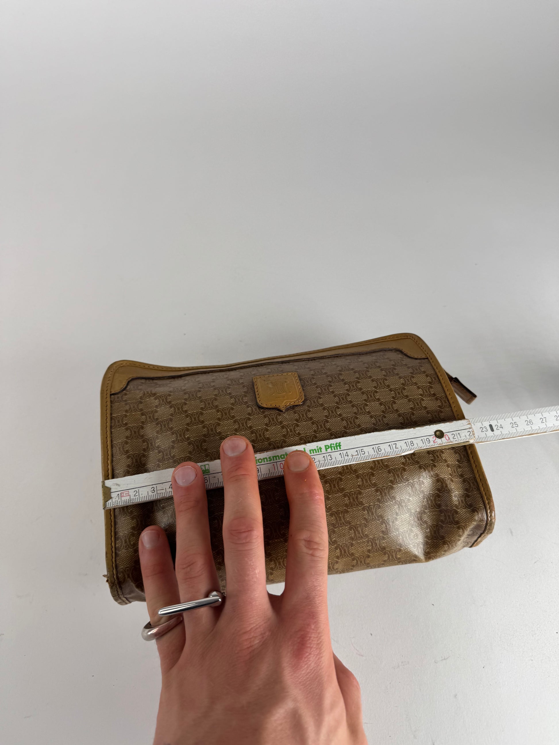 Vintage Celine Paris Leather Monogram Clutch Beige Brown