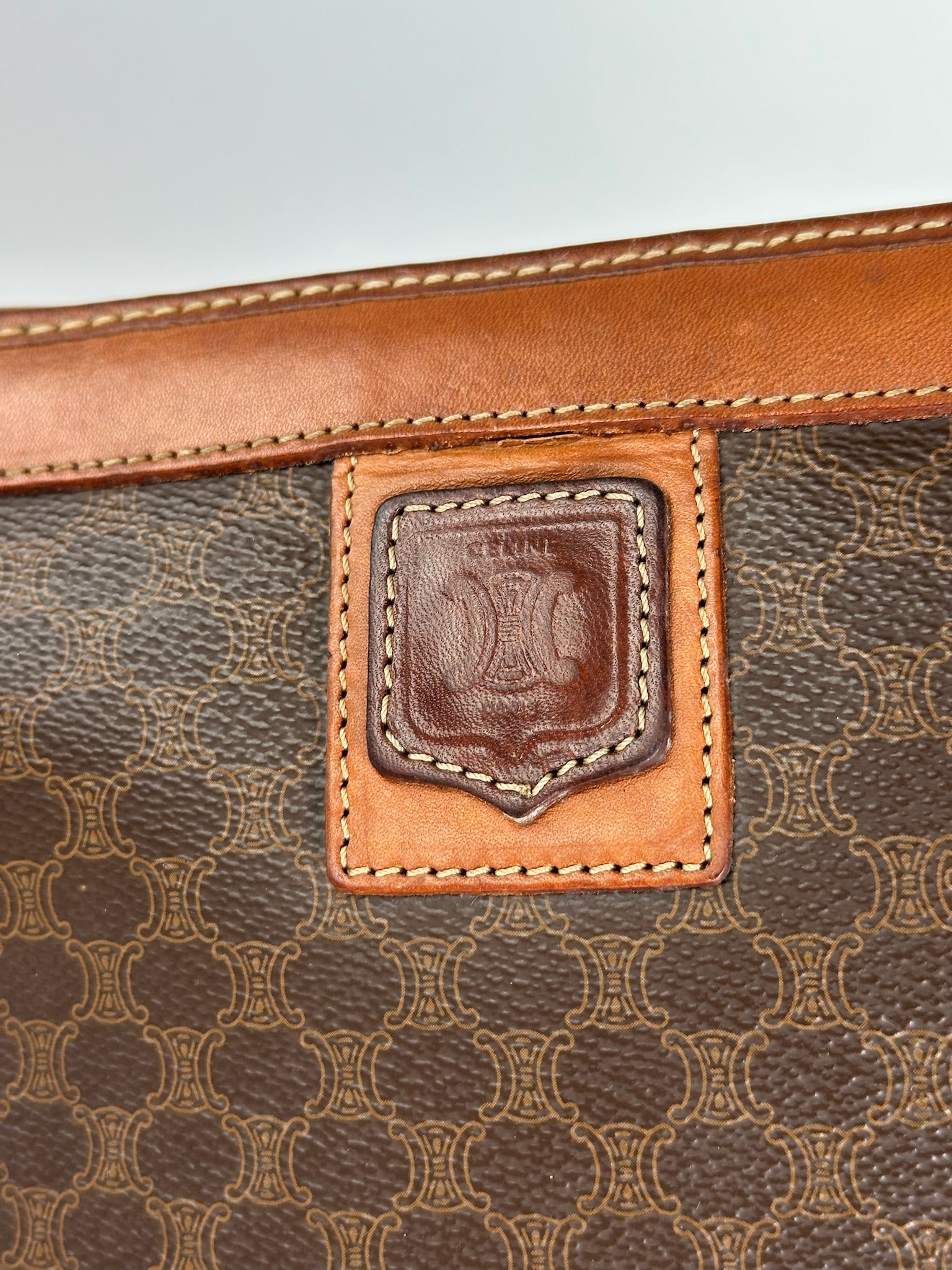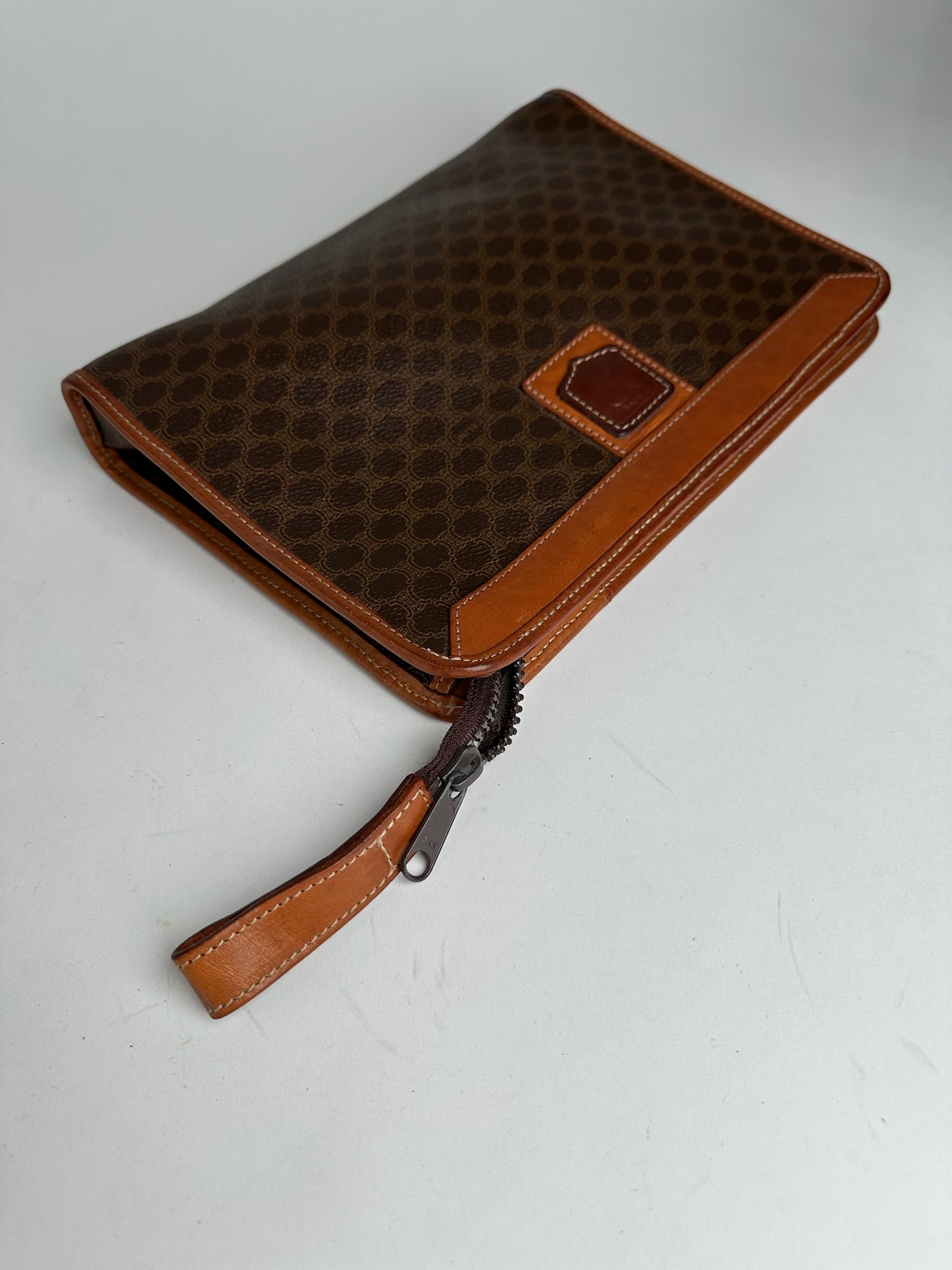 Vintage Celine Paris Leather monogram clutch Triomphe brown
