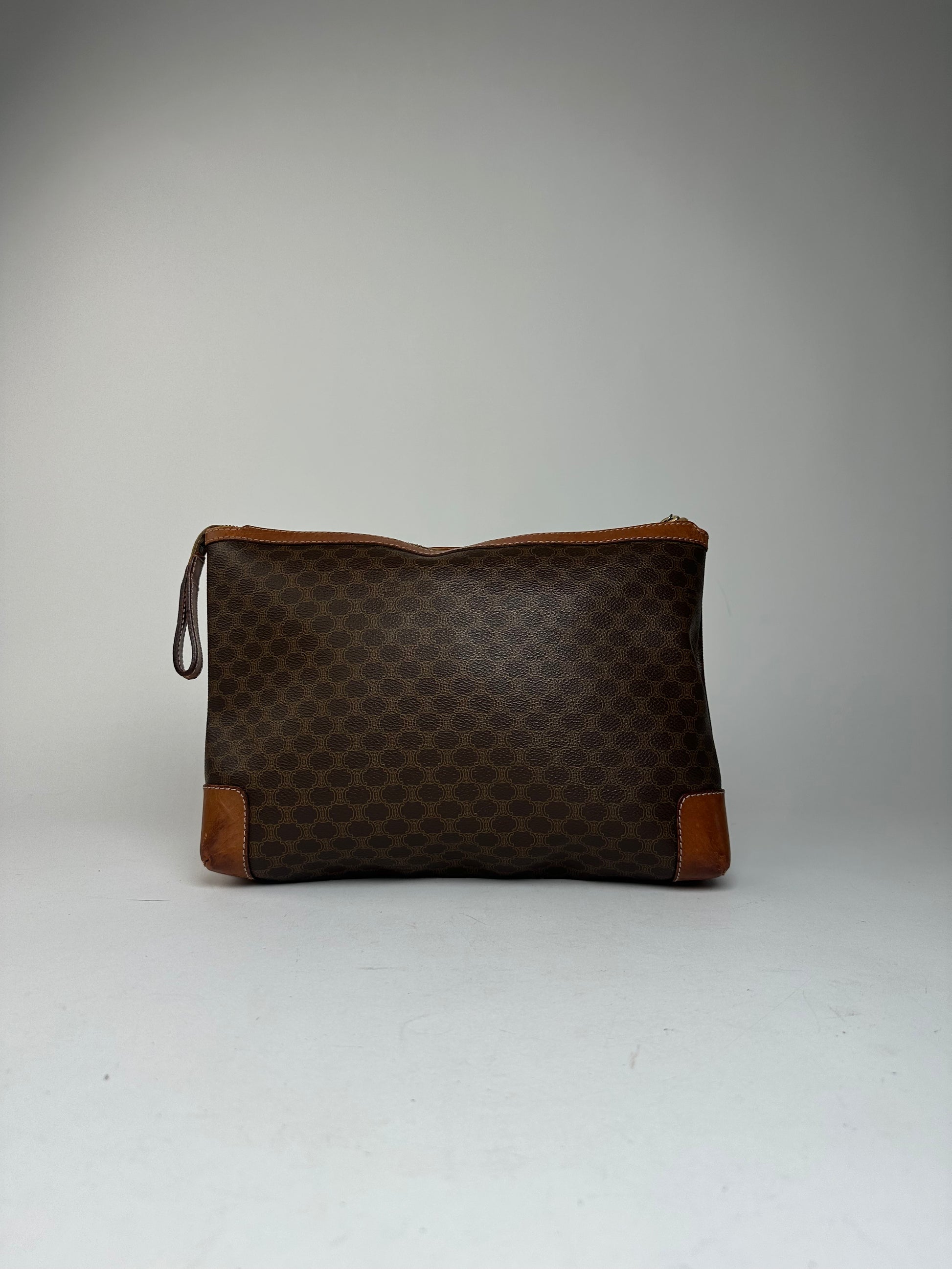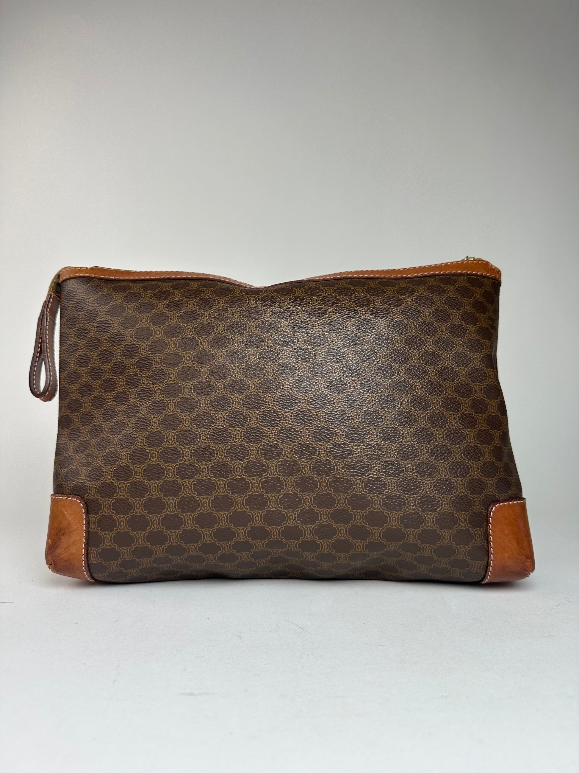 Vintage Celine Paris Monogram Leather Clutch Brown