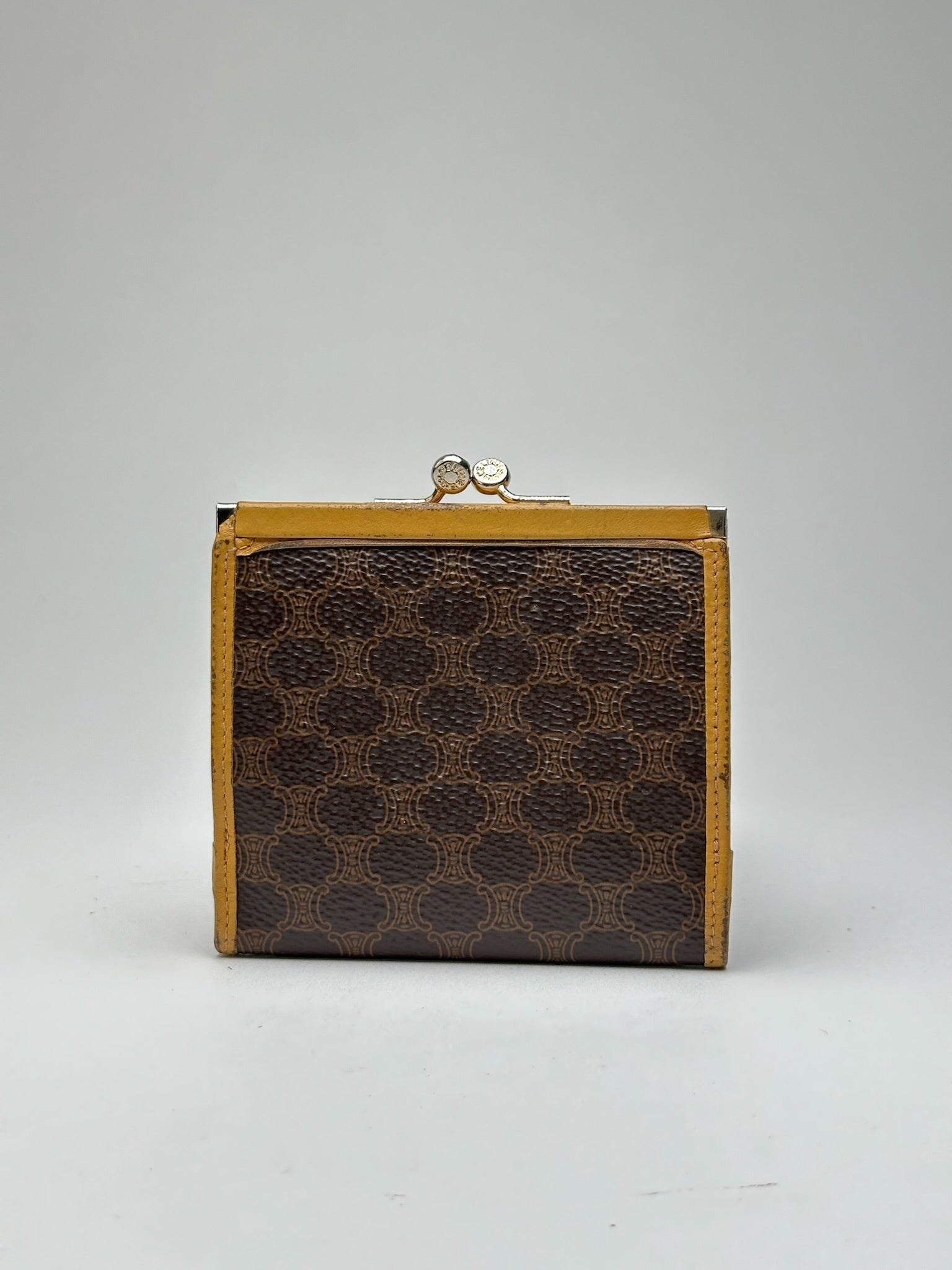 Vintage Celine Paris Monogram Leather Wallet Brown