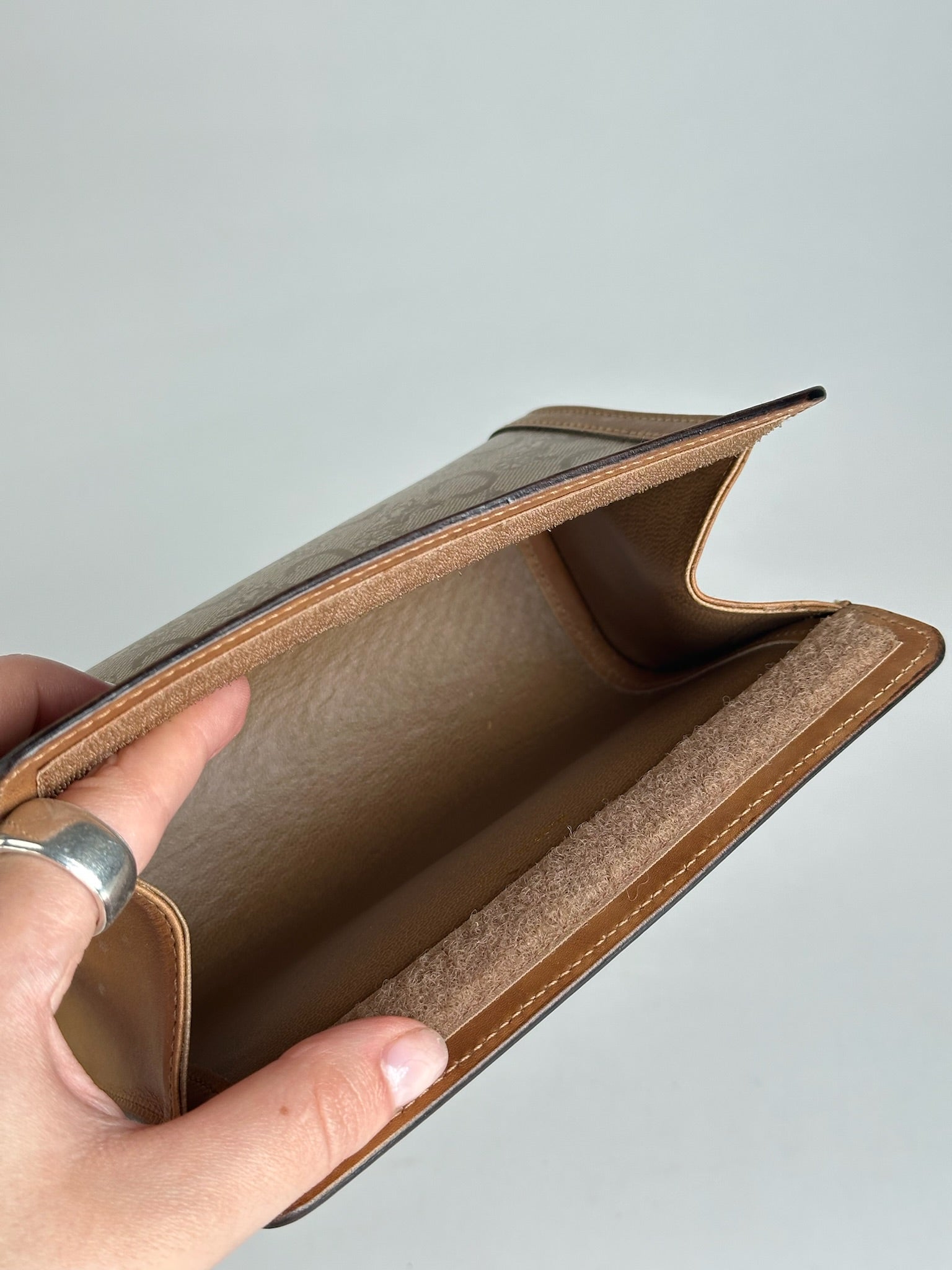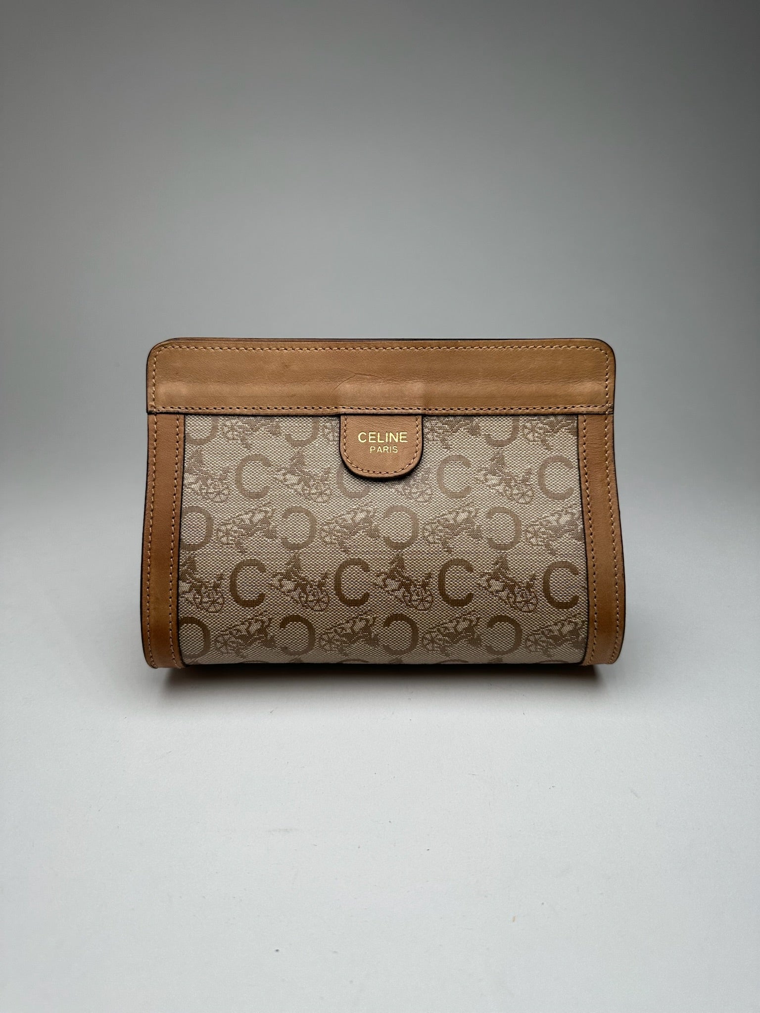Vintage Celine Paris Triomphe clutch beige brown