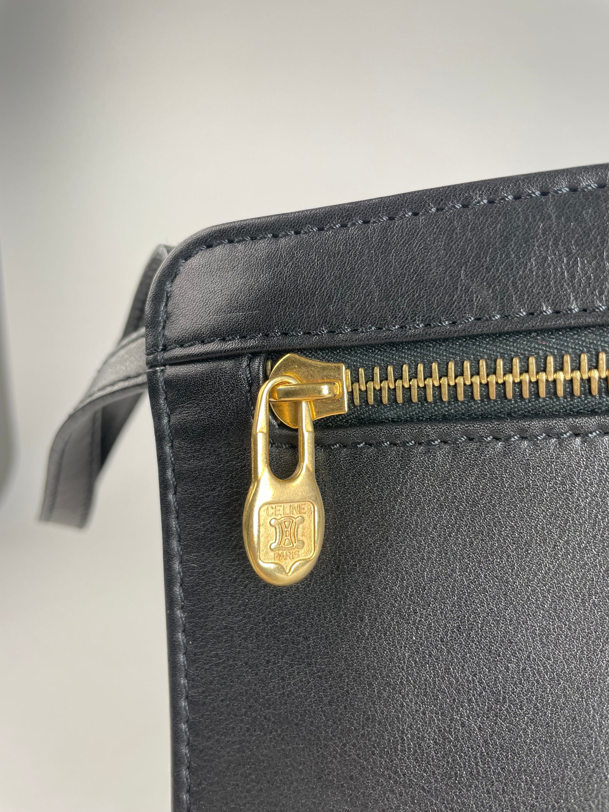 Vintage Celine Paris Triomphe Leather Clutch Black