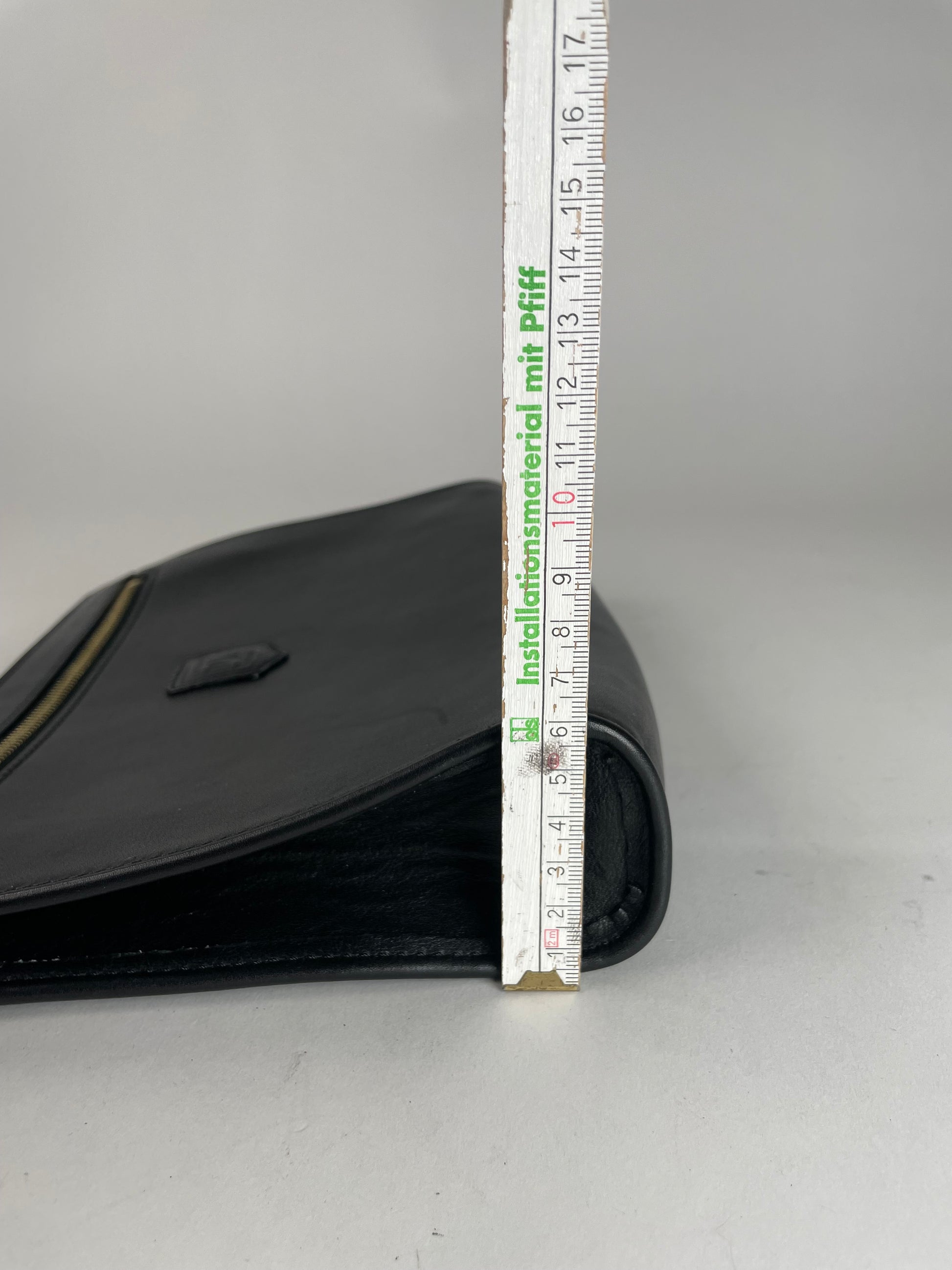 CELINE PARIS vintage Triomphe clutch. This vintage Celine Paris Triomphe clutch is crafted from sleek black leather, exuding timeless sophistication. The gold-tone steel hardware adds an elegant touch, while the interior is also lined with black leather for a refined finish. Made in Italy in 1996 , this iconic piece remains in very good condition despite minor scratches.