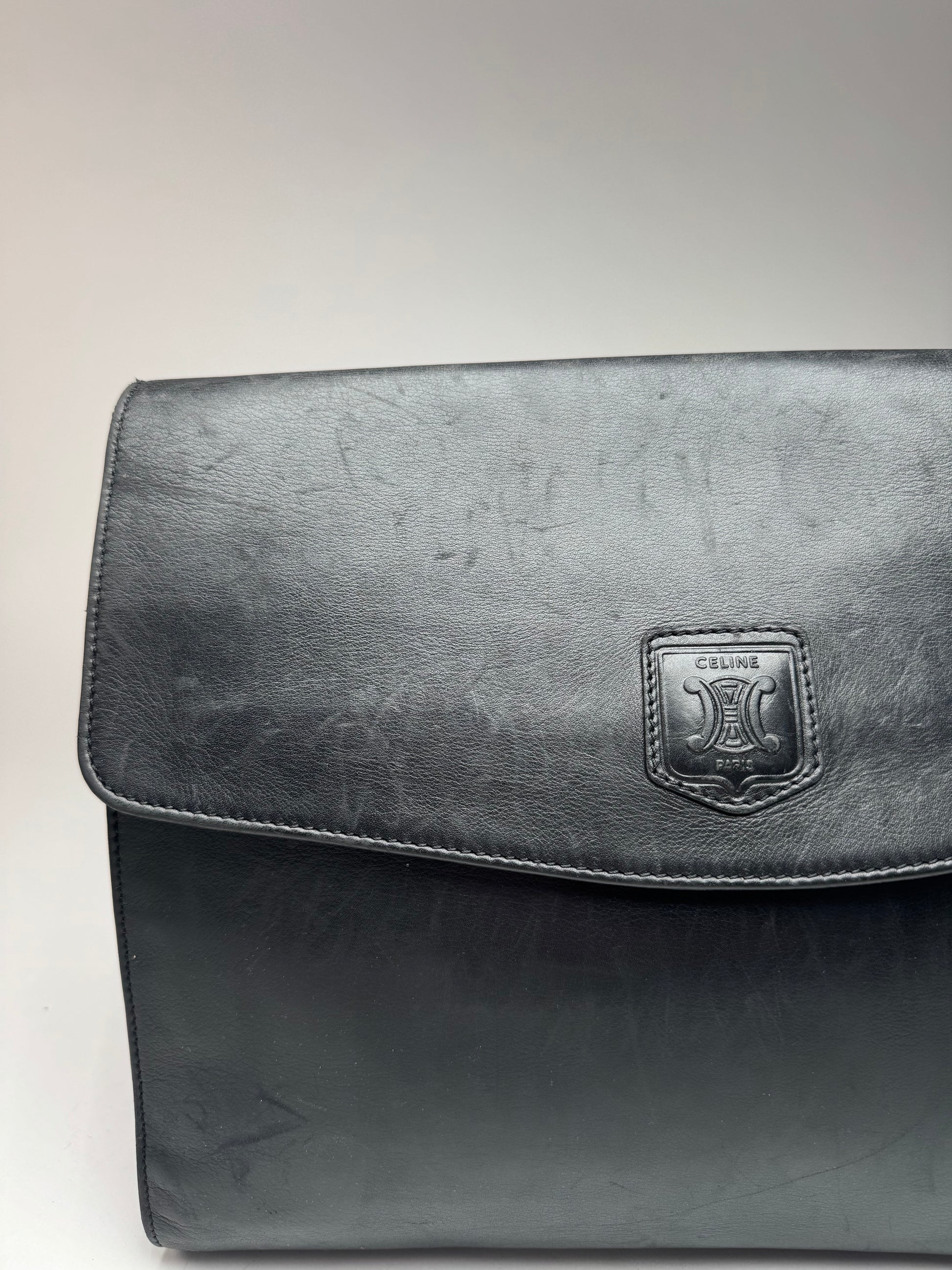 Vintage Celine Paris Triomphe Leather Clutch Black