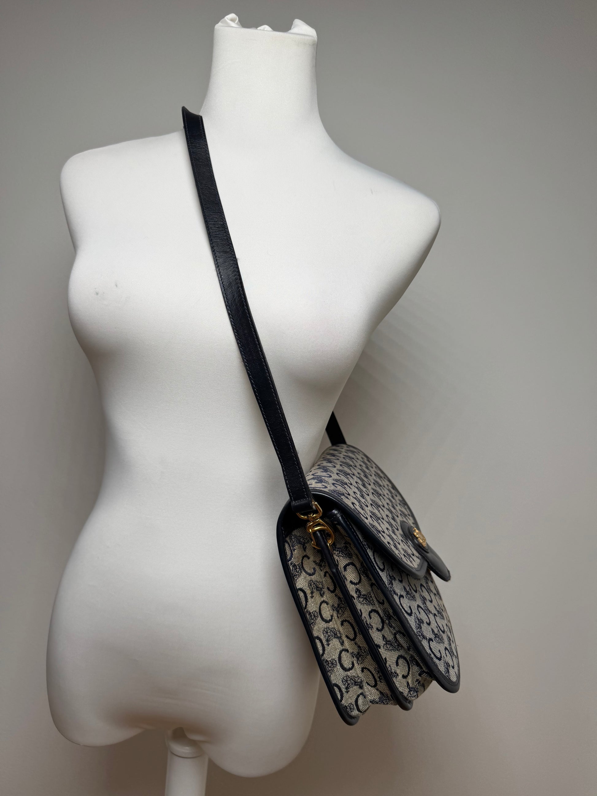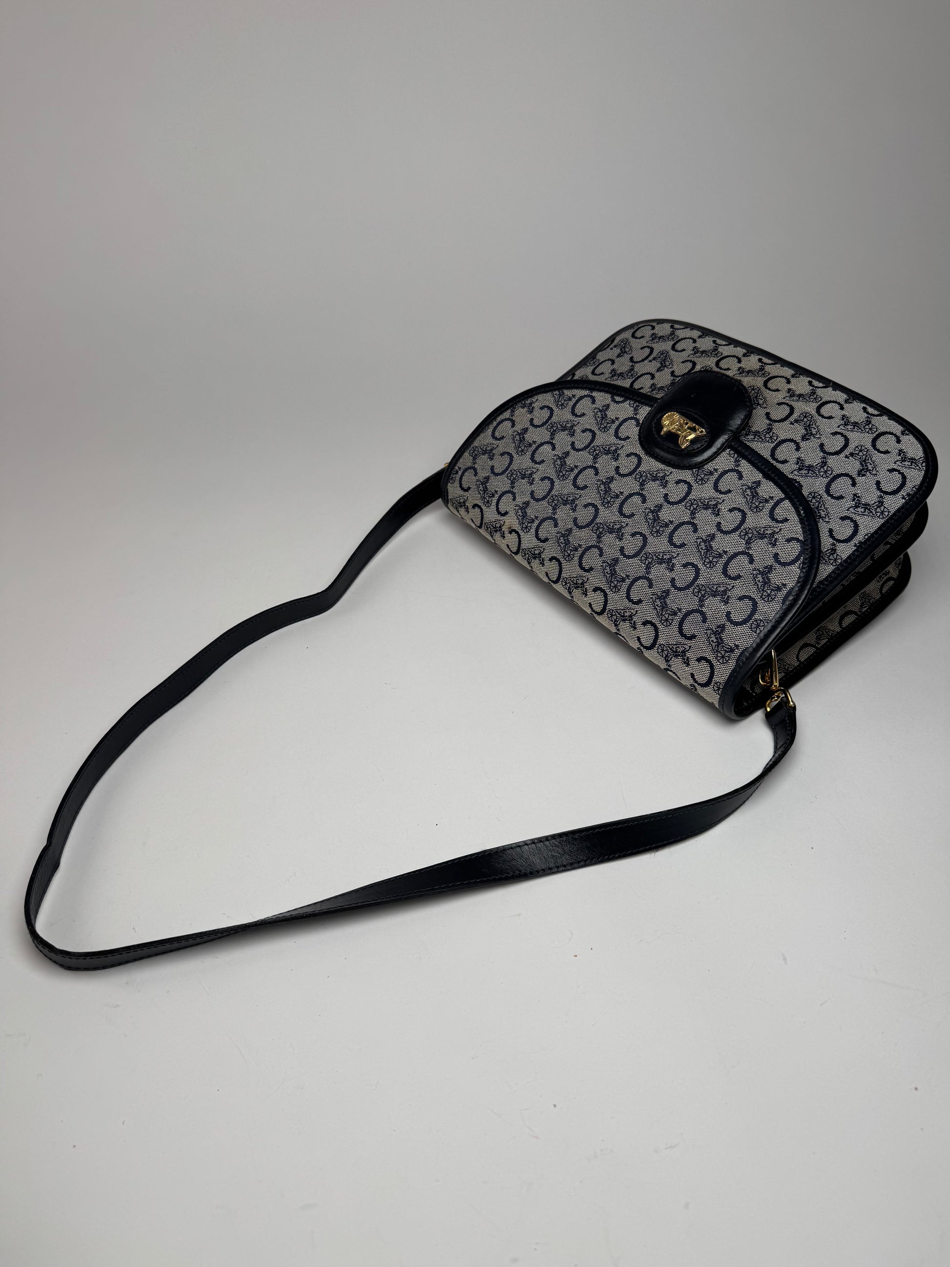 Vintage Celine Paris Triomphe Monogram Canvas/Leather Shoulder bag black gray