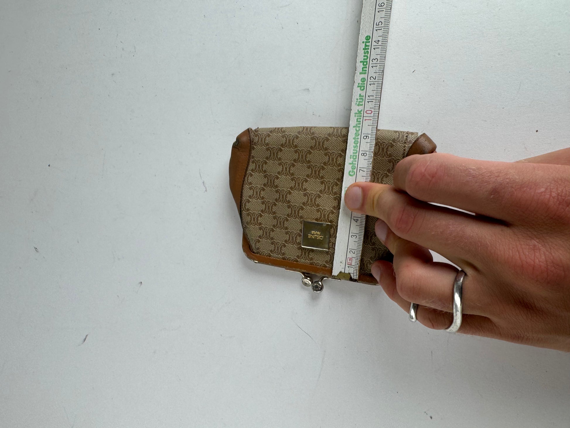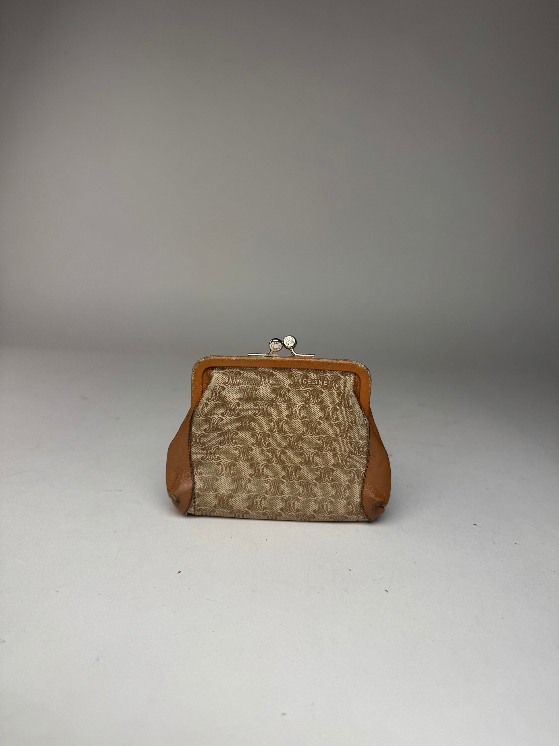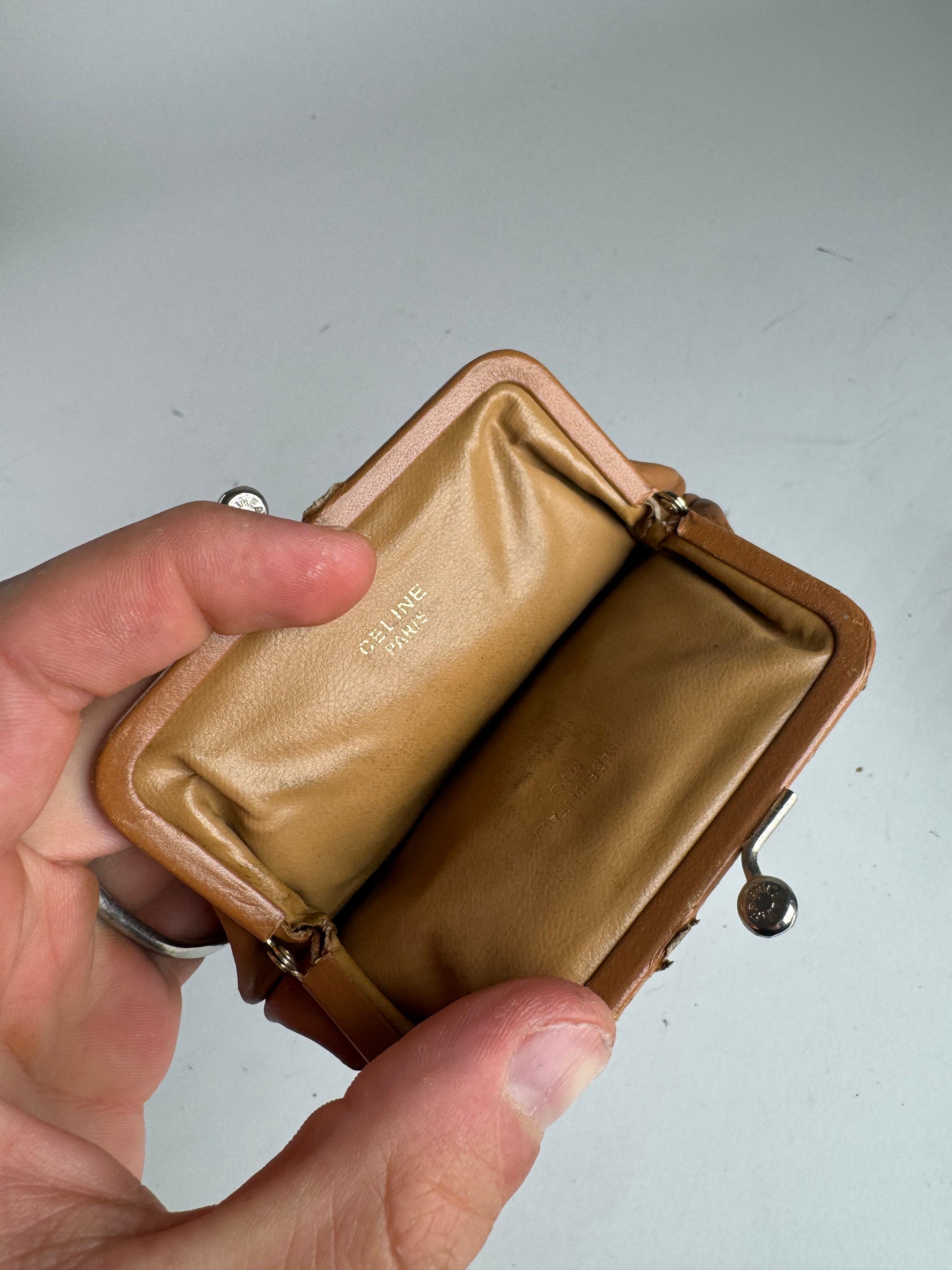 Vintage Celine Paris Triomphe Monogram Leather card Holder / Purse beige brown