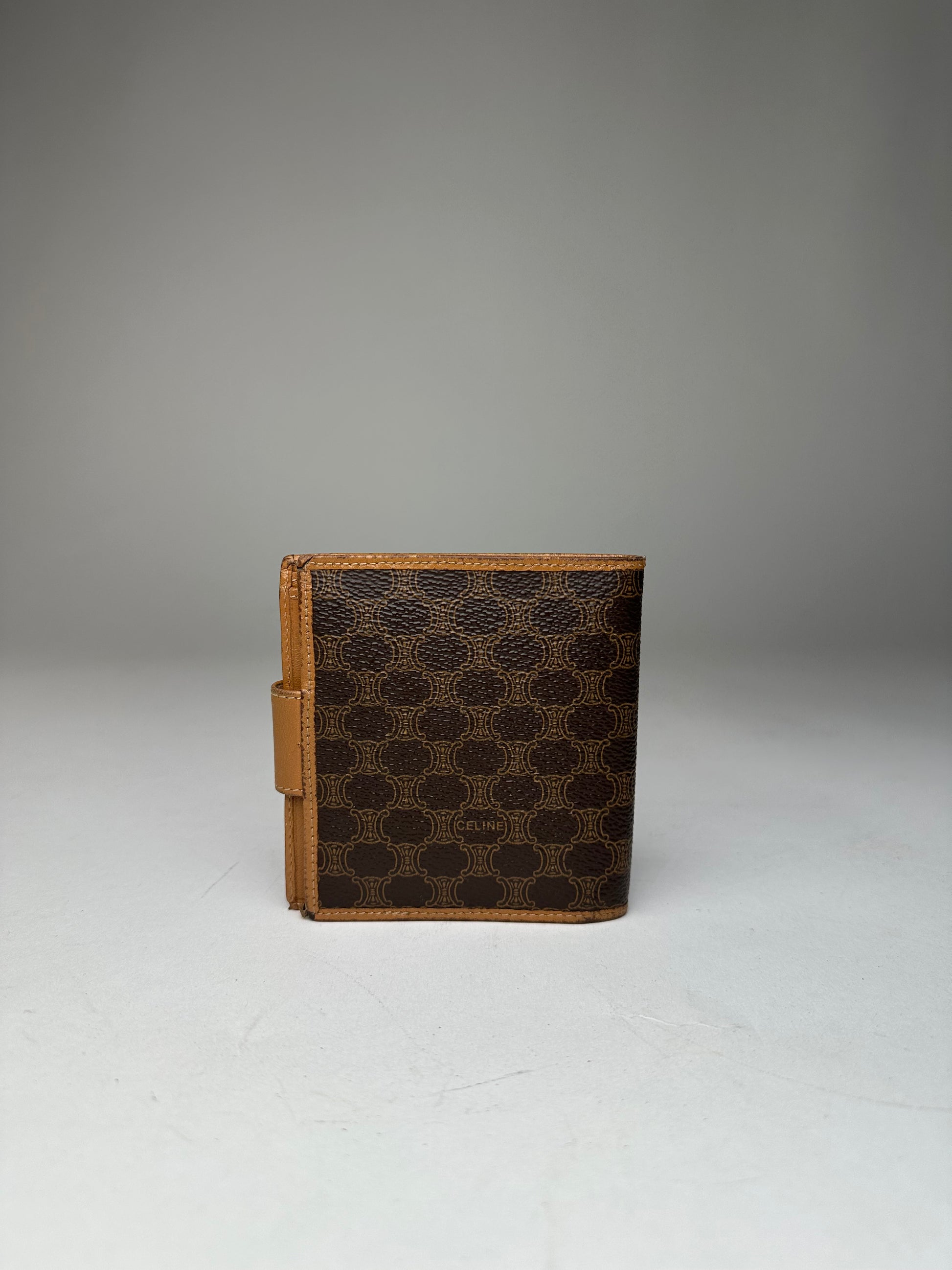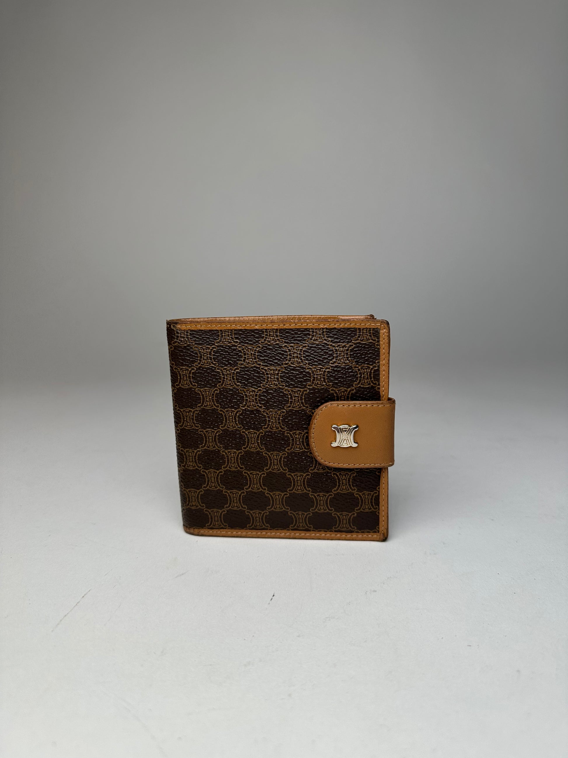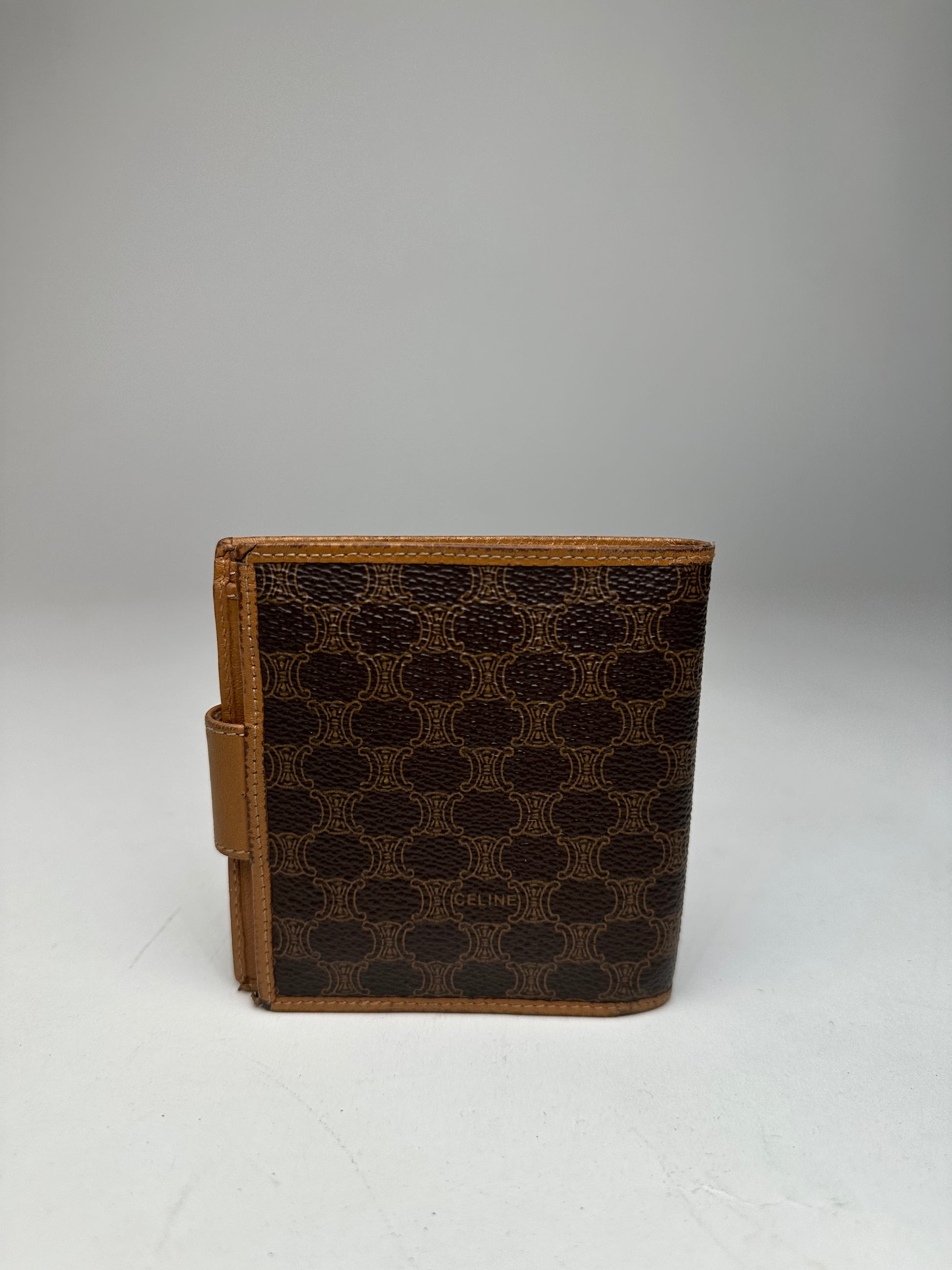 Vintage Celine Paris Triomphe Monogram Leather Wallet Brown