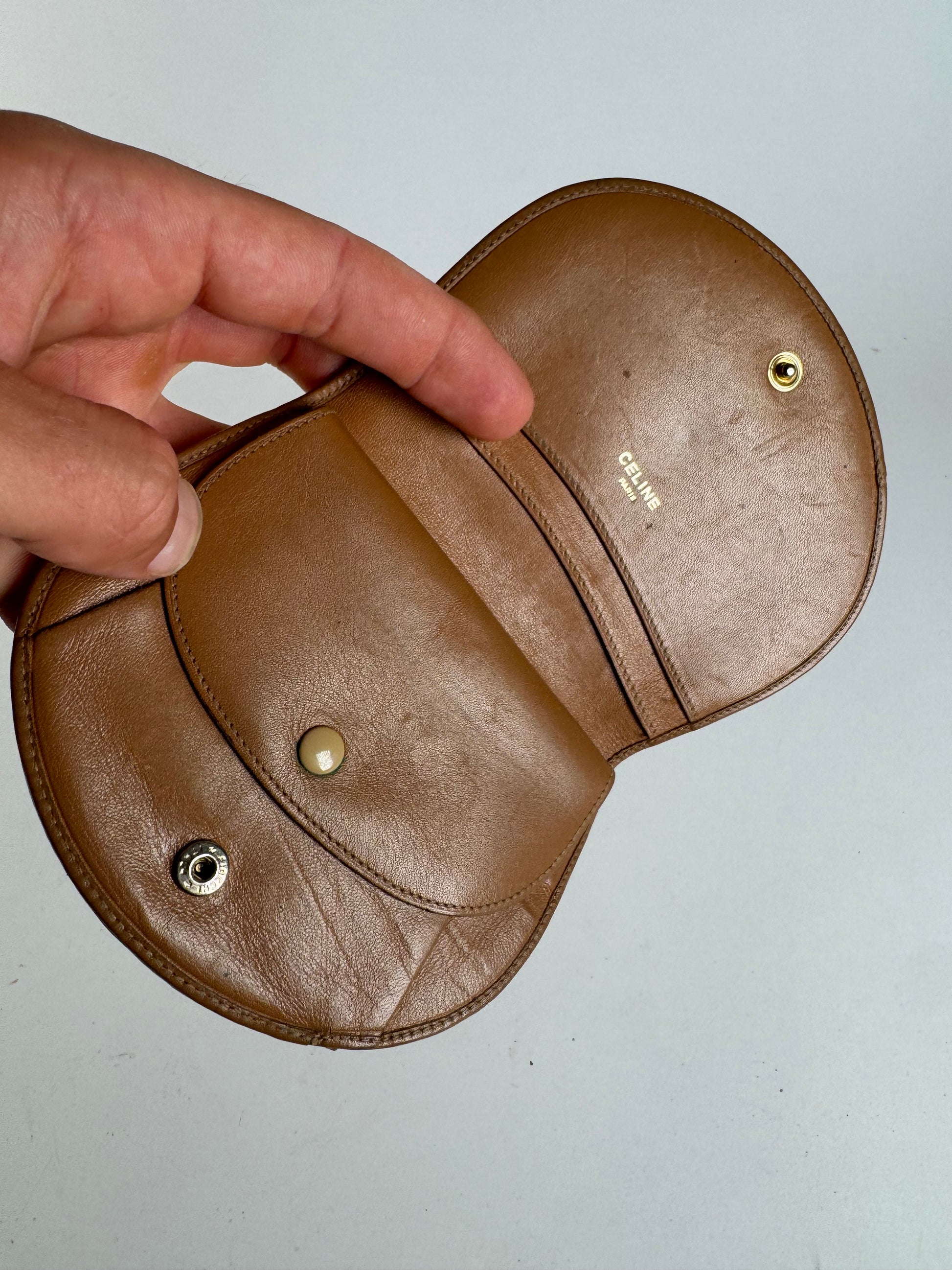 Vintage Celine Triomphe Leather wallet beige brown