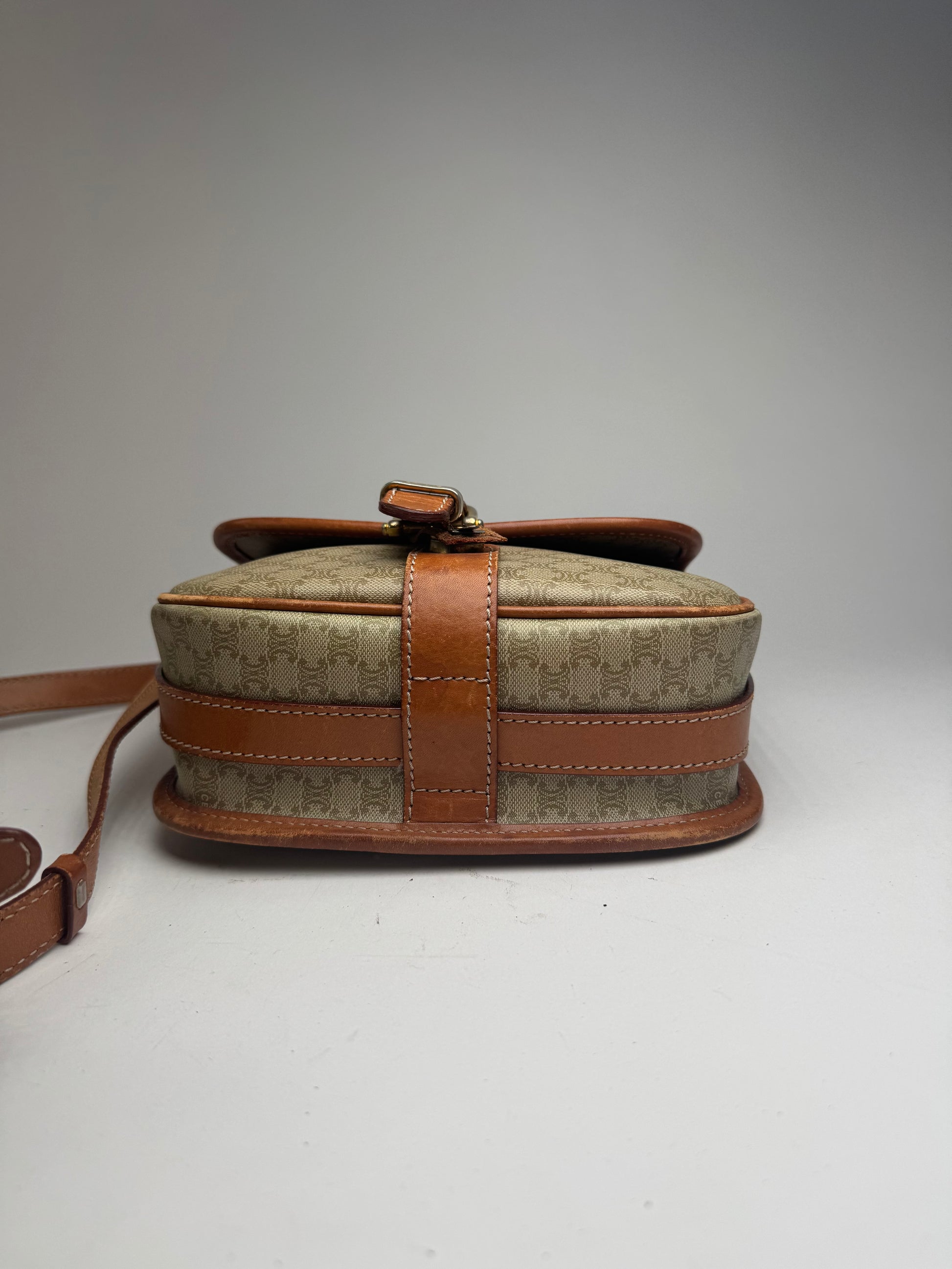 Vintage Celine Triomphe Monogram Leather bag beige brown