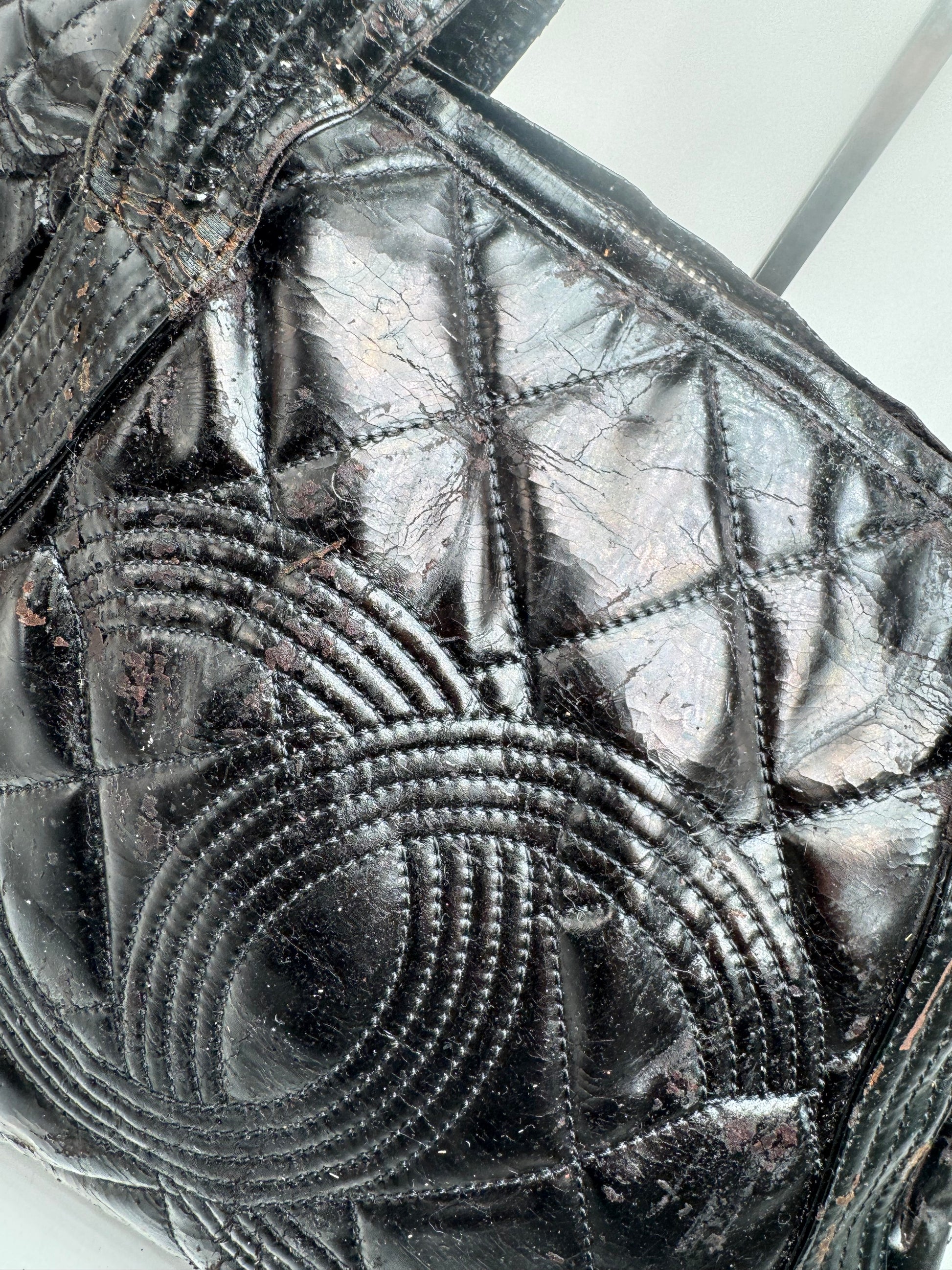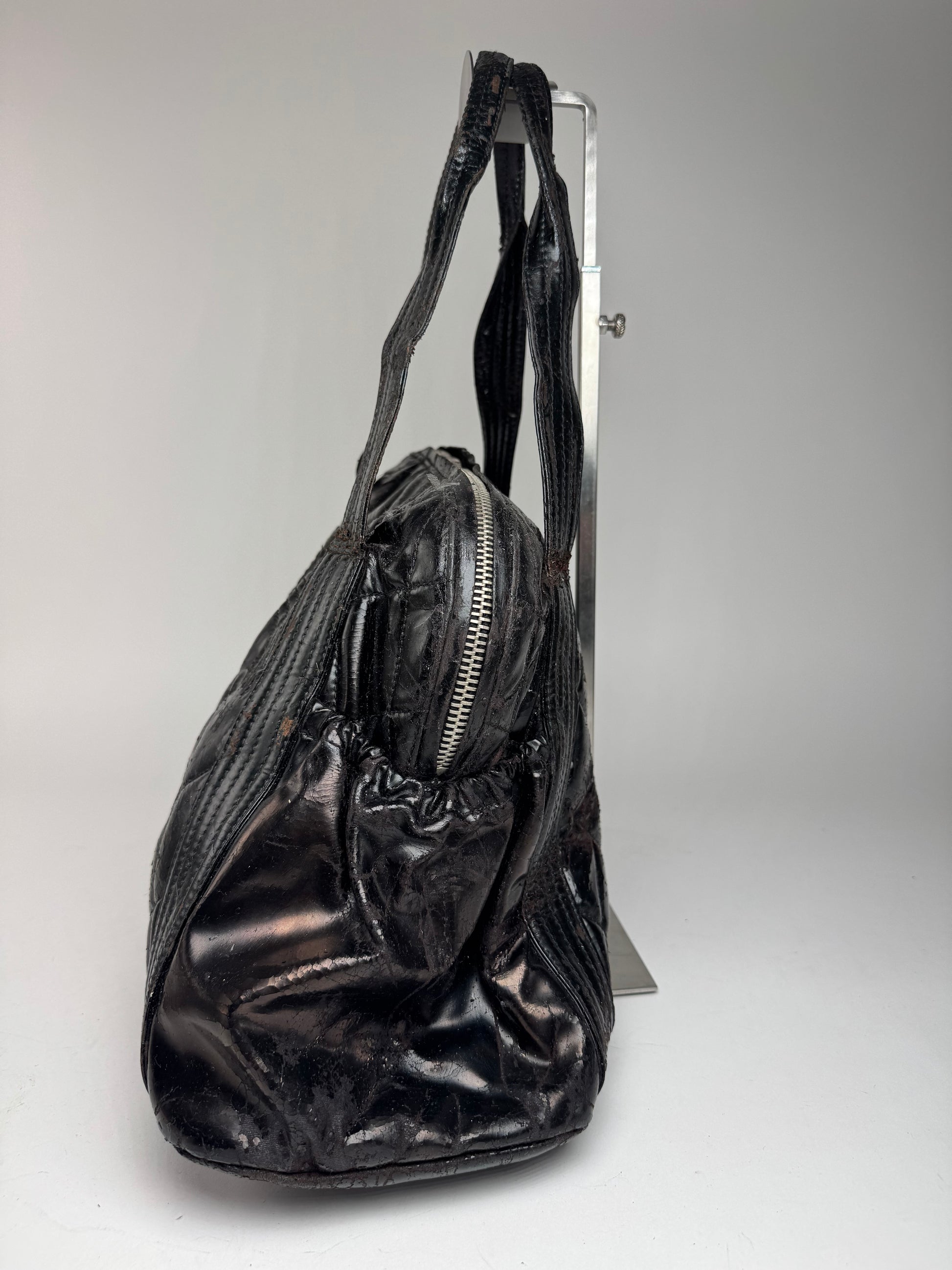 Condition Details: The exterior patent leather is heavily damaged and extremely sticky. Due to this significant wear, the condition is rated as acceptable and reflected in the price. The interior remains in usable condition.