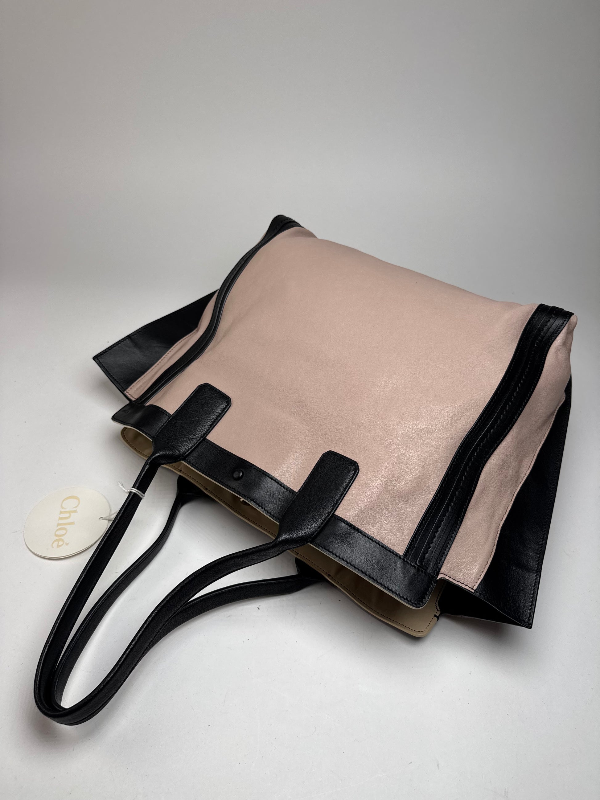 CHLOÉ Alice Tote. This chic handbag is finely crafted of pink and black leather. The shoulder bag features two leather top handles for easy shoulder carry and gold-tone stainless steel hardware.