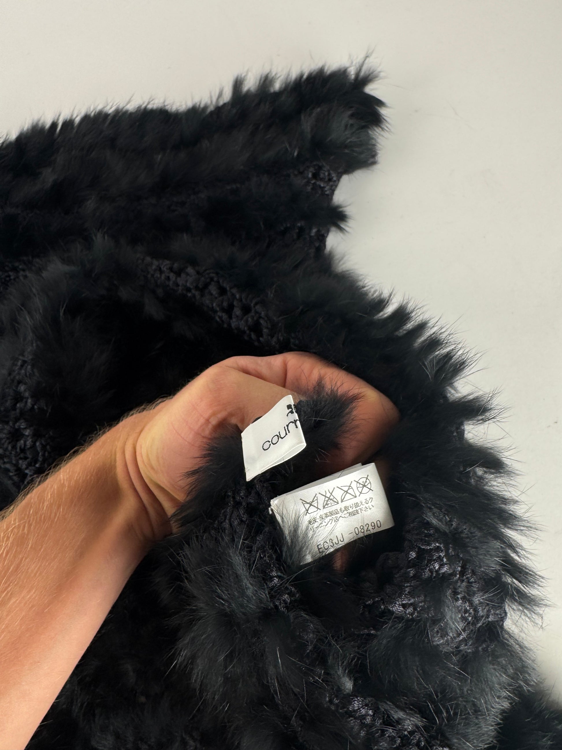 COURRÈGES PARIS Vintage Faux Fur Sweater Jacket. This elegant vintage piece is crafted from soft black faux fur, featuring a high roll neck for a sophisticated silhouette.