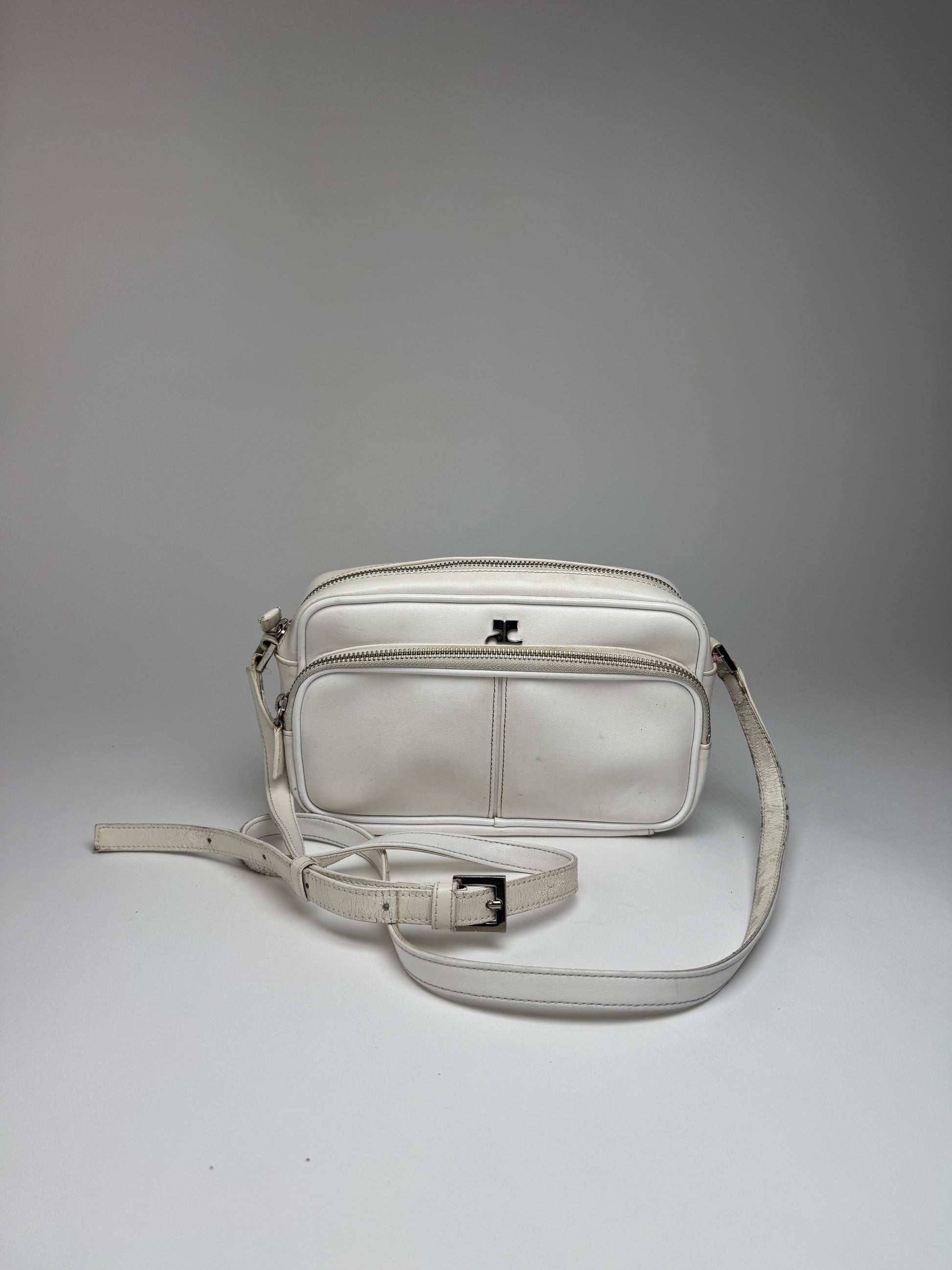 Vintage Courreges Paris Leather Crossbody Bag White