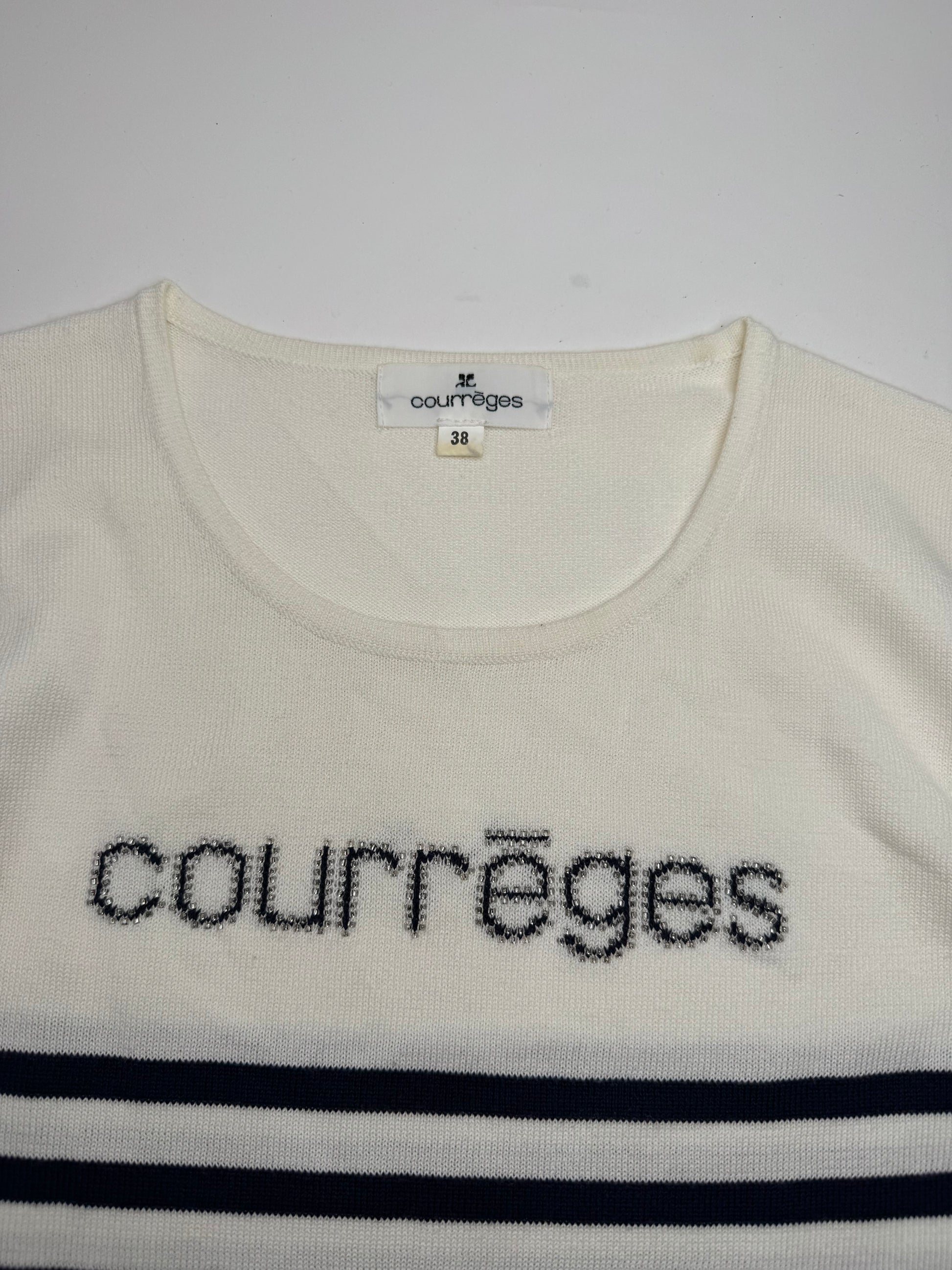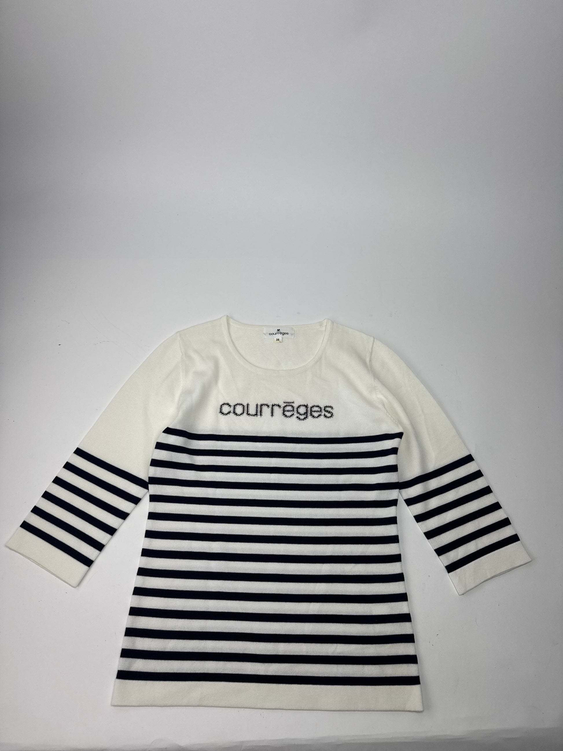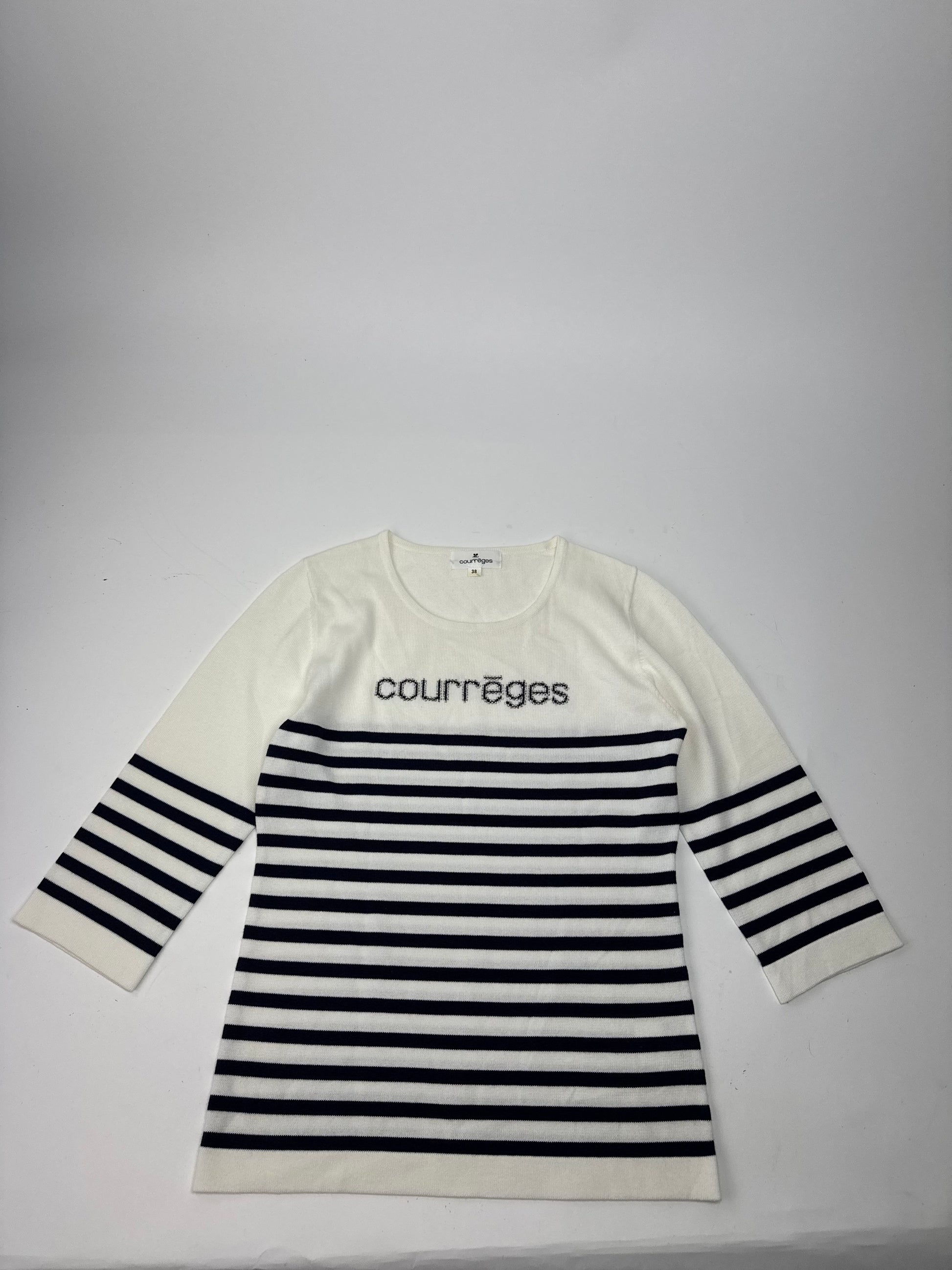 Vintage Courreges Paris Striped Sweater White/Navy EU36/S