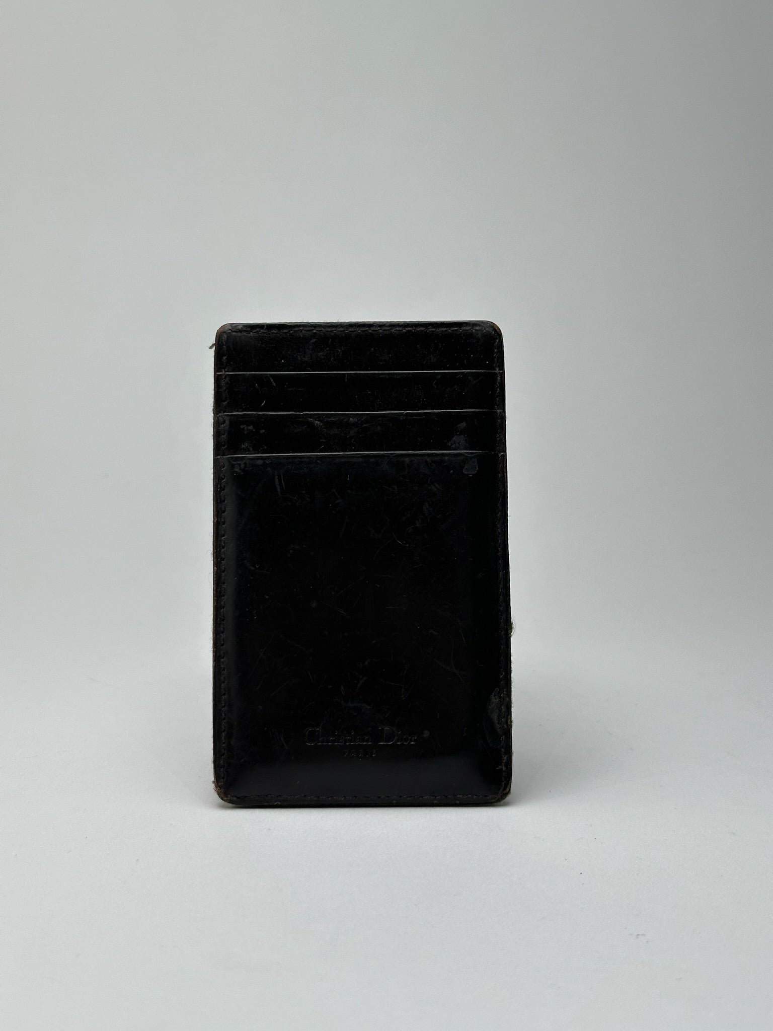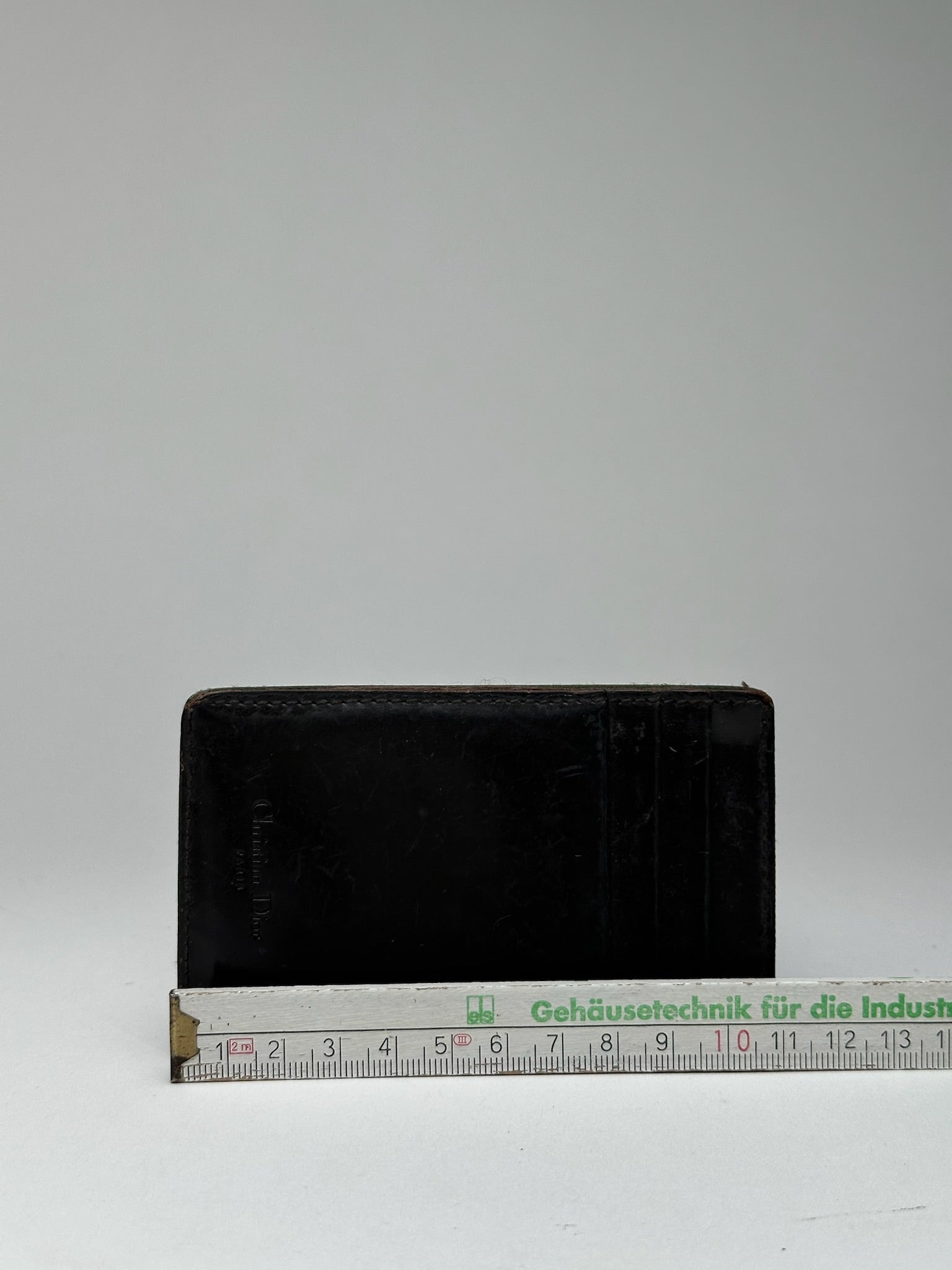 DIOR Vintage Leather & Haircalf Cardholder. This unique cardholder is finely crafted with one side in brown calf hair and the other in smooth brown leather. The front features an embossed Christian Dior logo.