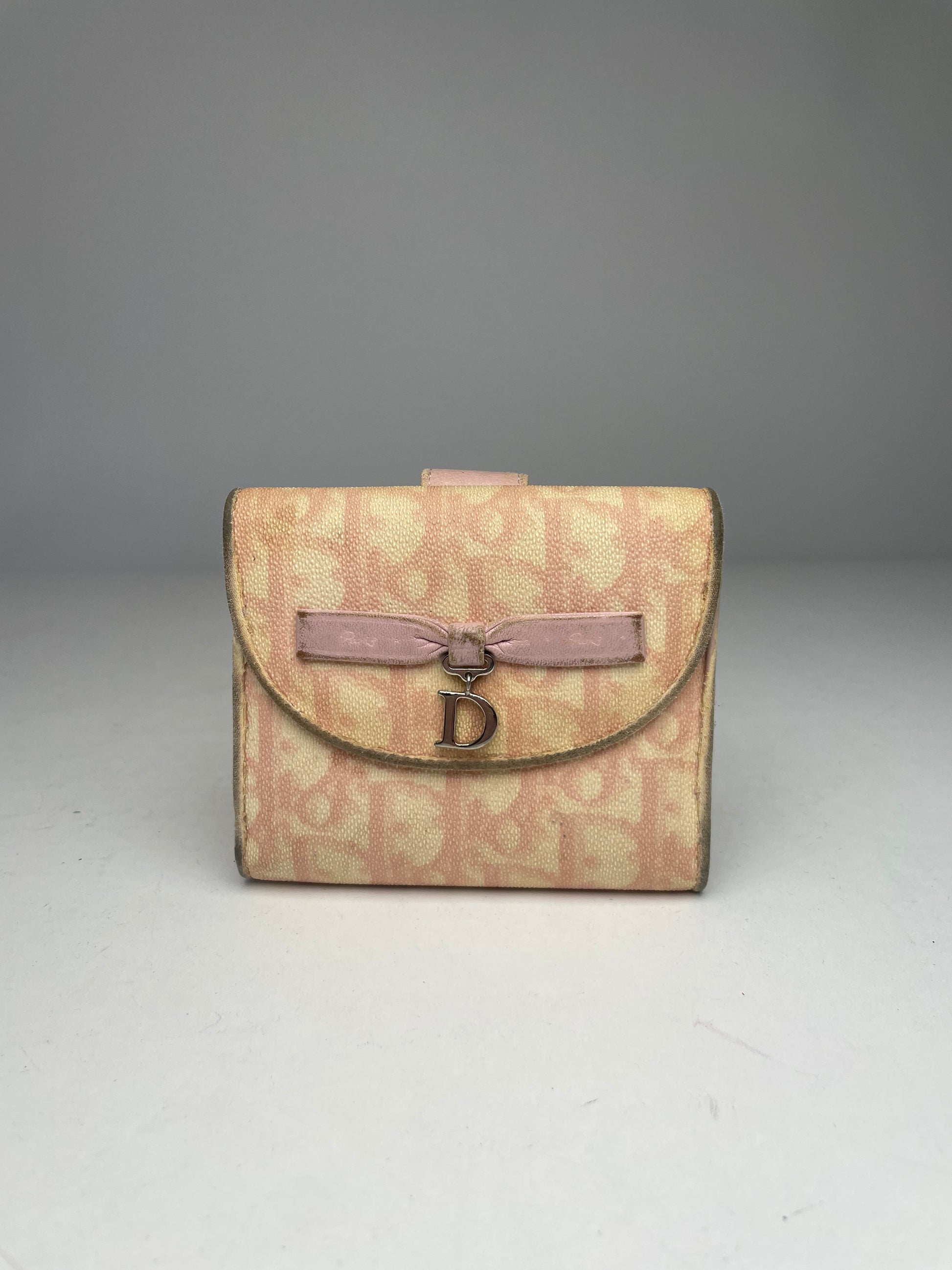Vintage Dior Oblique Leather Wallet Beige Pink