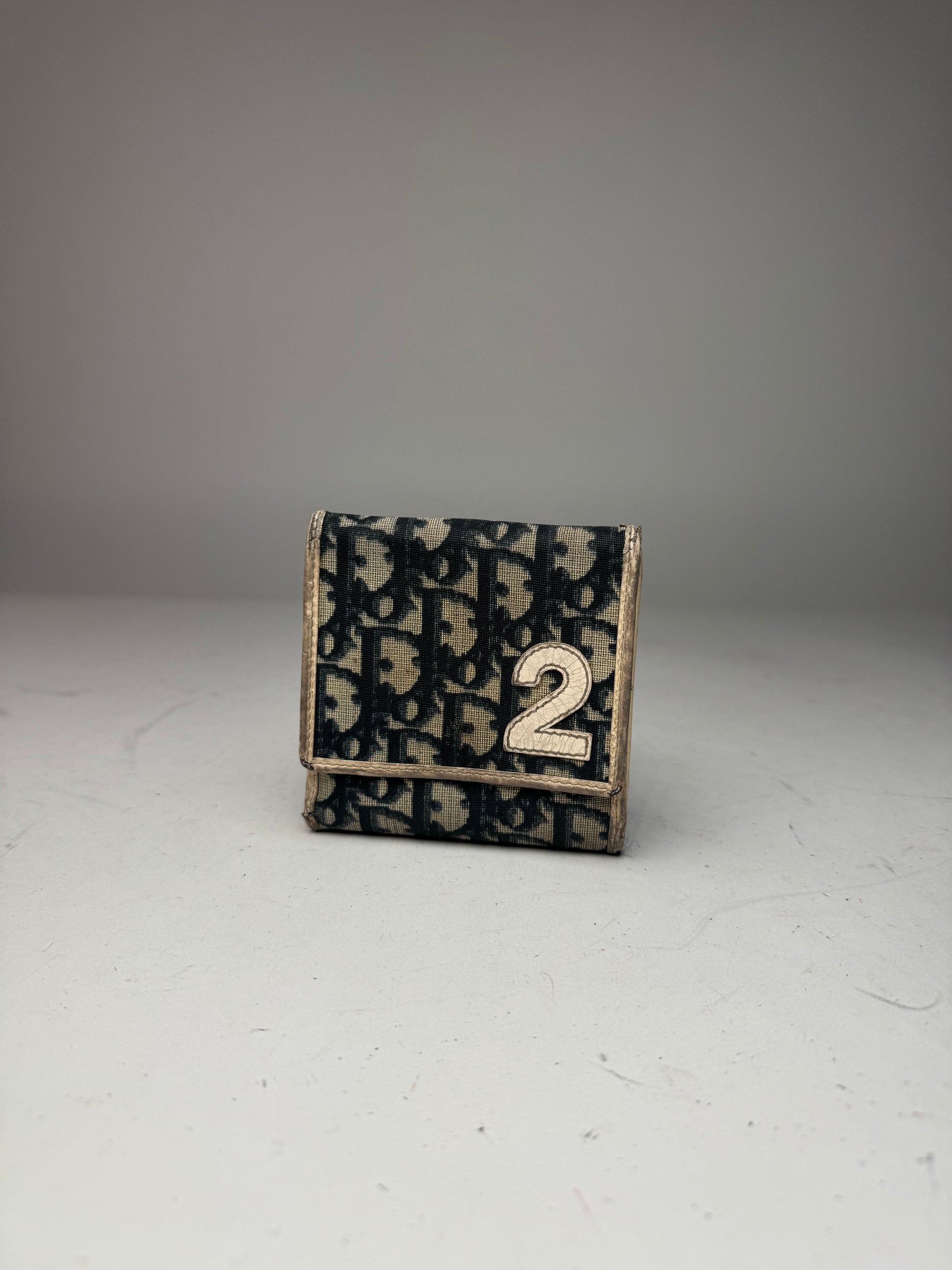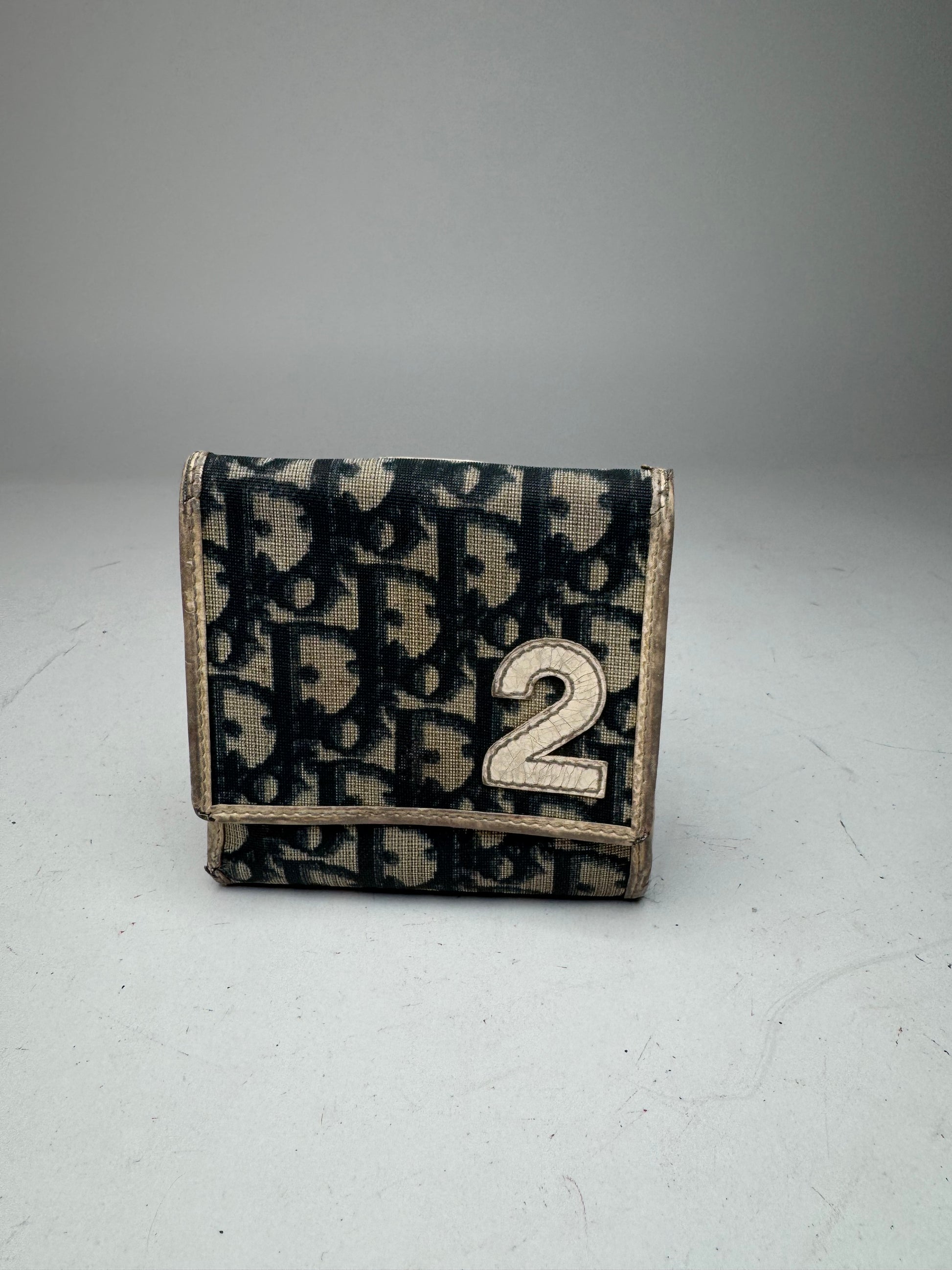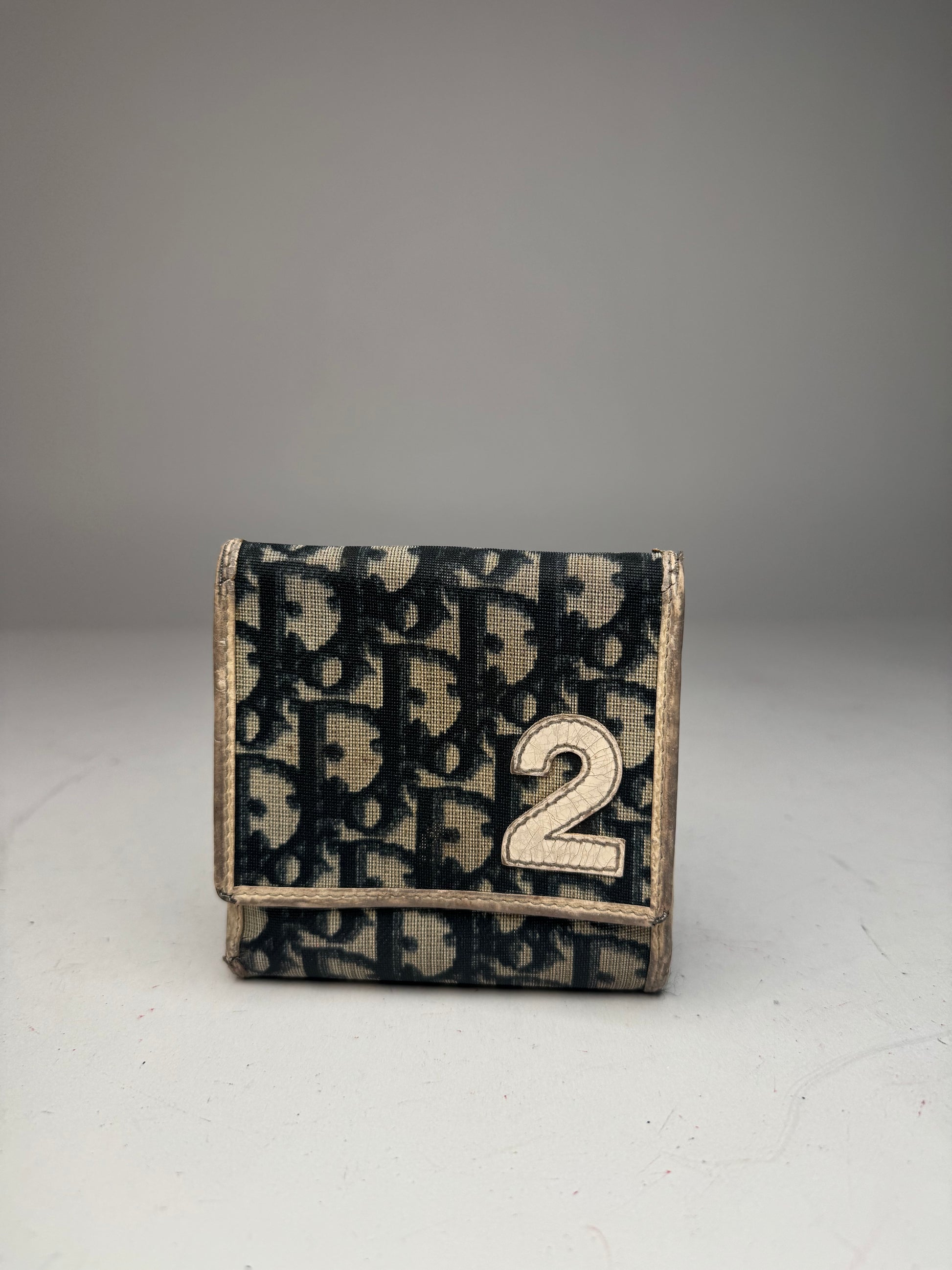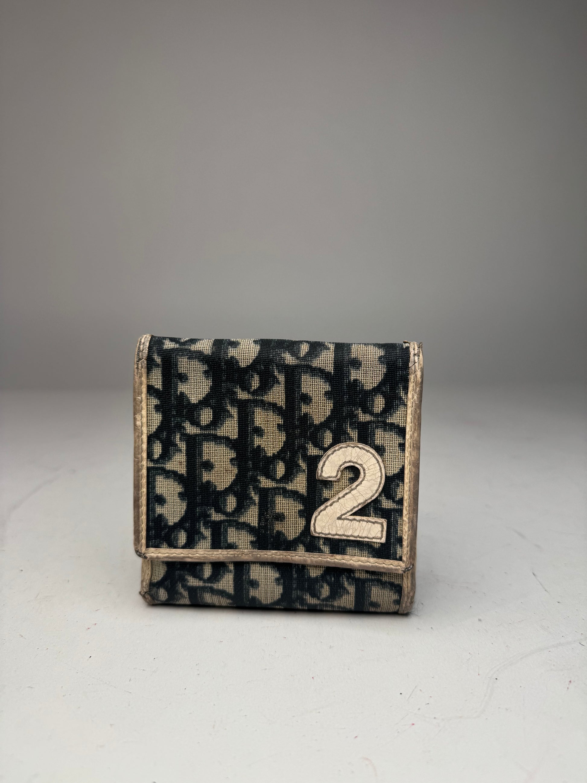 This stylish vintage wallet is crafted from white and blue leather featuring the iconic Dior Oblique monogram and a bold white “2” detail on the front — a hallmark of Dior’s early 2000s design aesthetic that blended sporty elegance with Parisian luxury. The interior is lined with navy leather, reflecting the brand’s impeccable craftsmanship and timeless sophistication.