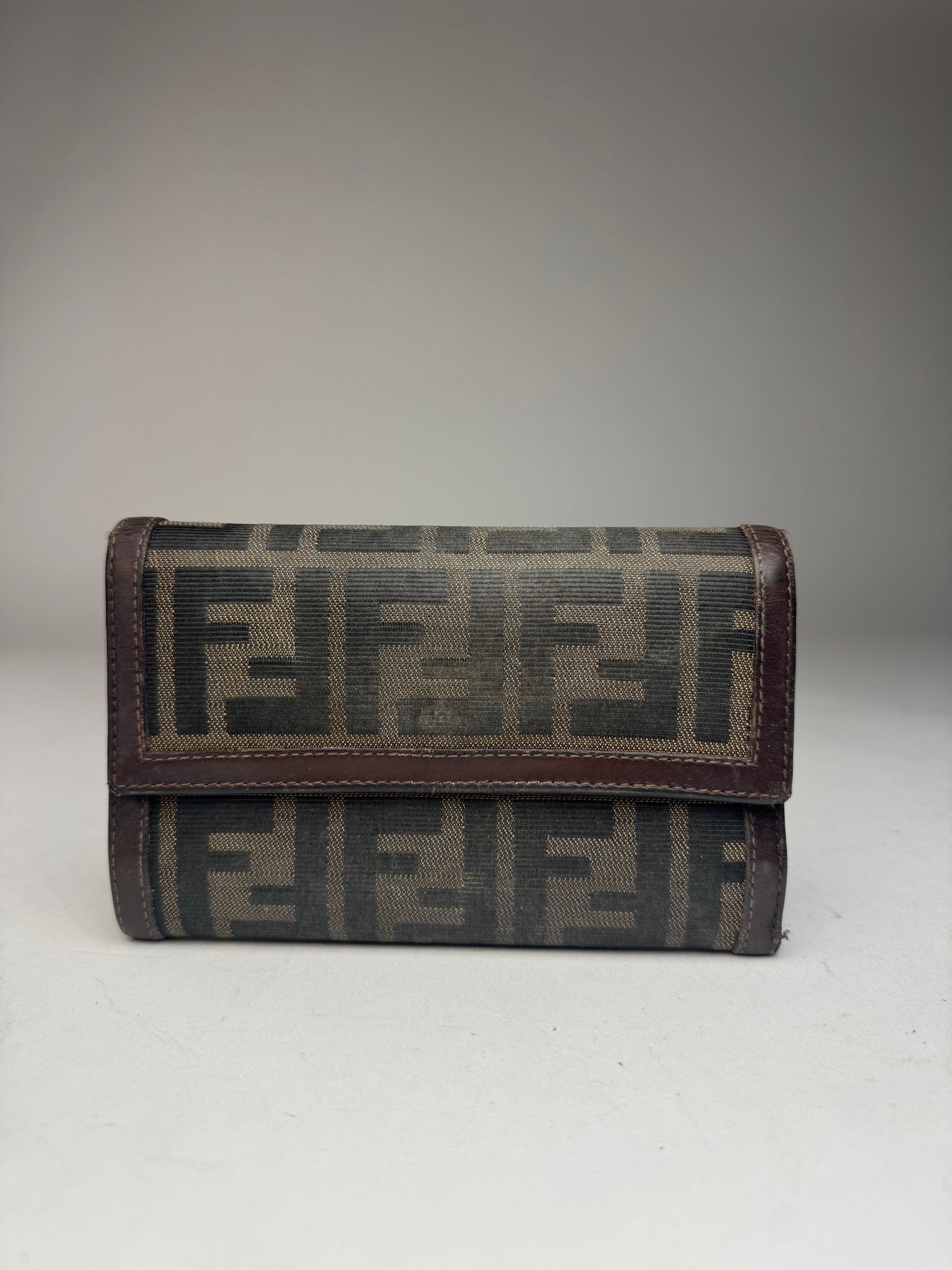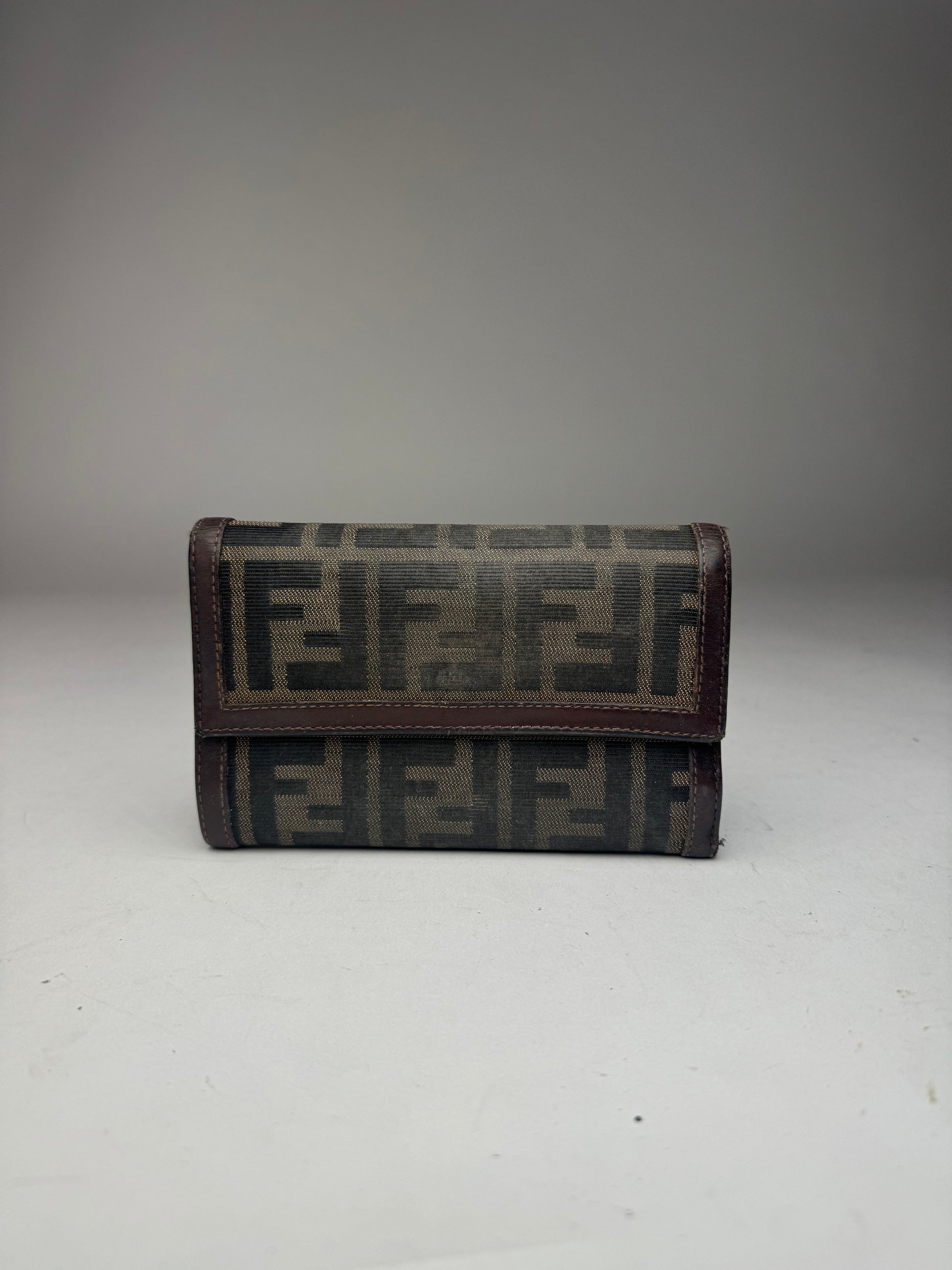 Vintage Fendi FF Monogram Leather Wallet Brown