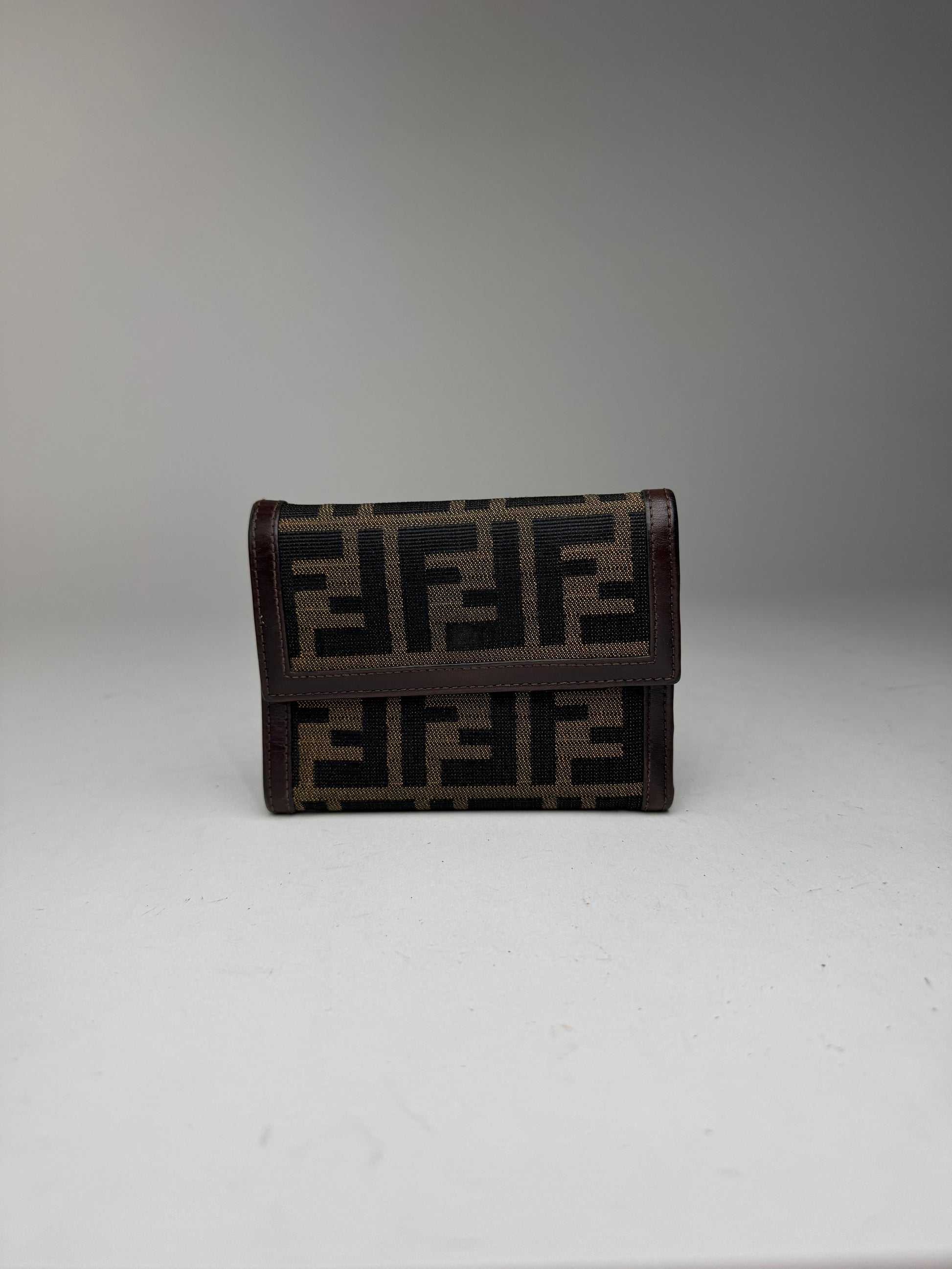Vintage Fendi Roma FF monogram canvas leather wallet brown