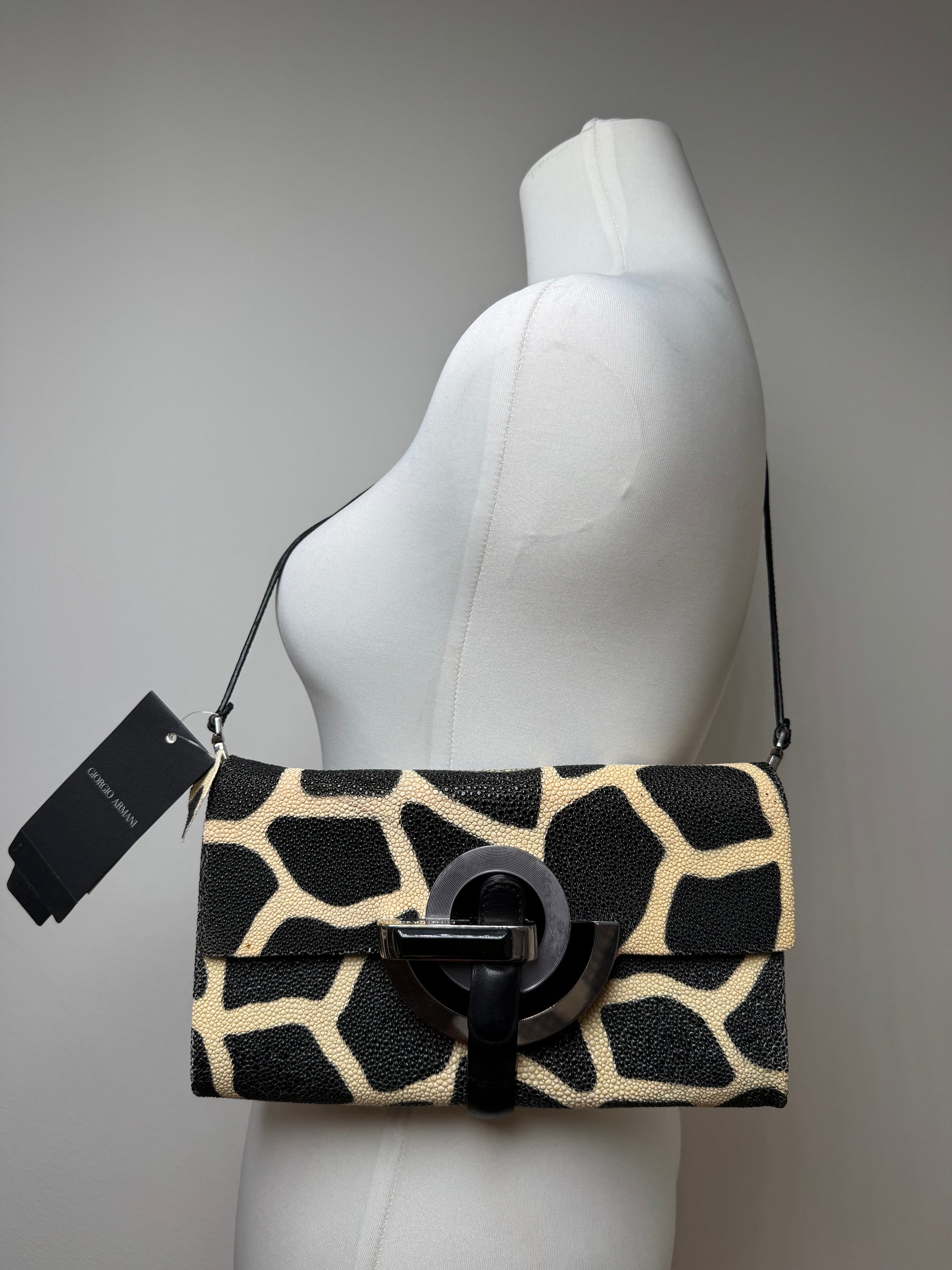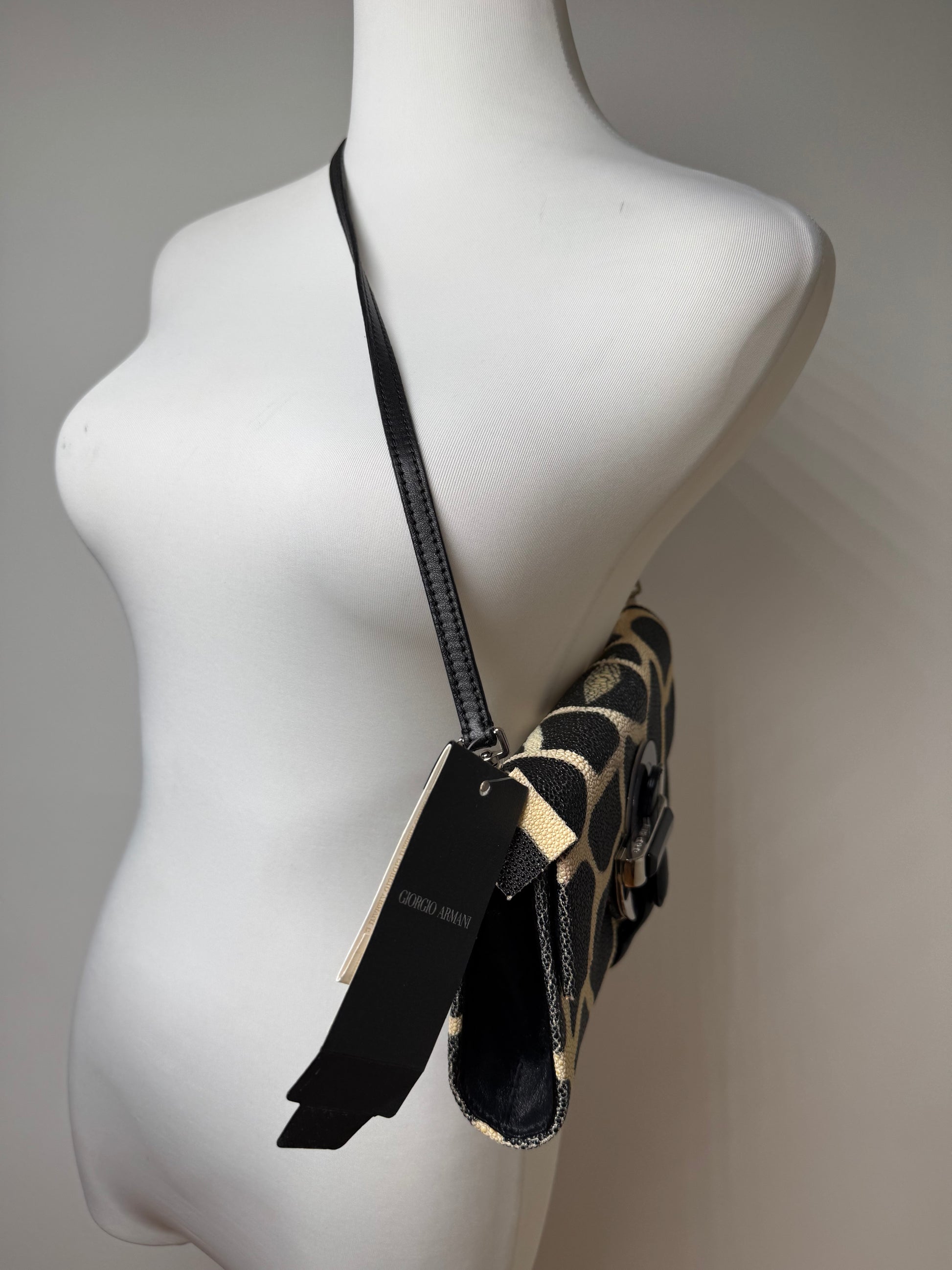 Vintage Giorgio Armani Leather Bag Black Yellow