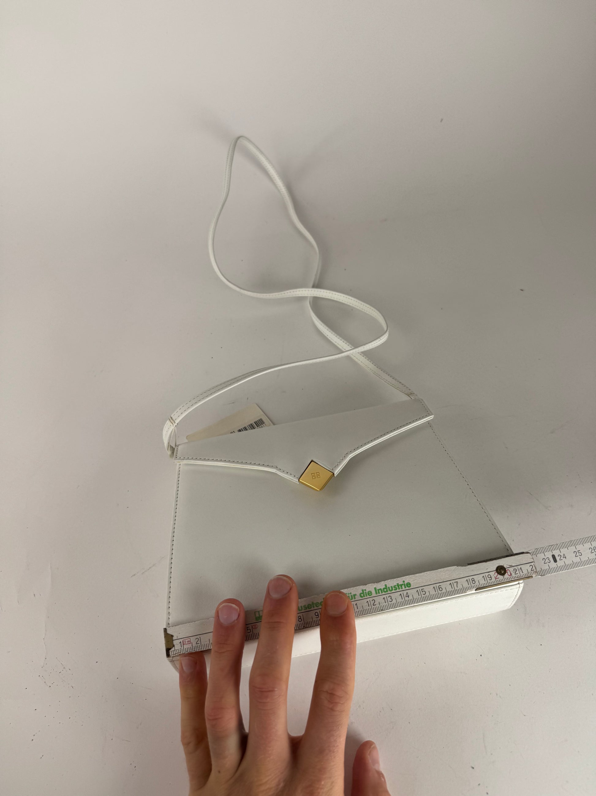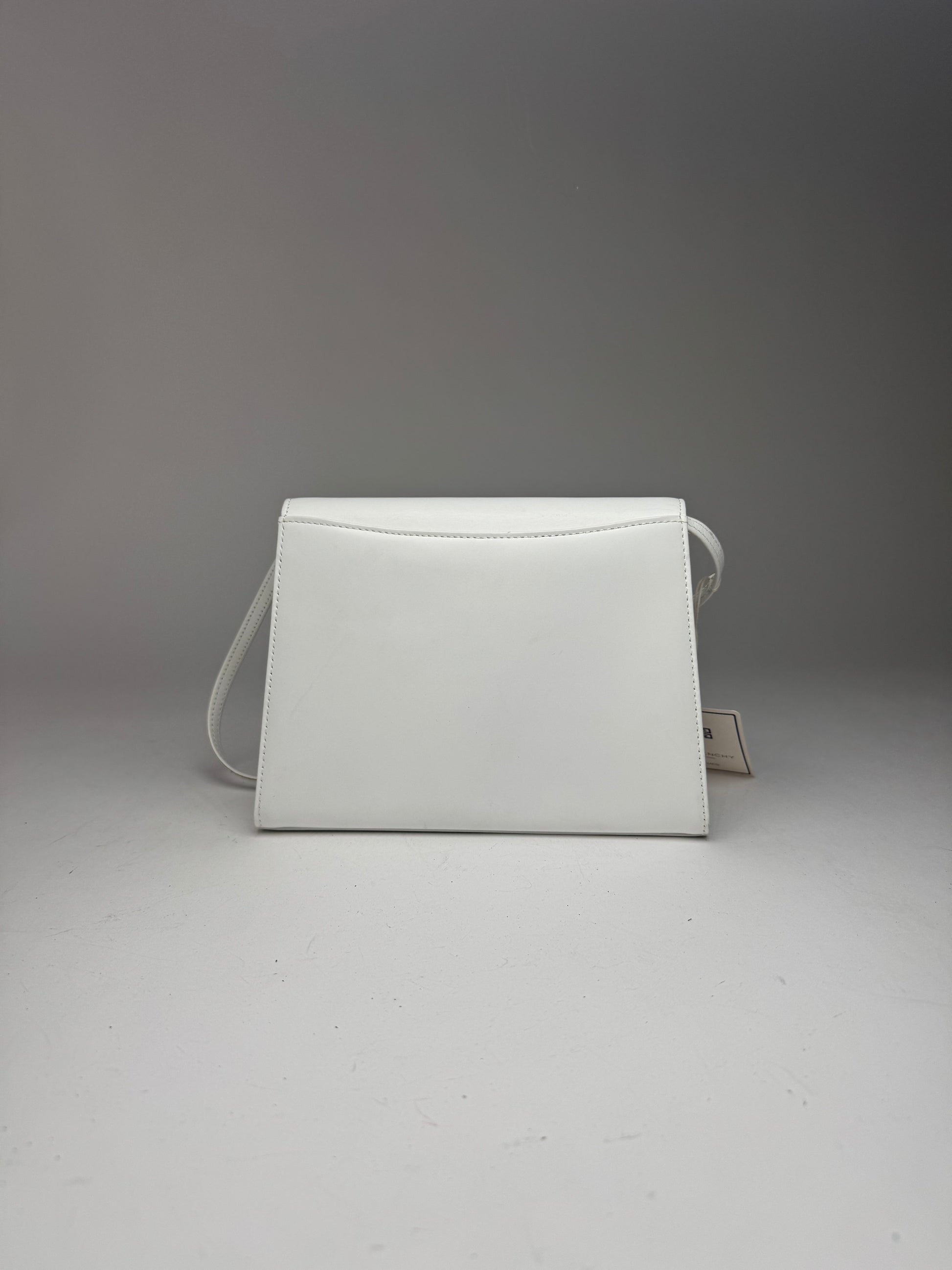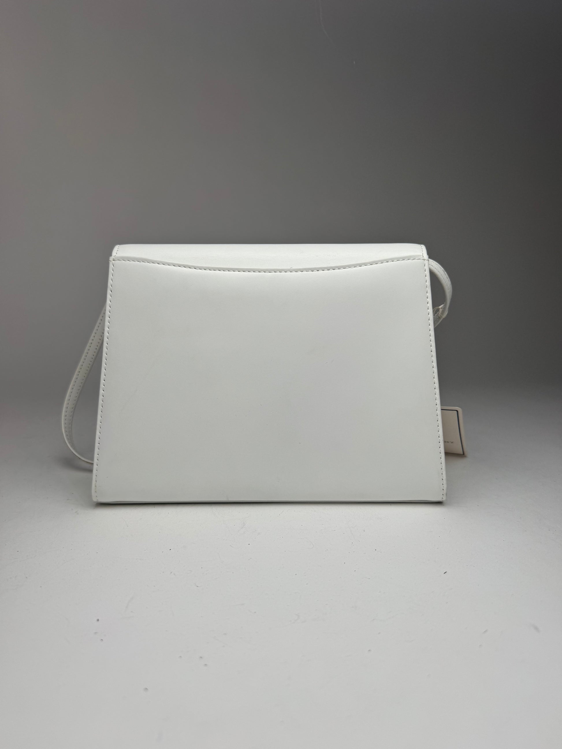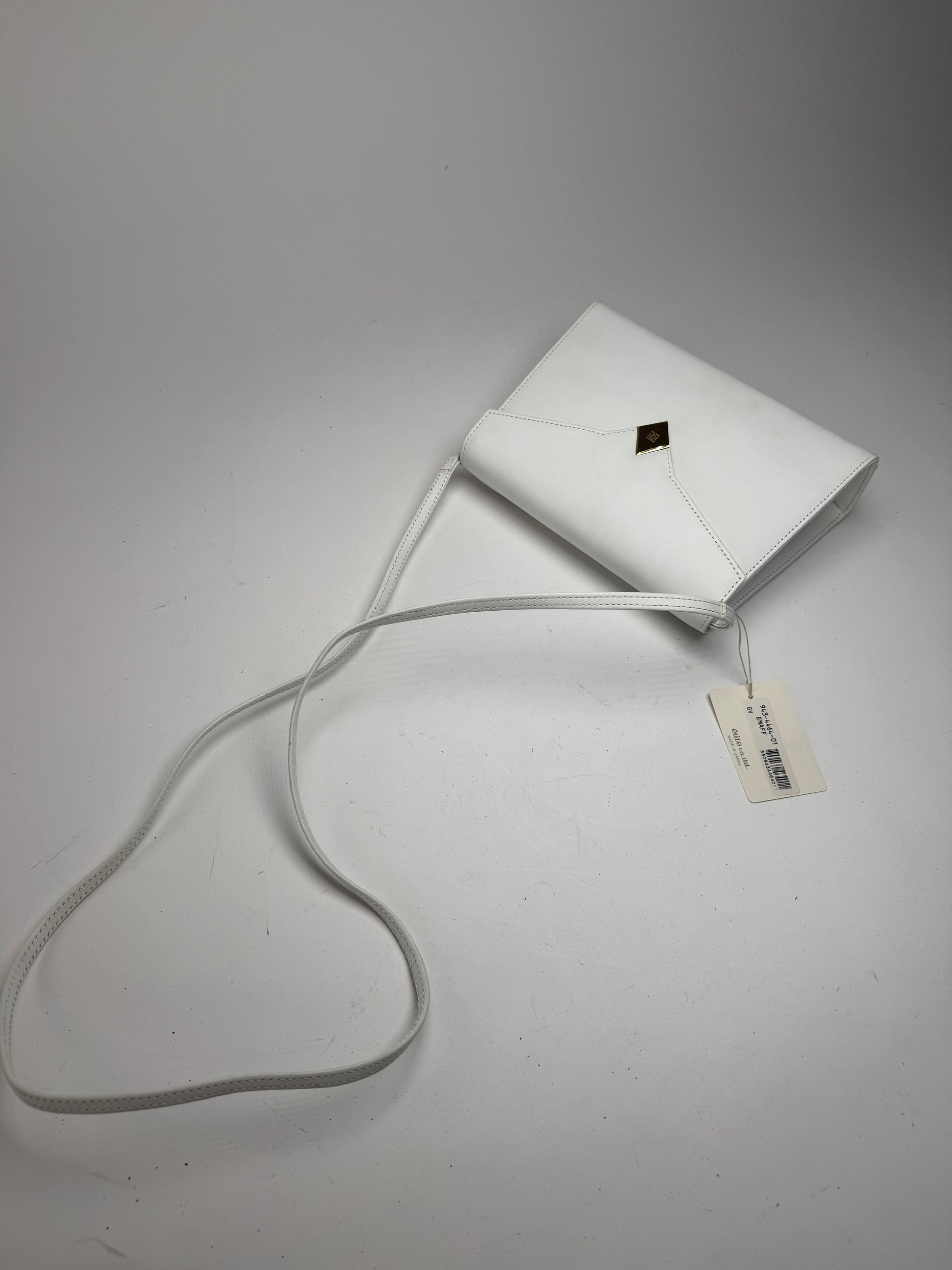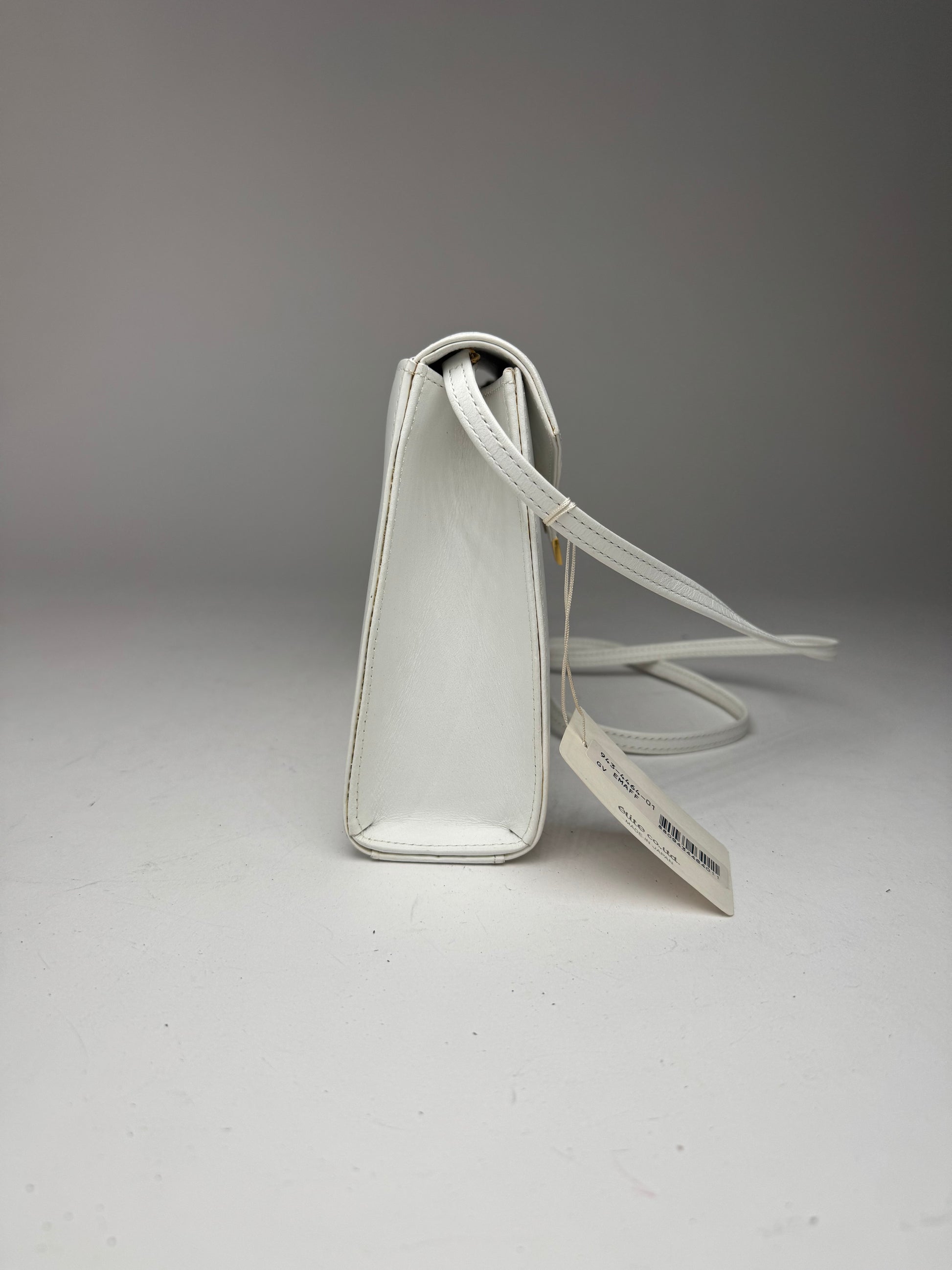 GIVENCHY 4G vintage handbag. This elegant handbag is finely crafted of white leather. Made in Japan, the unisex accessory features gold-toned hardware and a beige canvas interior.