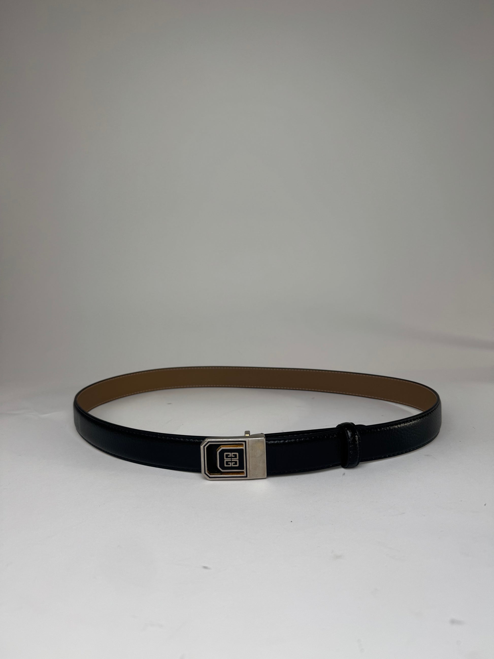 Condition Details: The leather is clean and beautiful in very good condition. The buckle is bright with light scratches. The belt strap is a replacement and not original Givenchy, and additional holes need to be punched for sizing.
