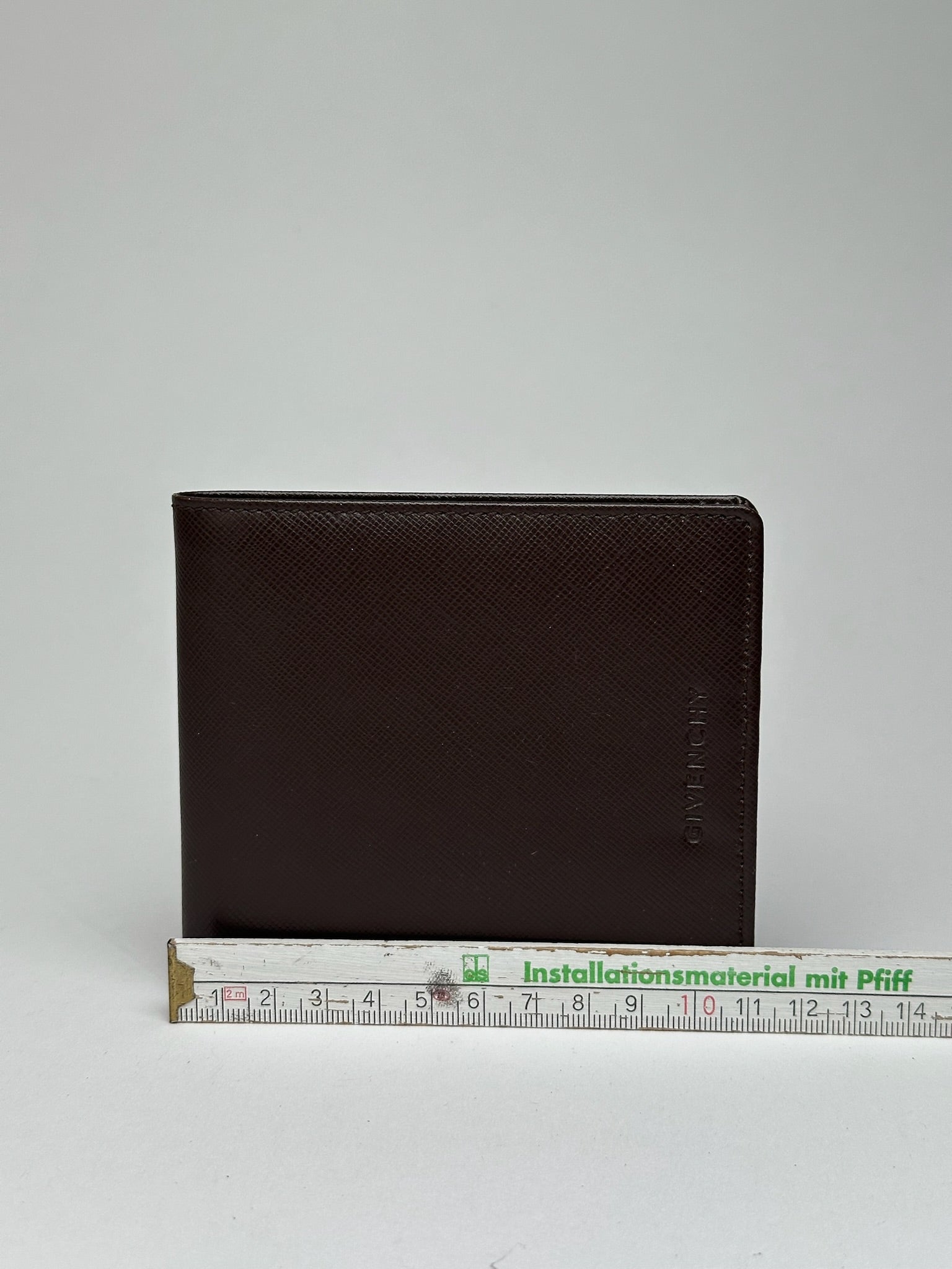 GIVENCHY Vintage Leather Wallet. This chic wallet is finely crafted of dark brown leather. The interior is lined in matching leather and features black canvas trimming with Givenchy logos.