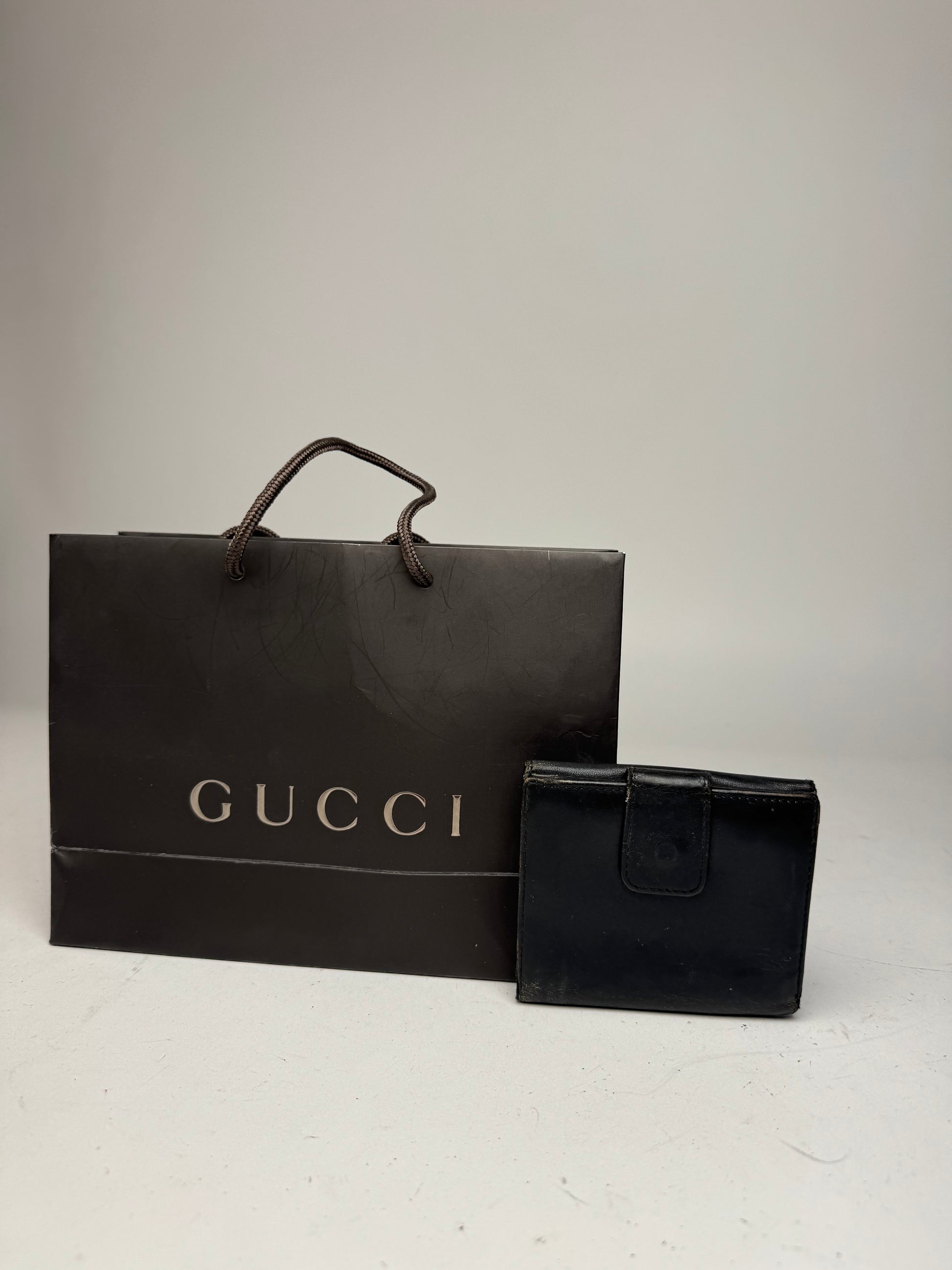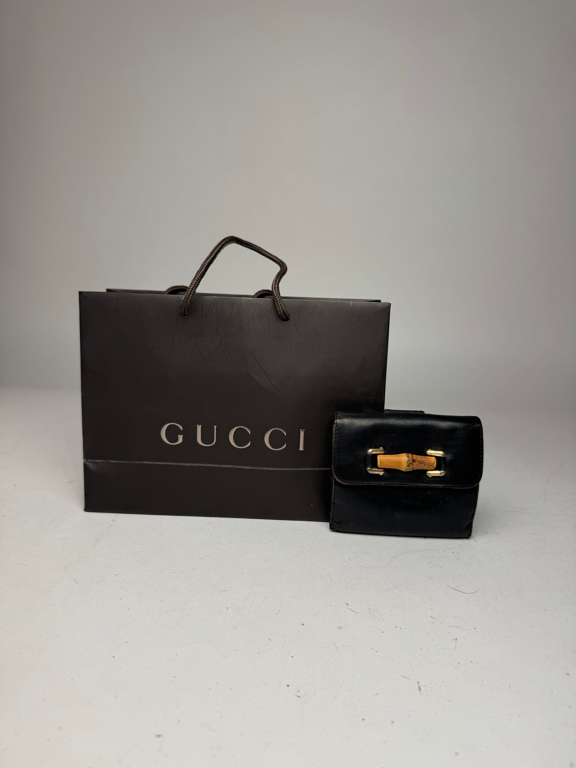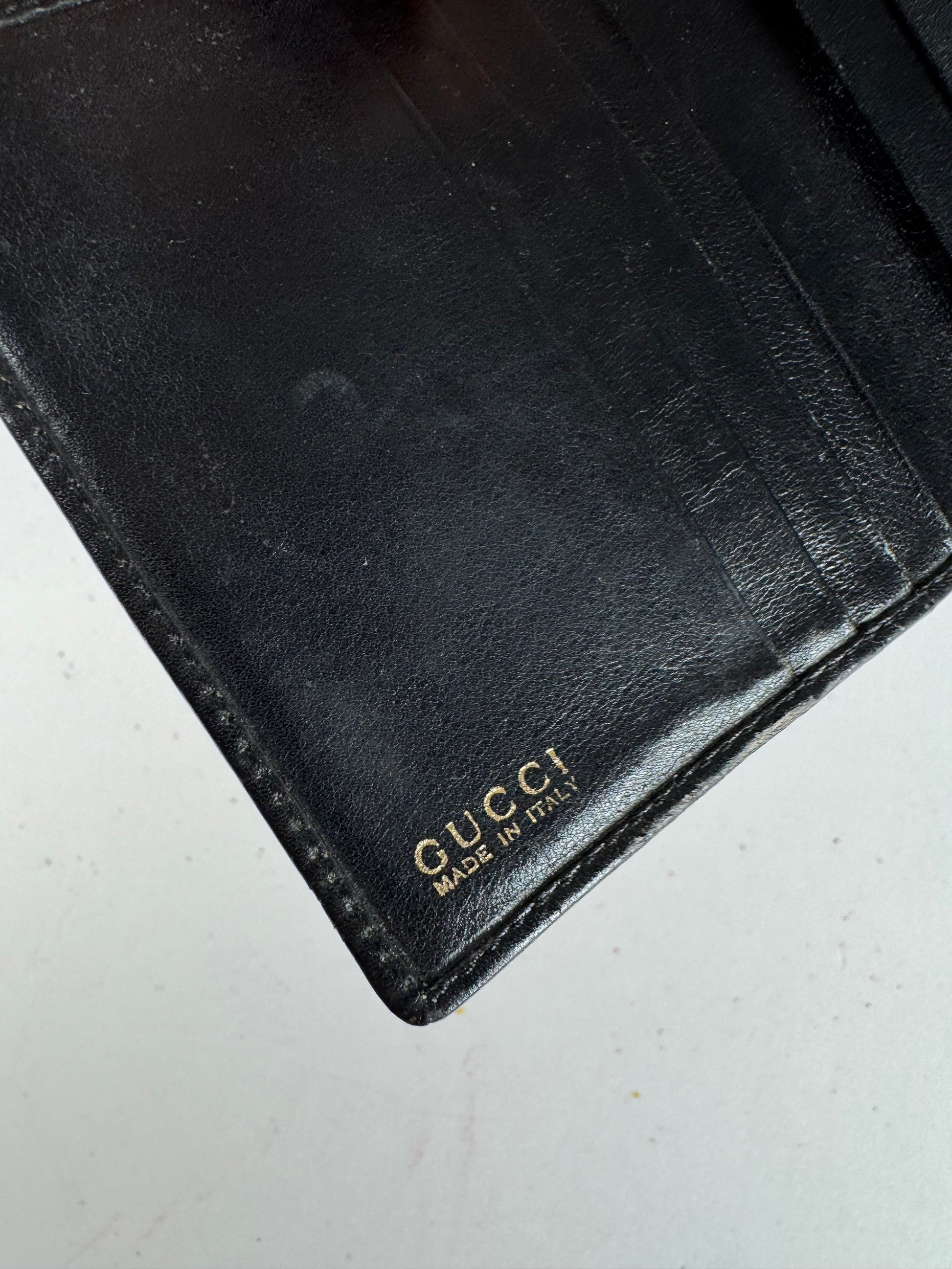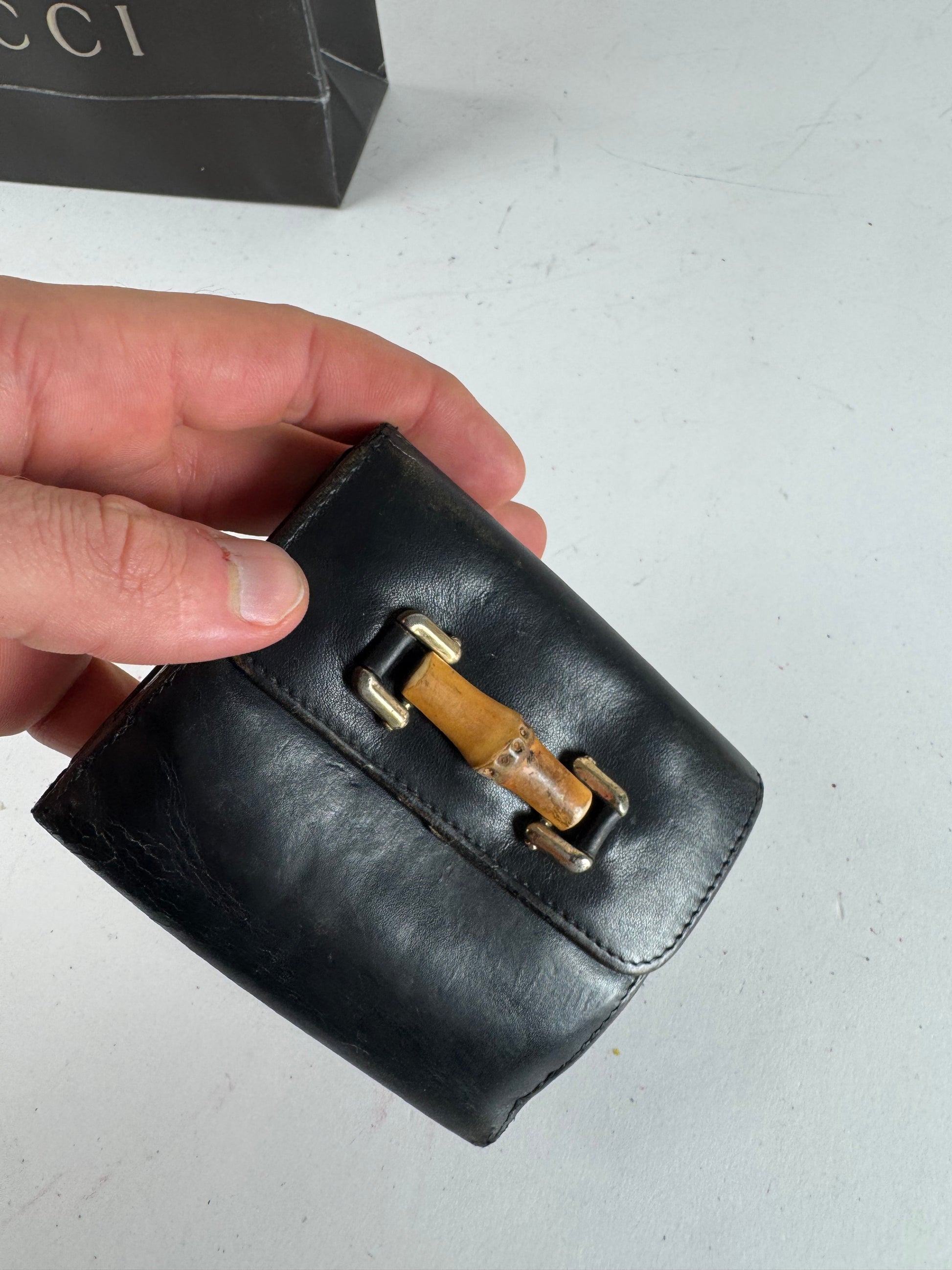 GUCCI Vintage Black Leather Bamboo Wallet