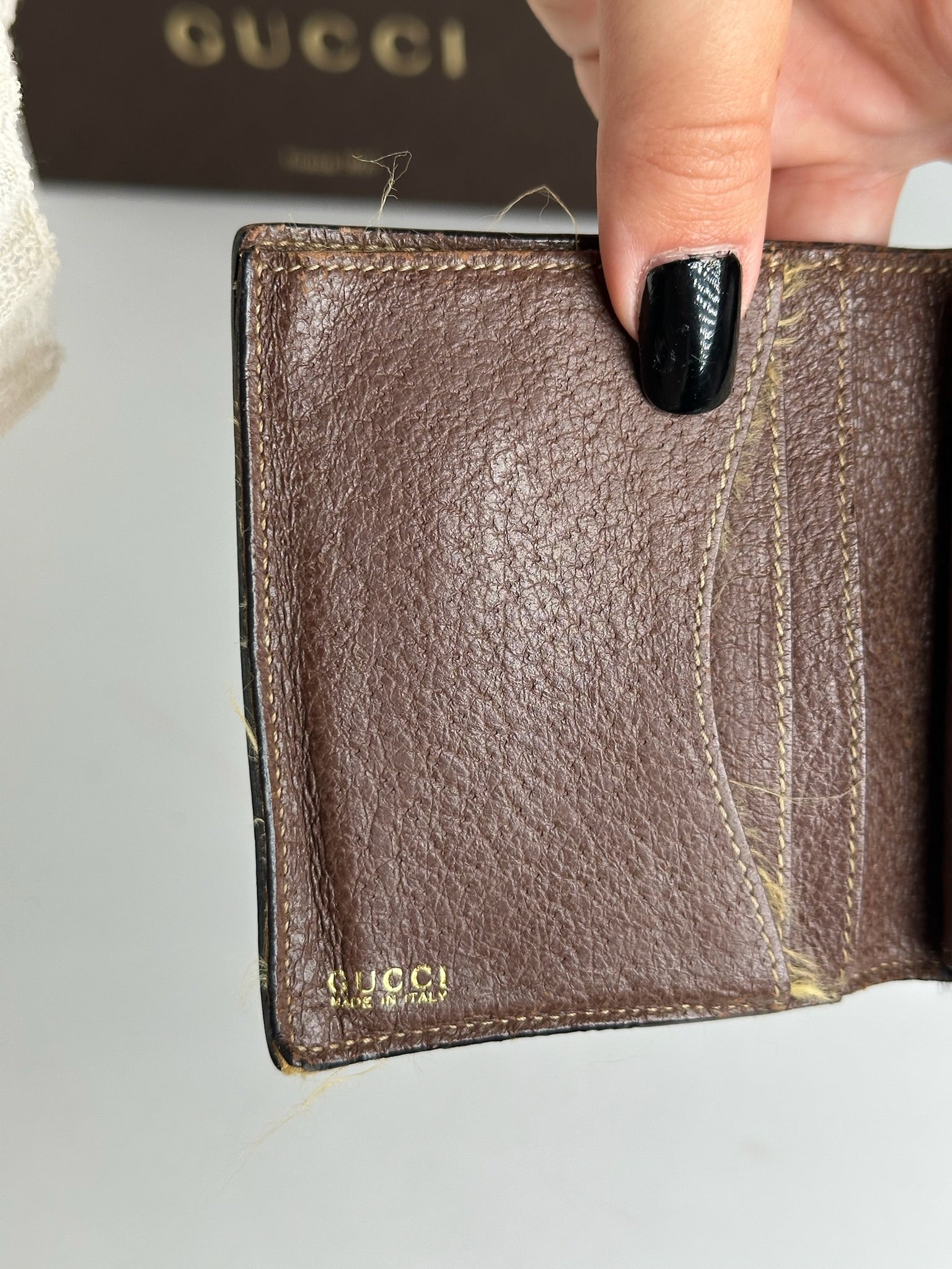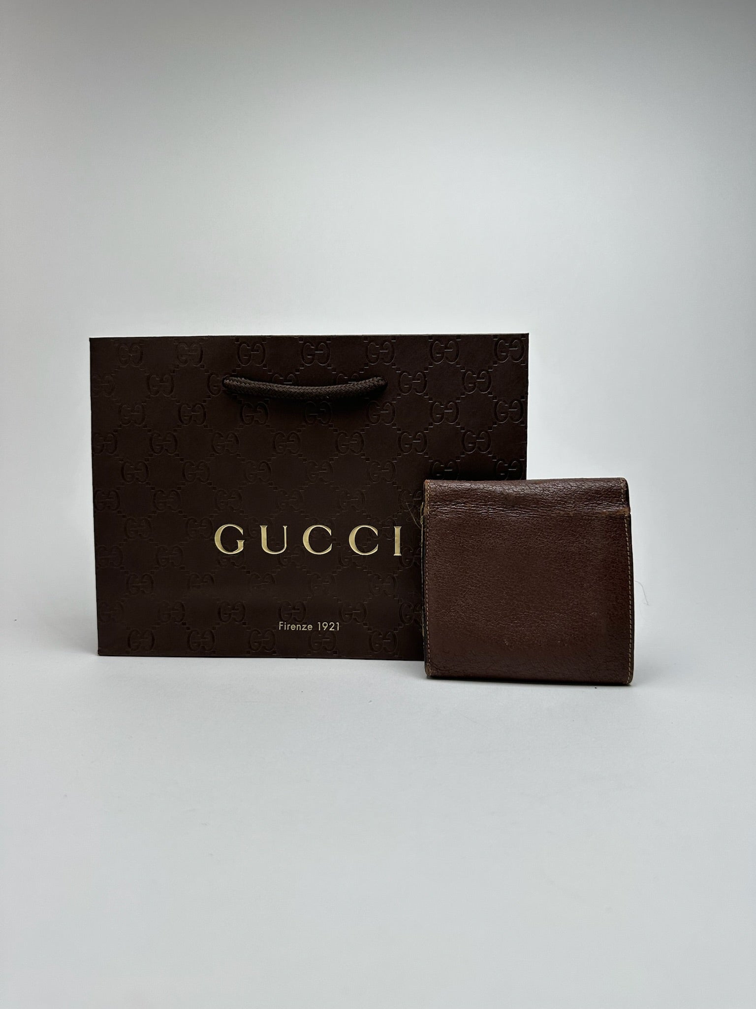 This vintage wallet is finely crafted of dark brown leather and features a sleek tab closure. The iconic silver-tone steel Horsebit detail on the front was introduced in the 1950s and has since become a hallmark of Gucci's equestrian heritage and timeless elegance. The wallet is unisex and offers compartments for coins, bills, and cards.