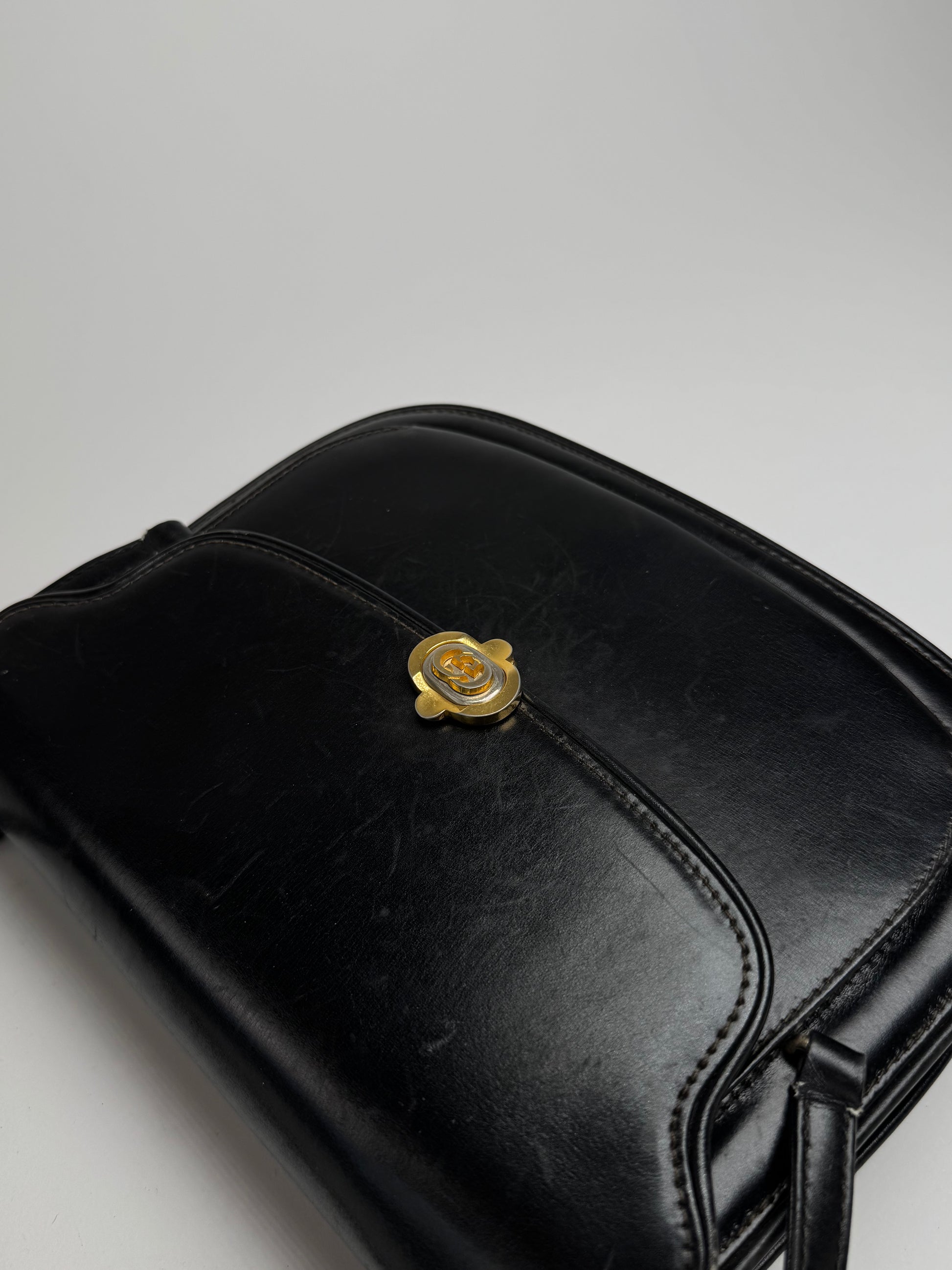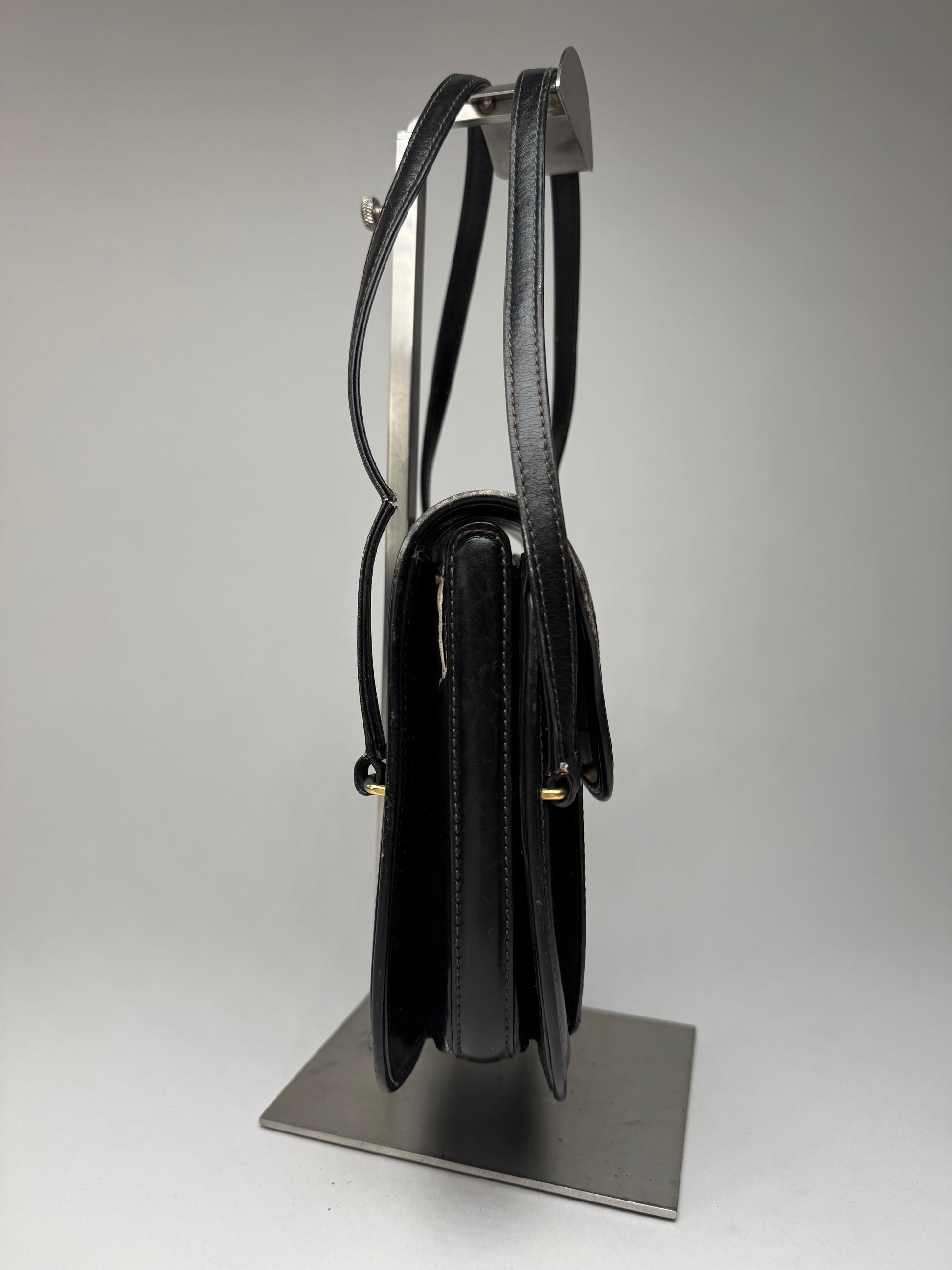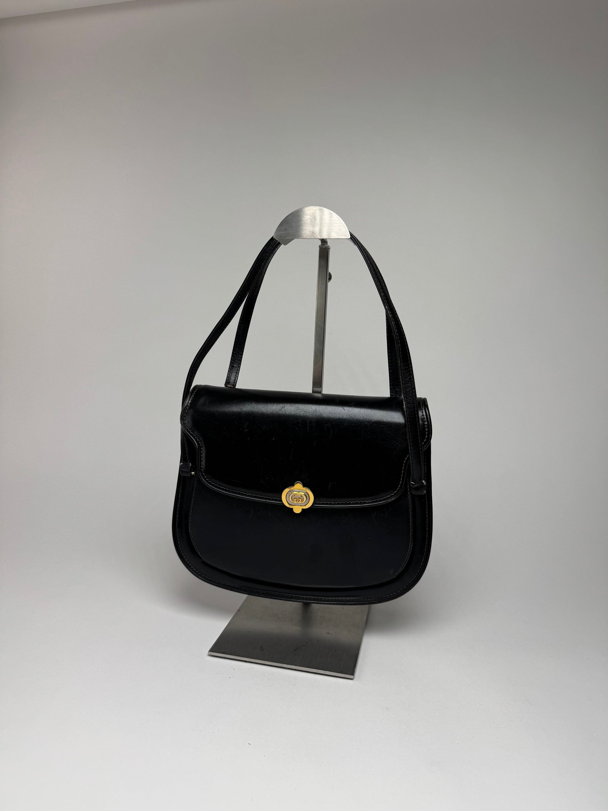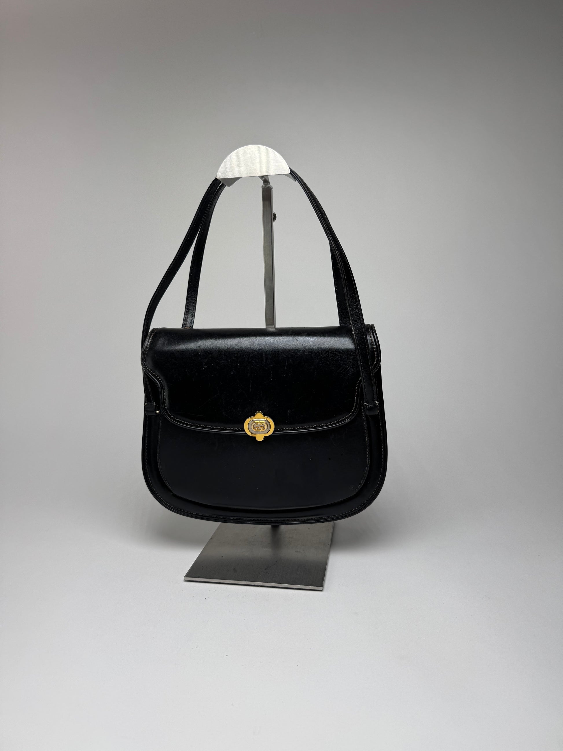 GUCCI vintage Jackie handbag. This vintage Gucci Jackie handbag is crafted from black leather , exuding timeless elegance. The gold-tone steel hardware adds a refined touch. It features two handles , although they show signs of wear. Despite the damaged handles , the bag remains in very good condition overall. Made in Italy.