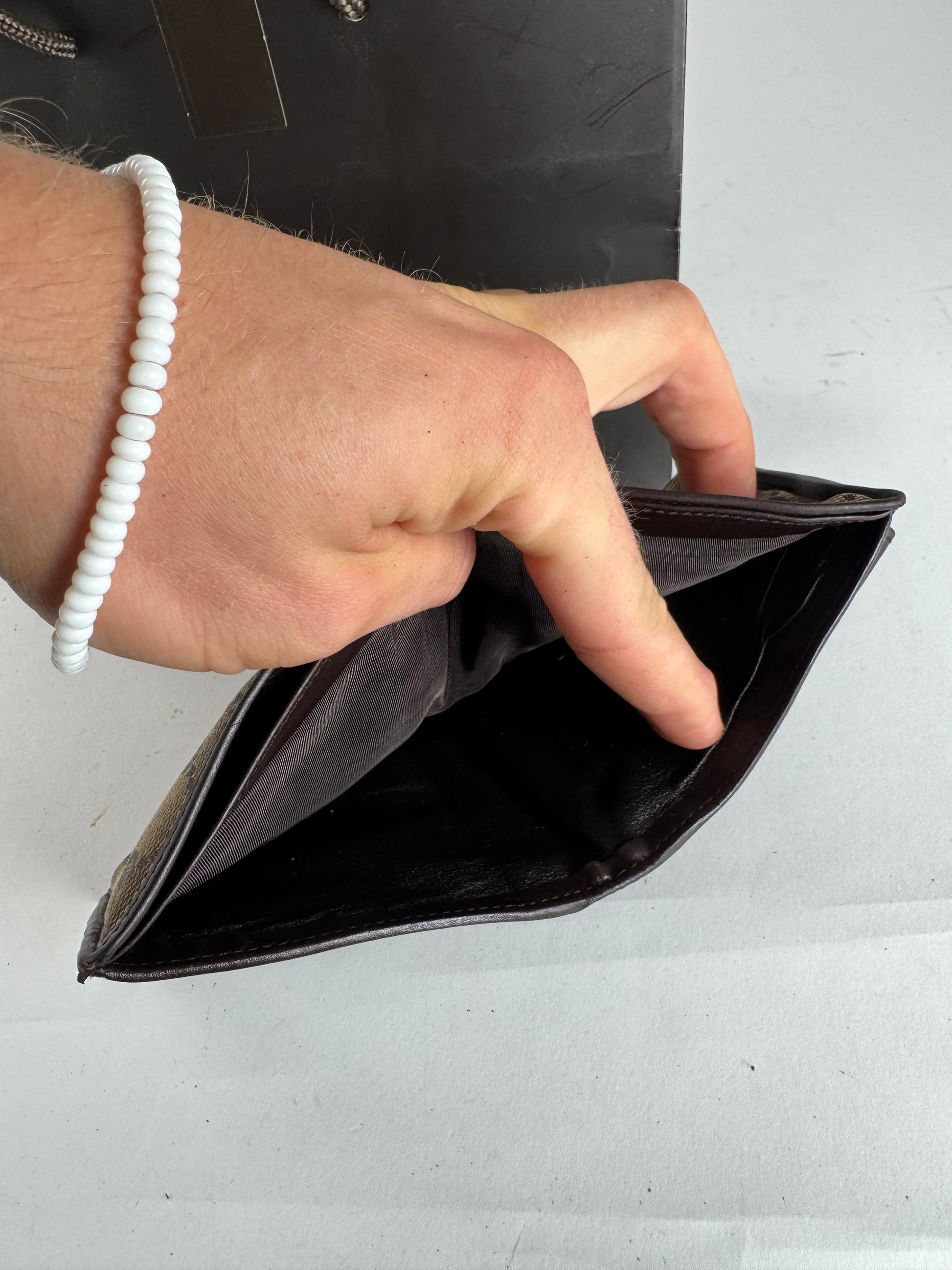 Condition Details: The wallet is in very good condition with some scratches and minor material wear on the interior.
