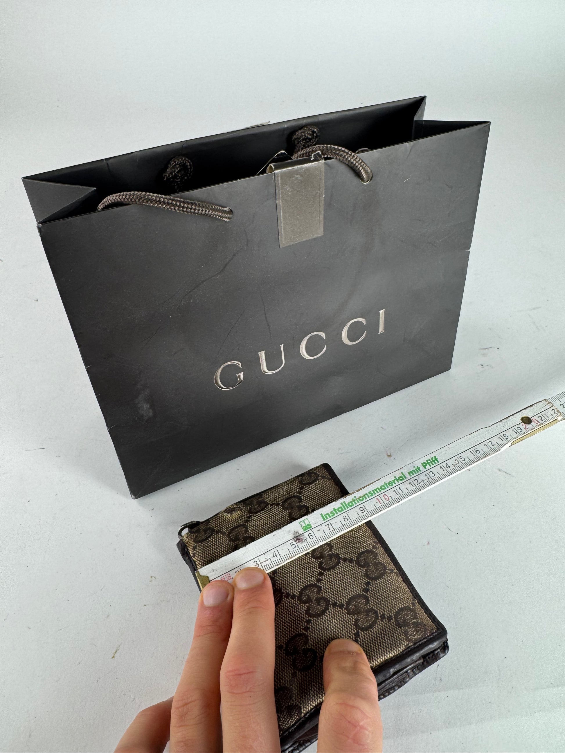 Vintage Gucci Monogram Flapable Leather Wallet beige brown