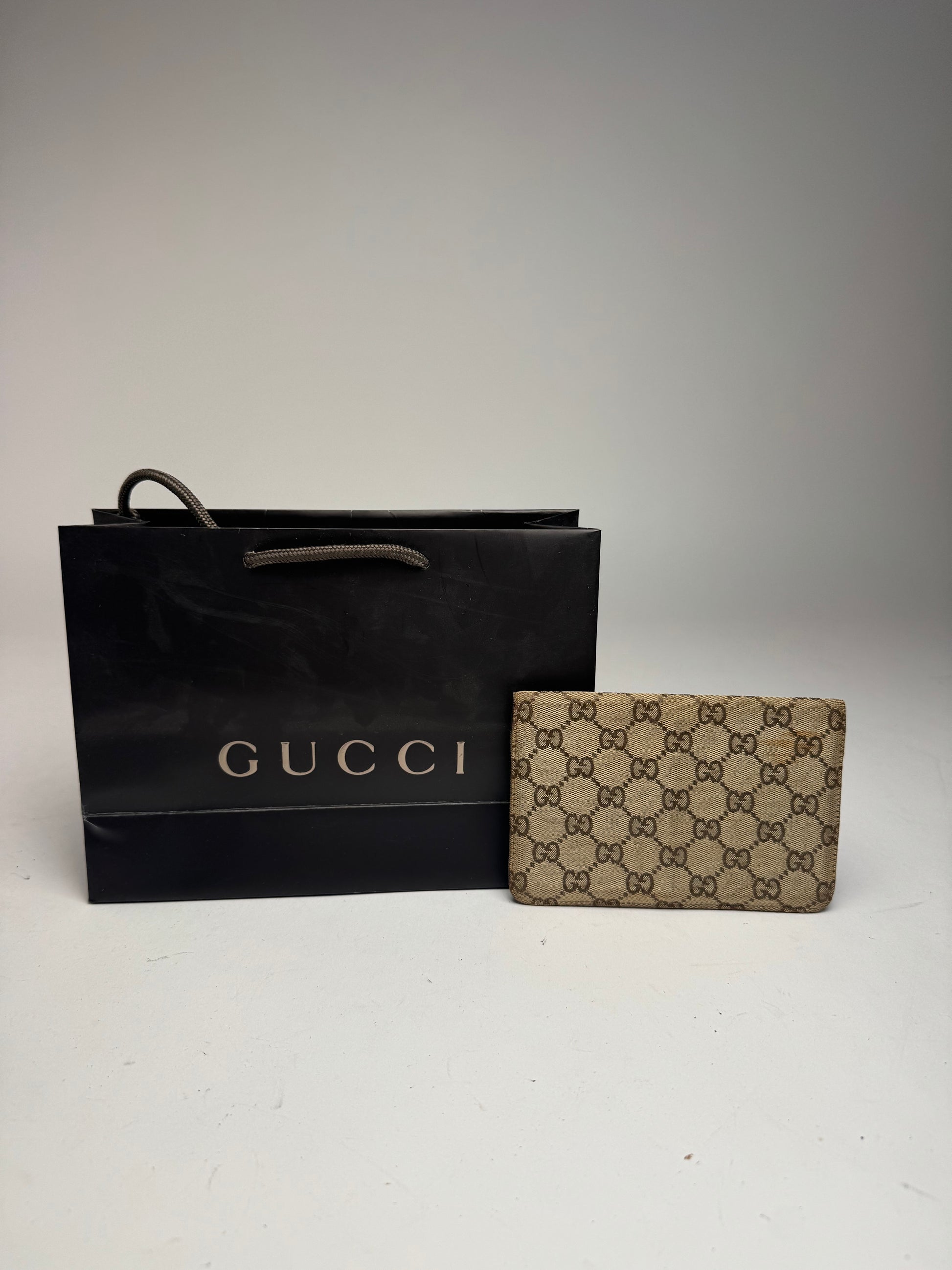 Vintage Gucci Monogram Leather Card Holder Horsebit Beige