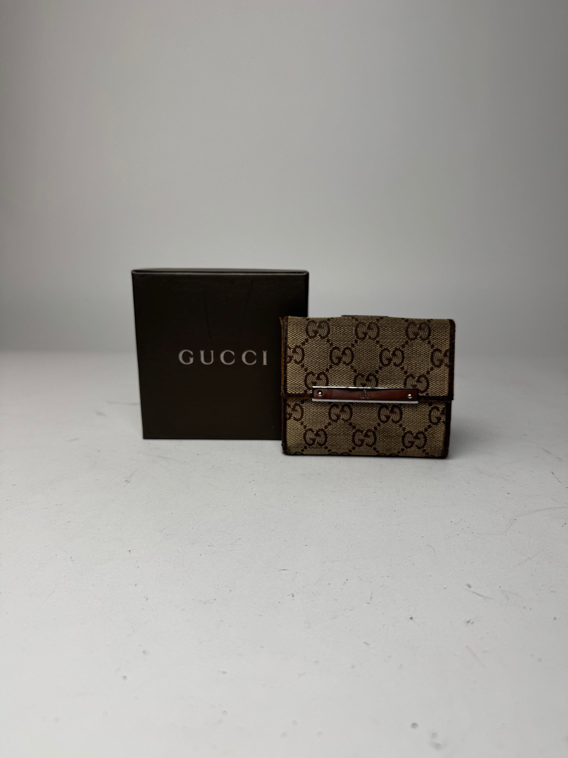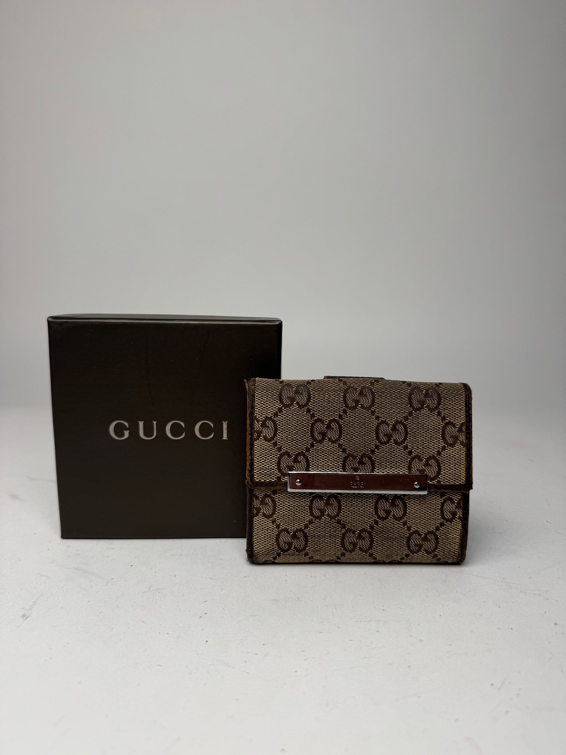 Vintage Gucci Monogram Leather Wallet Beige Brown
