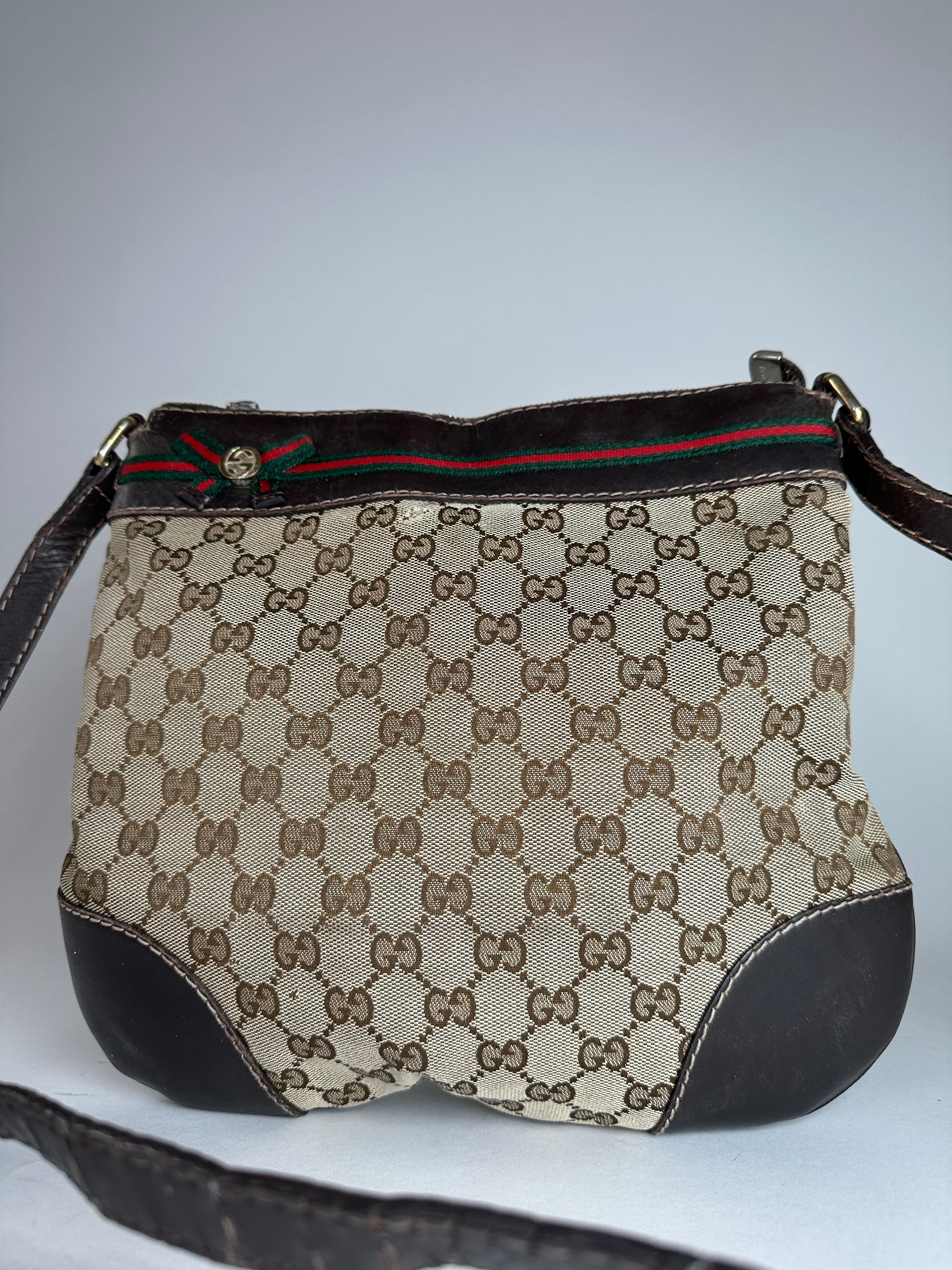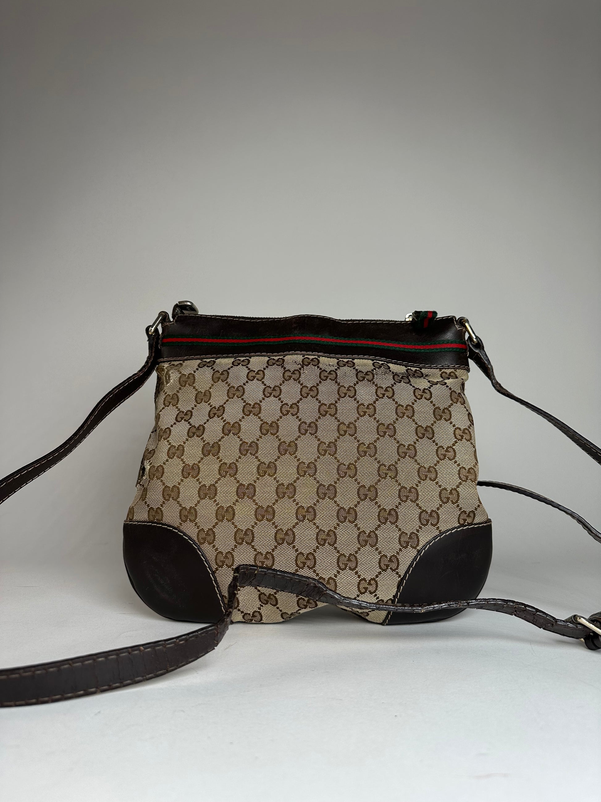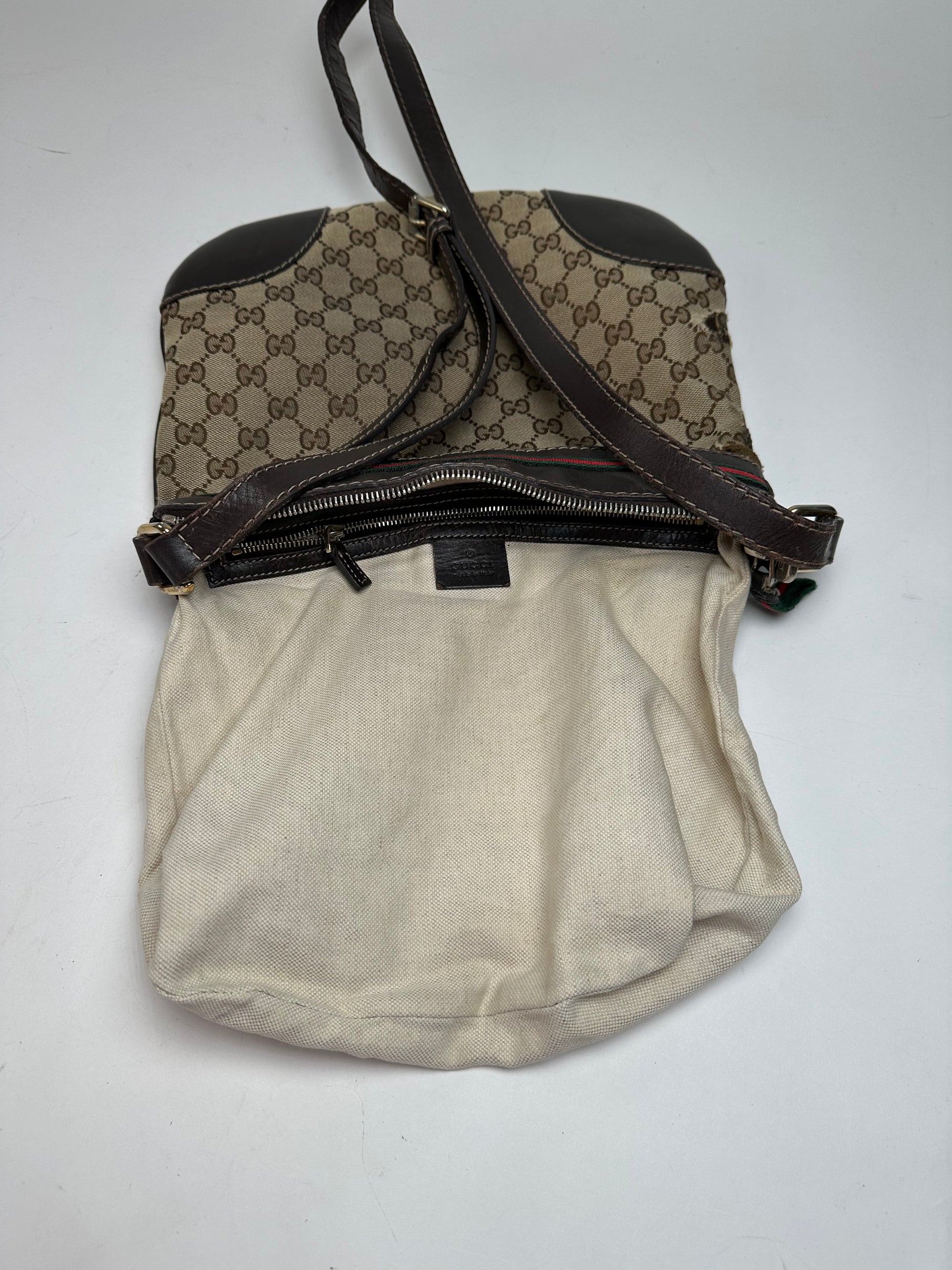 Vintage Gucci Monogram Shoulder / Crossbody Bag Beige Brown