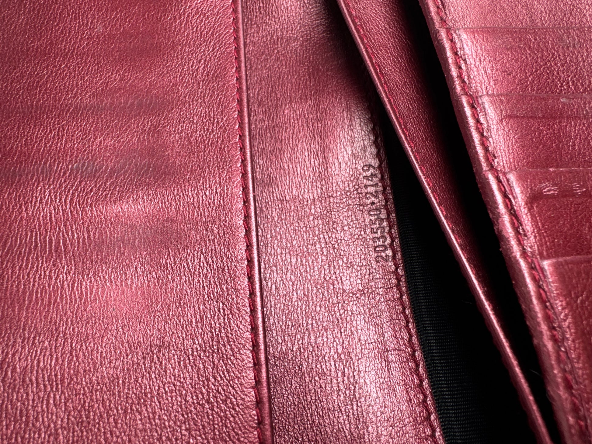 Condition Details: The exterior canvas remains in good shape with light marks. Some materials show minor wear, but overall the piece is very well-preserved. The metallic leather interior is clean with gentle signs of use. The snap closure is functional and the hardware is bright with hairline scratches.