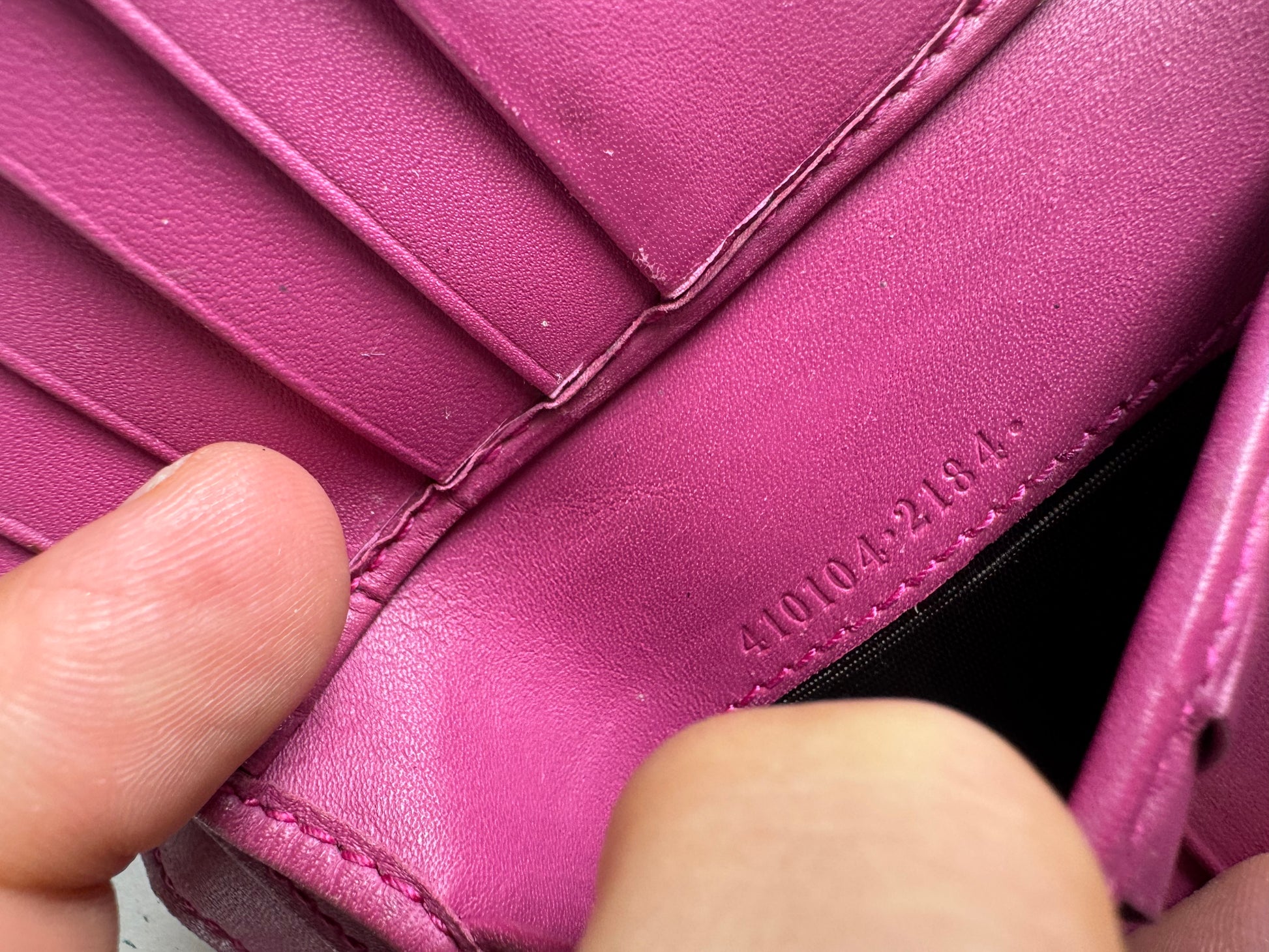 Condition Details: The exterior leather remains in very good condition with gentle signs of use. The red trim is clean with minor wear. The gold hardware is bright with light scratches. The interior purple leather is overall clean and well-preserved.