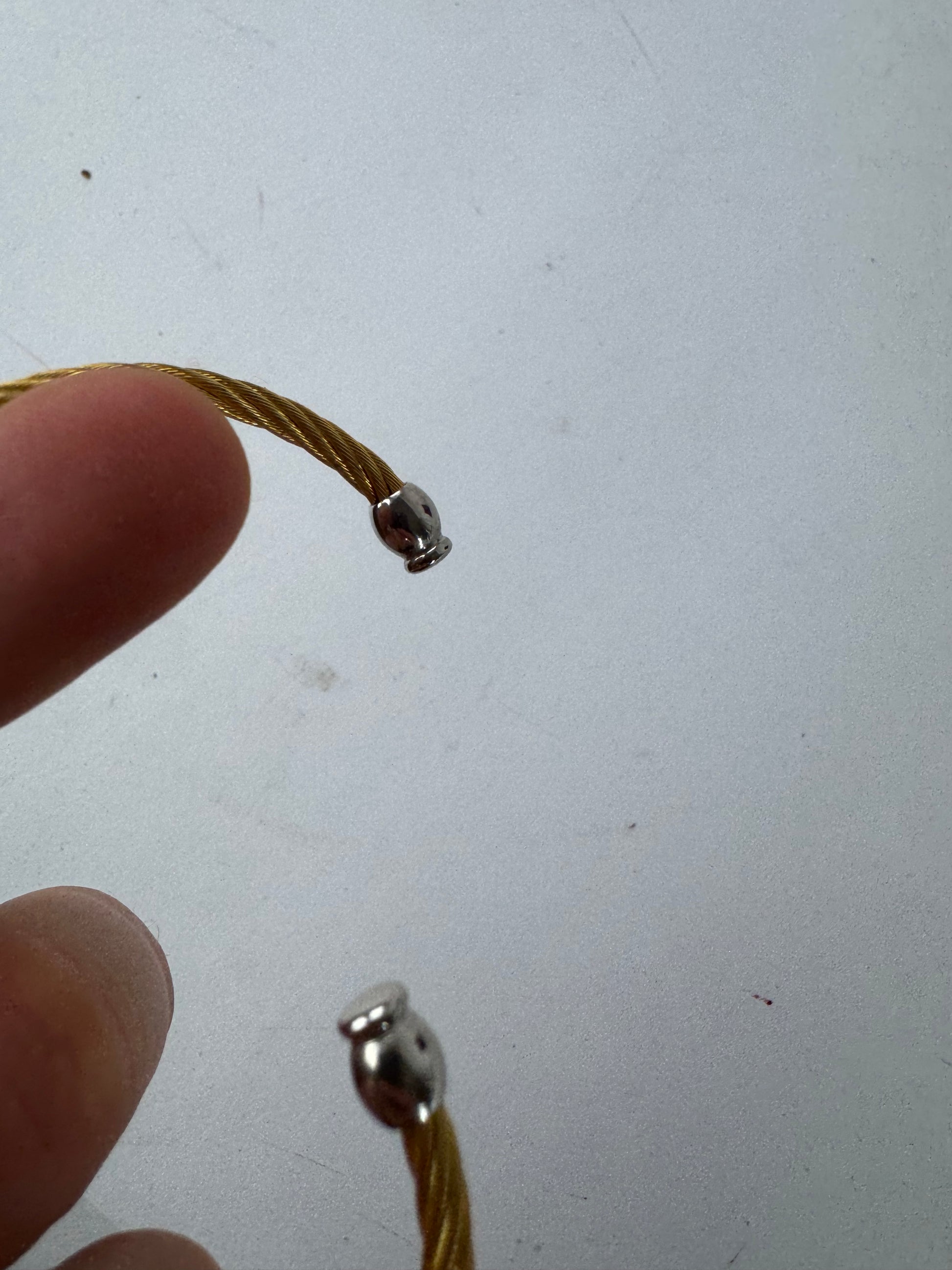 GUCCI Vintage Watch. This elegant vintage wristwatch is crafted of gold-tone steel and features a clean white dial with black numerals and black detailing. The watch is powered by a quartz movement, and the battery has been recently replaced. It is fitted with a flexible bracelet design without a clasp for easy slip-on wear. The case back may occasionally come loose, but overall the watch remains in very good condition.