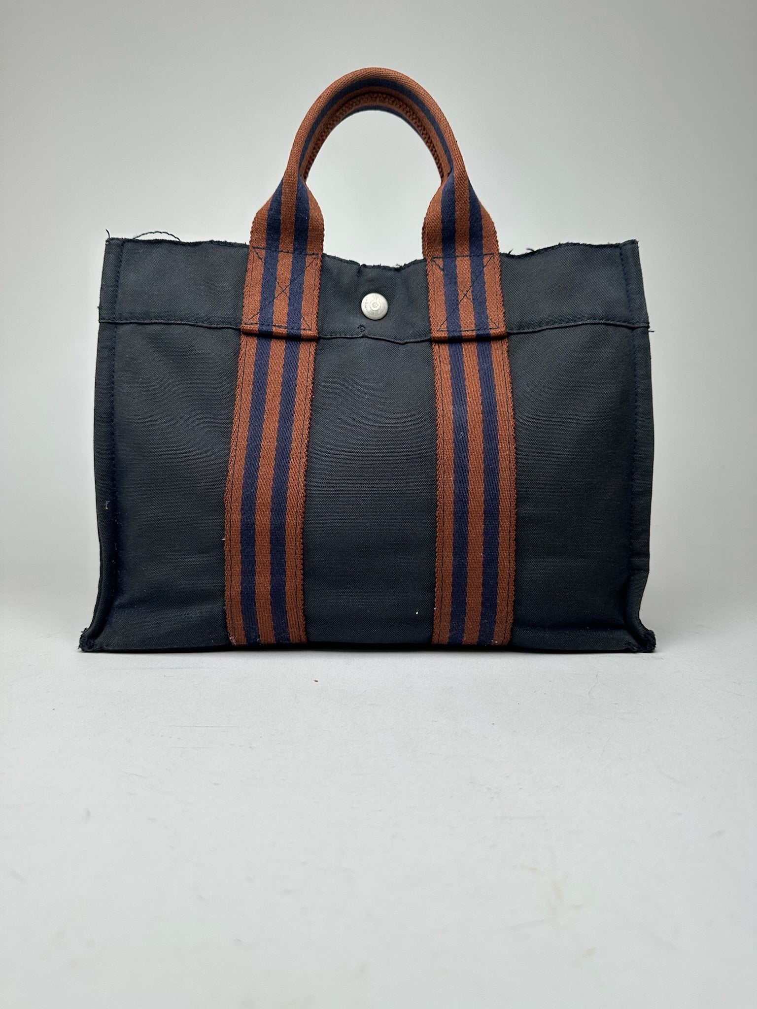 Vintage Hermes Navy red canvas shopper bag