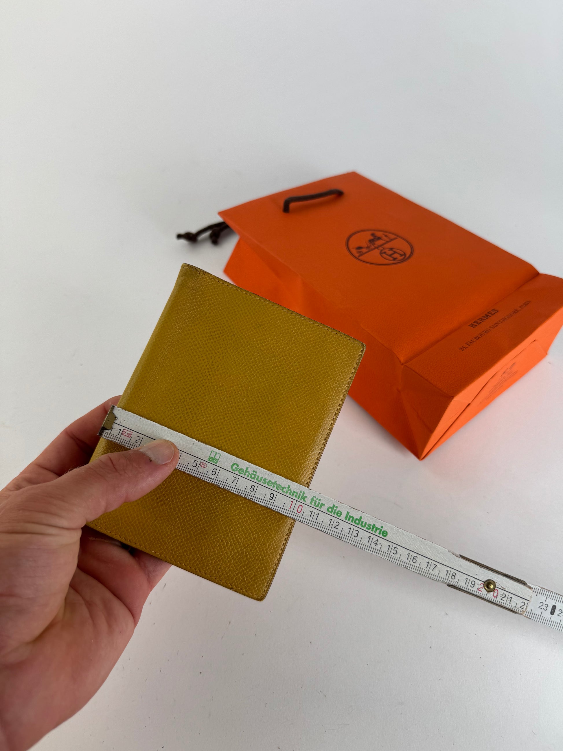 HERMÈS Paris Vintage Card Holder. This elegant card holder is crafted of structured yellow leather. The piece features interior compartments for cards and space to insert a ring binder. Made in France.